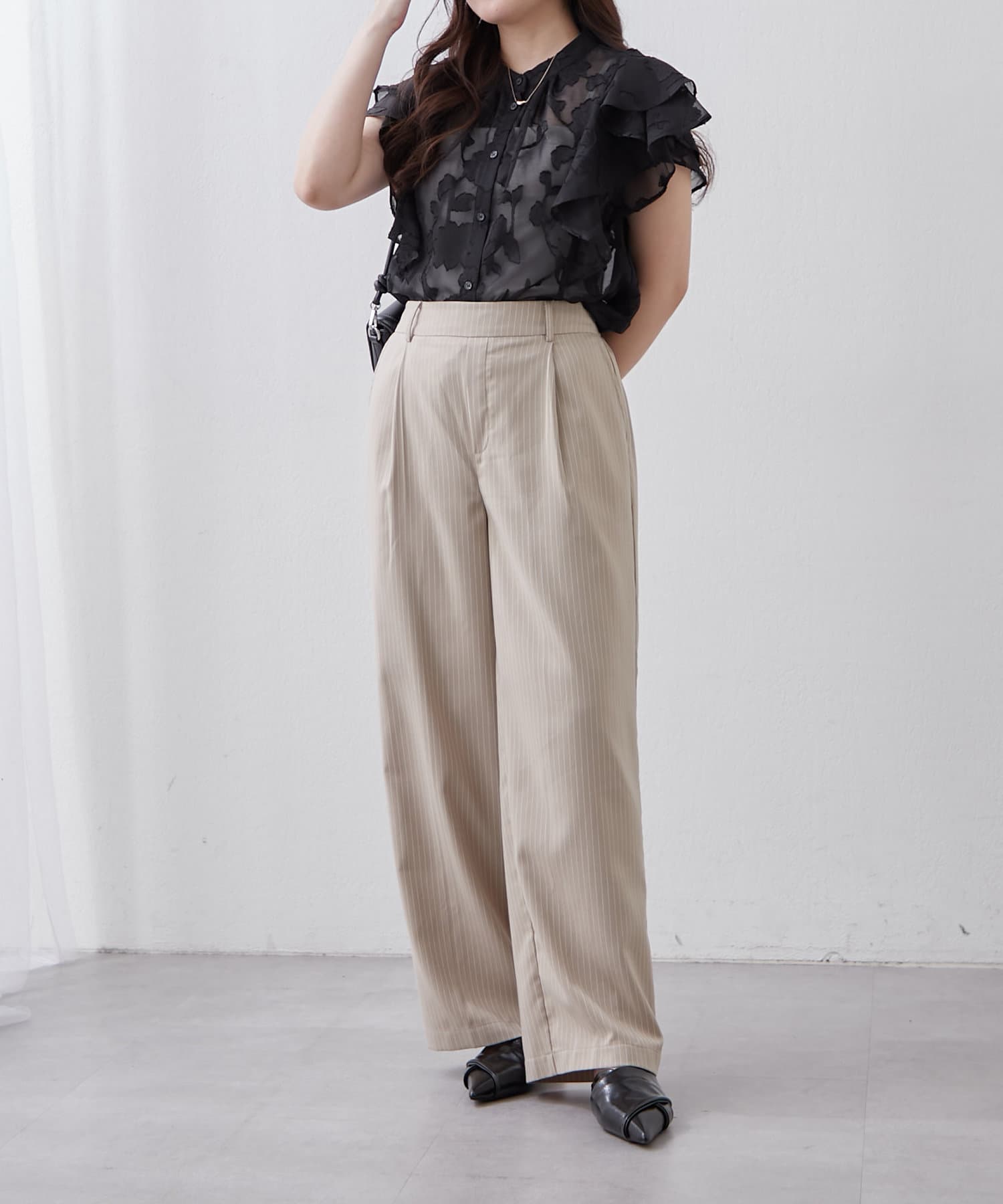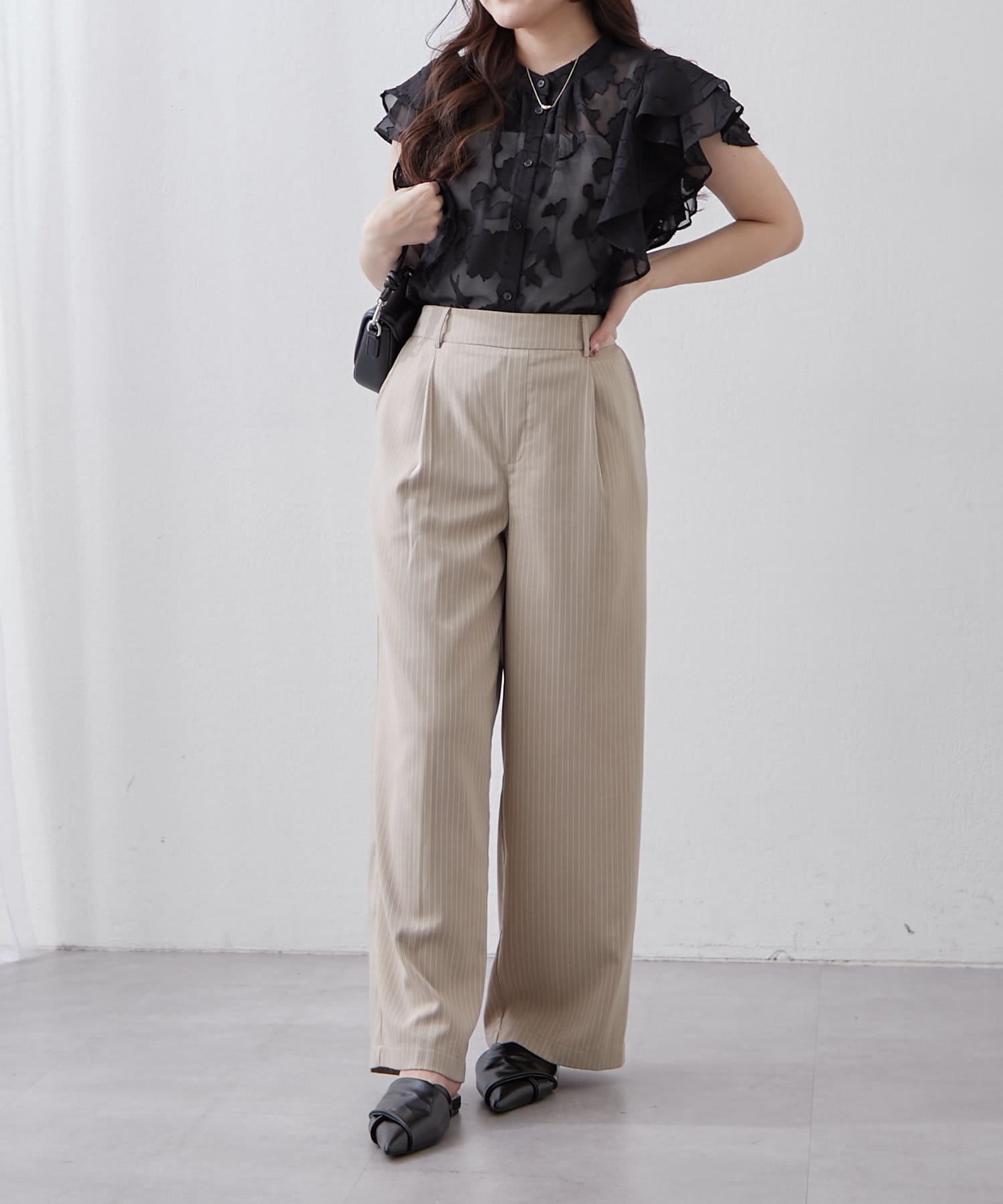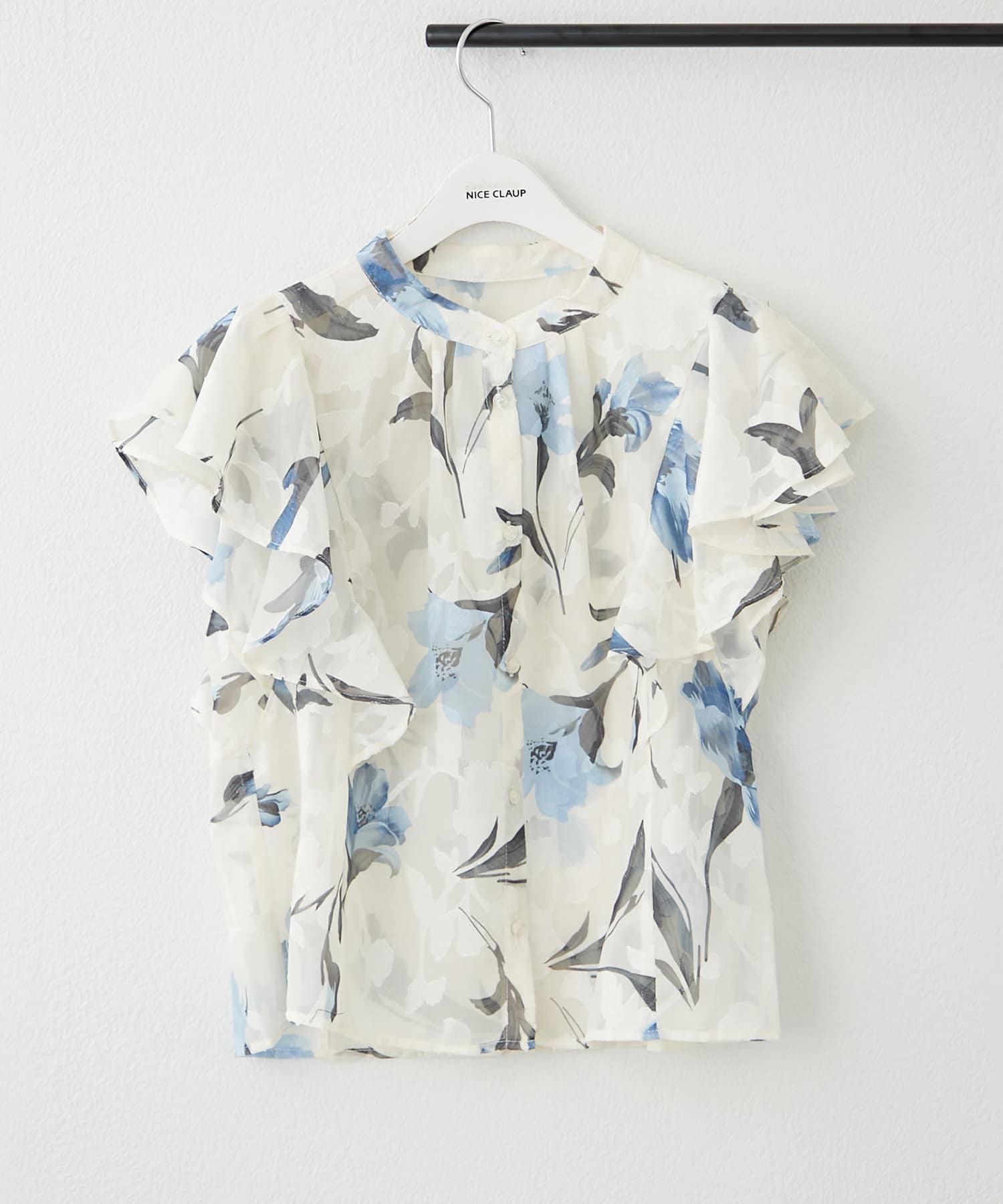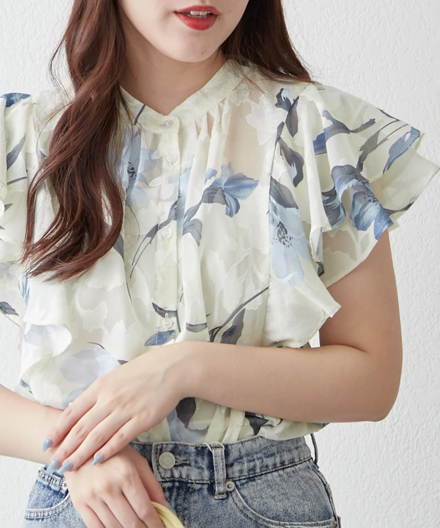 【ON・OFFつかえる!】袖フリルジャガードブラウス