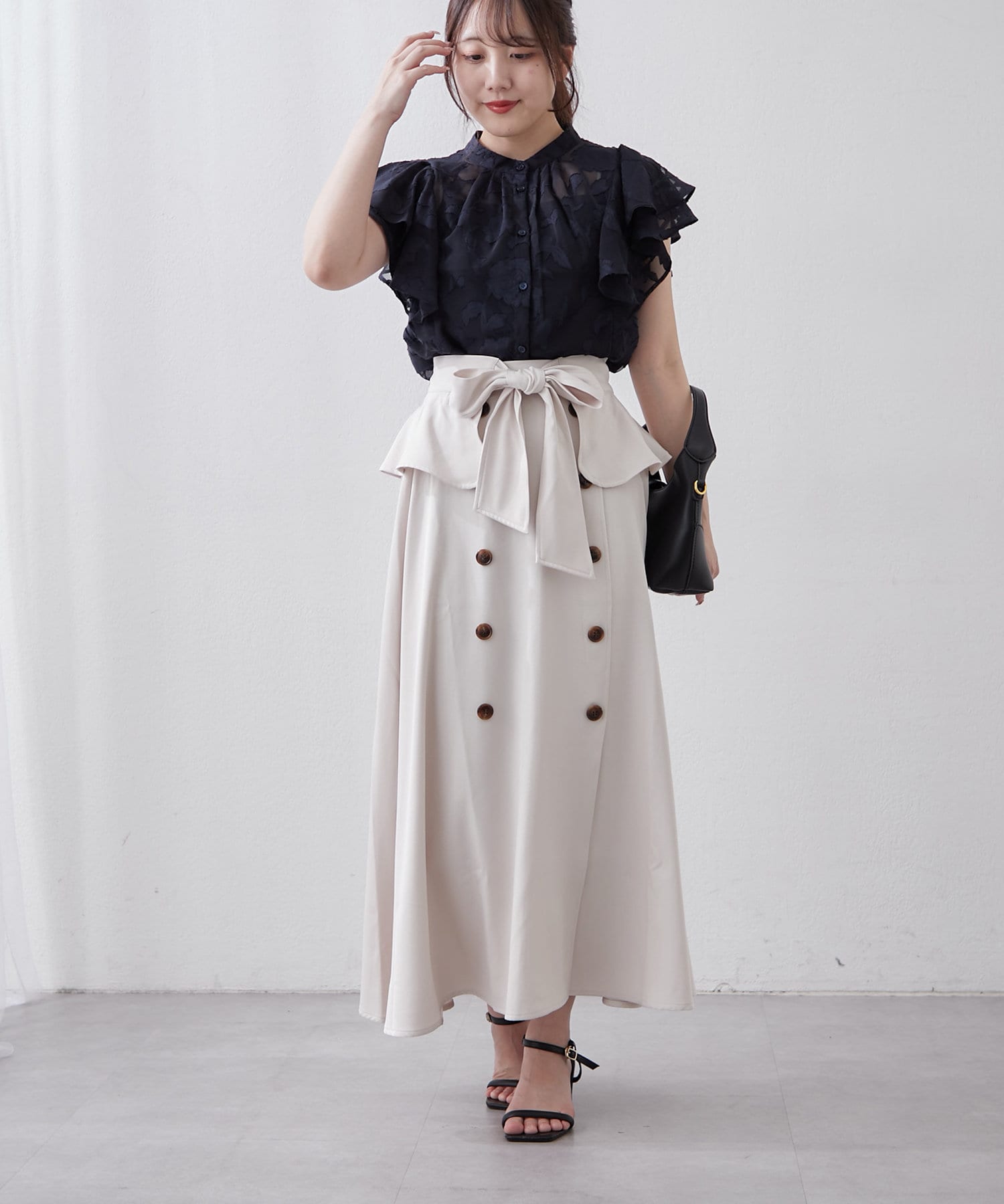 ・きれいめのボトムスと合わせれば通勤コーデやお呼ばれシーンにも大活躍するブラウスです。