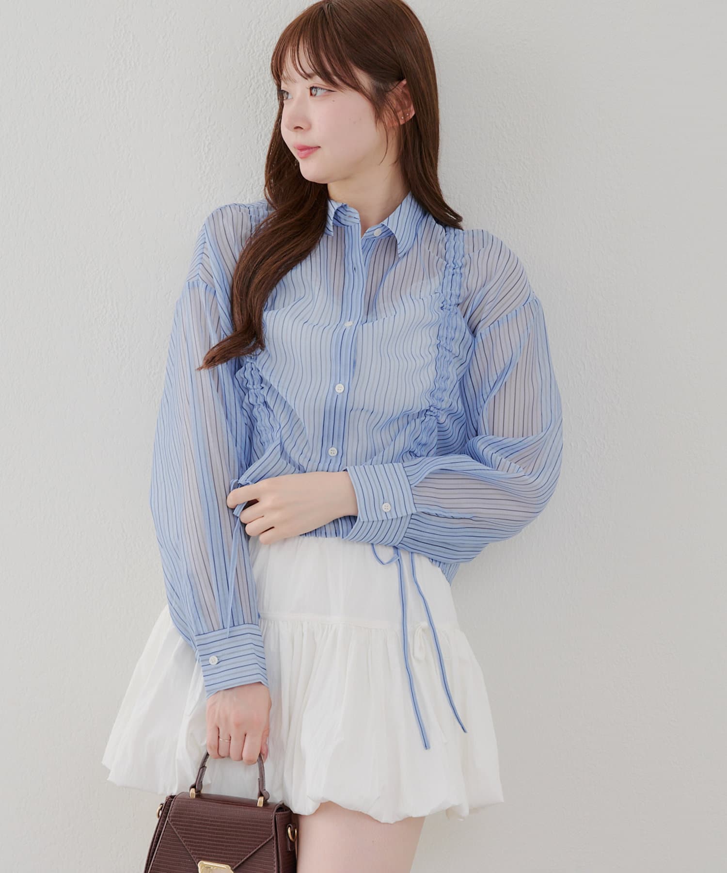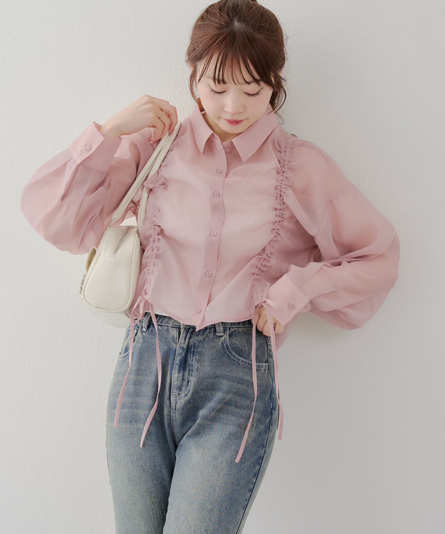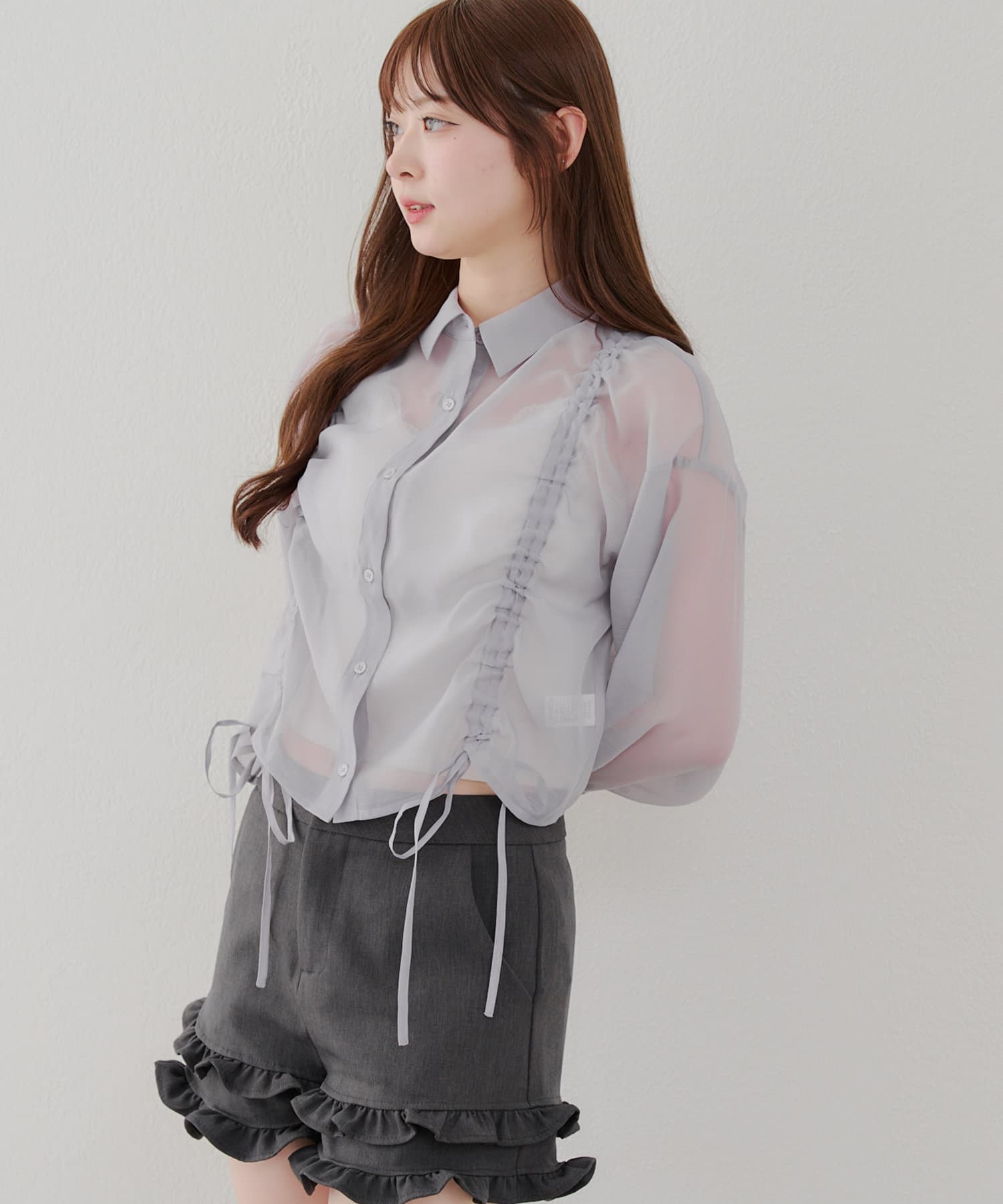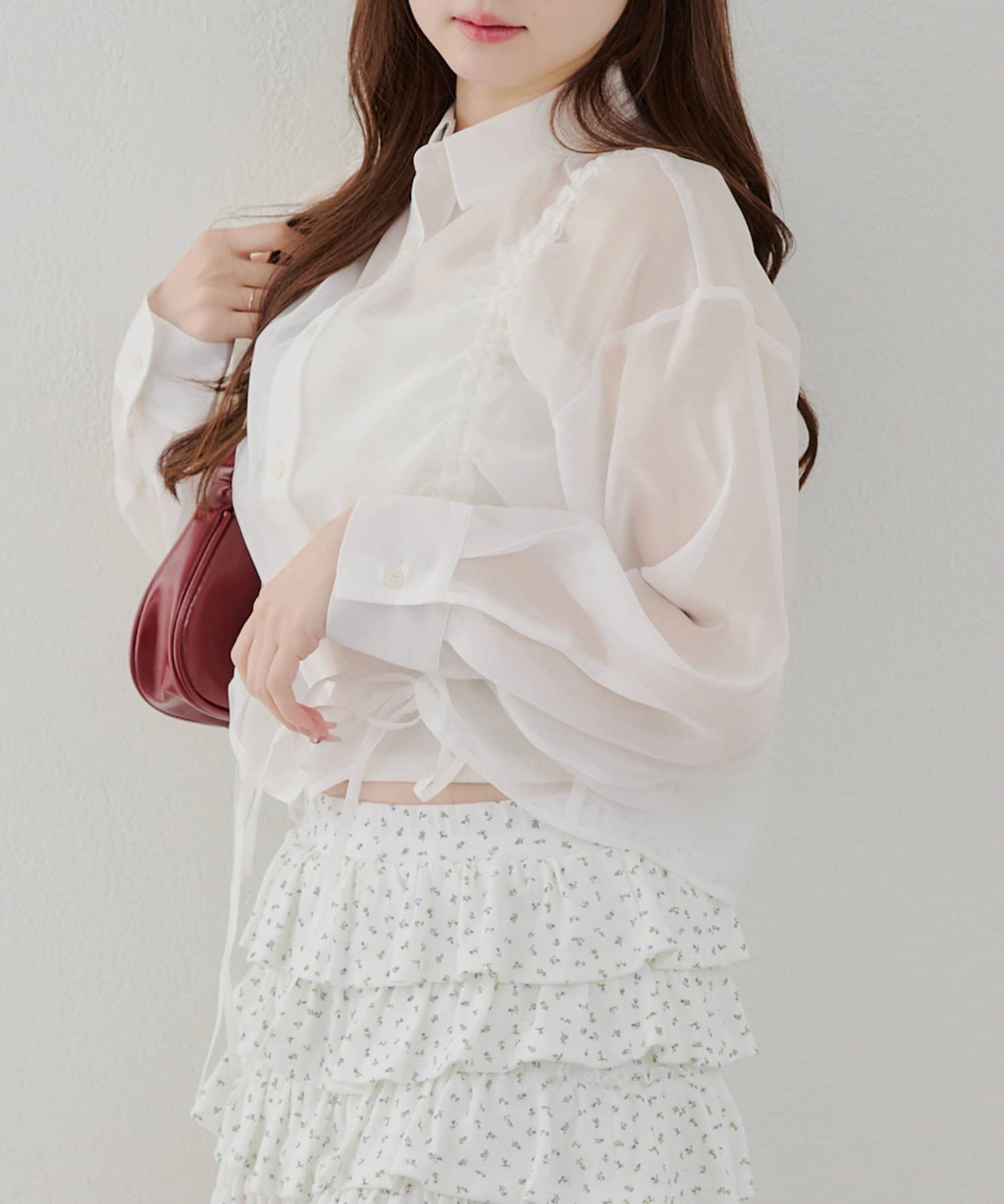 TOP > Remind me and forever > レディース > トップス > シャツ/ブラウス(ボタン) > ドロストデザインシアーシャツ