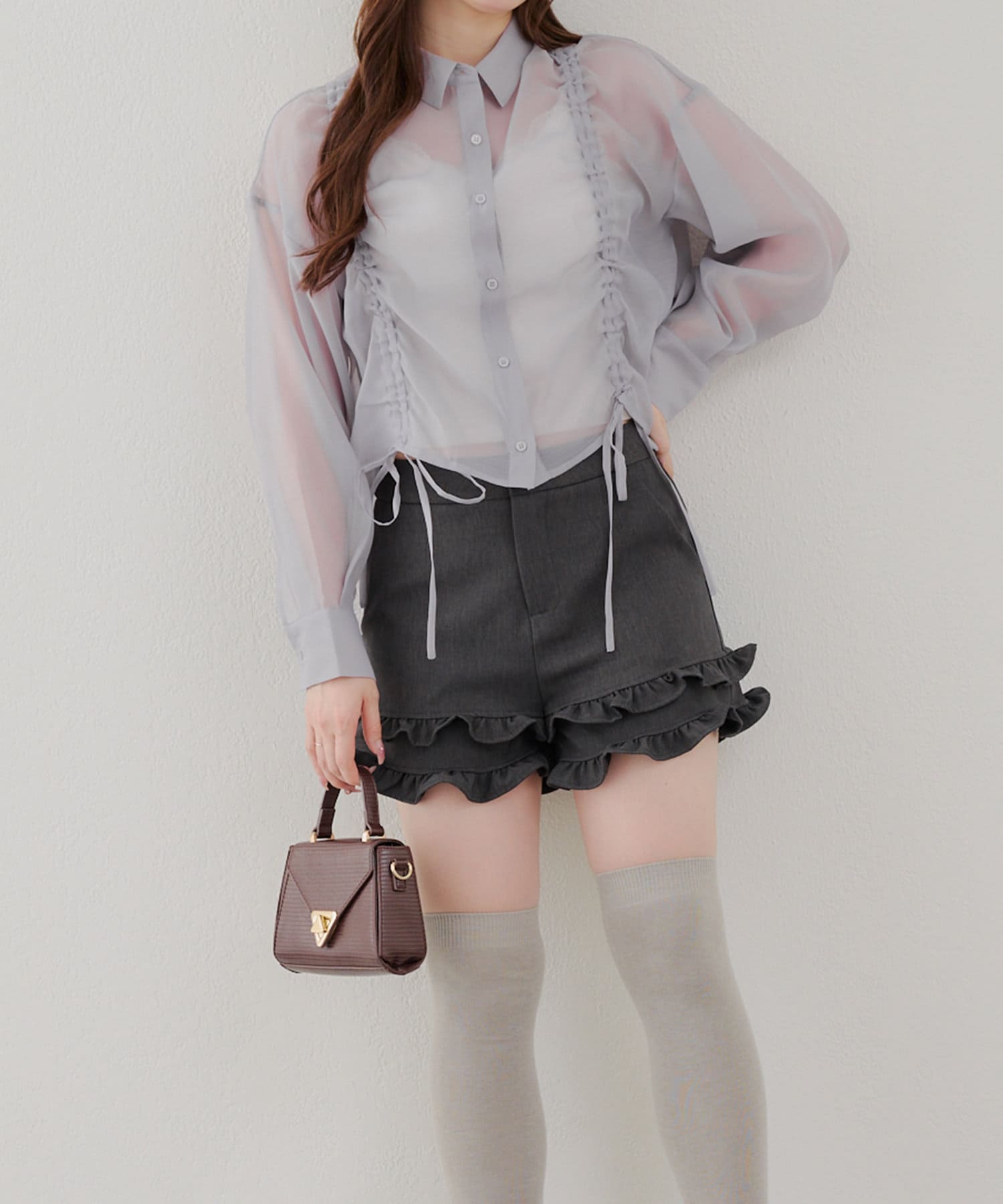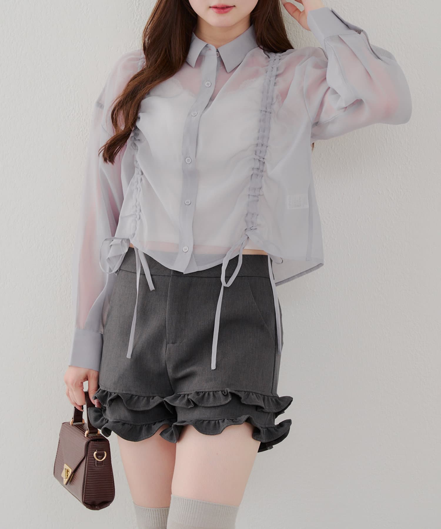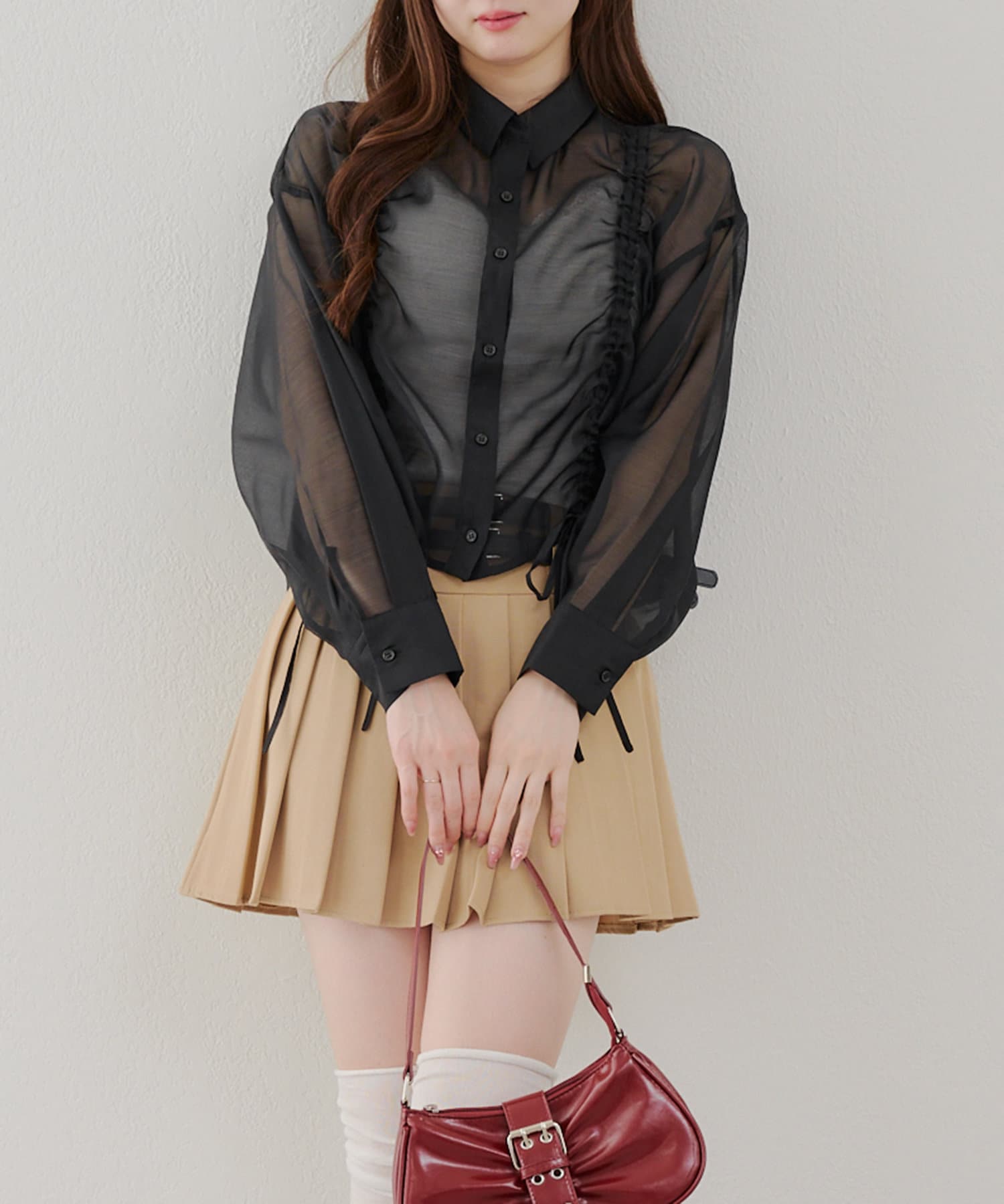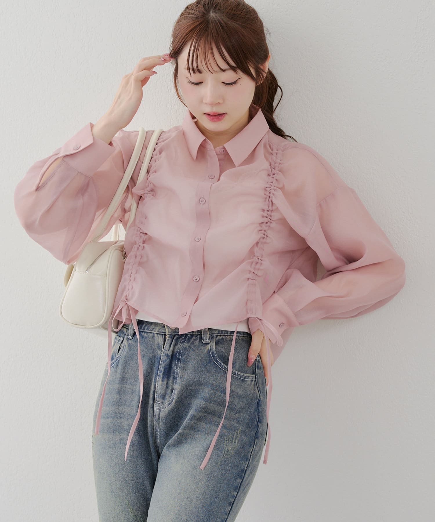 TOP > Remind me and forever > レディース > トップス > シャツ/ブラウス(ボタン) > ドロストデザインシアーシャツ