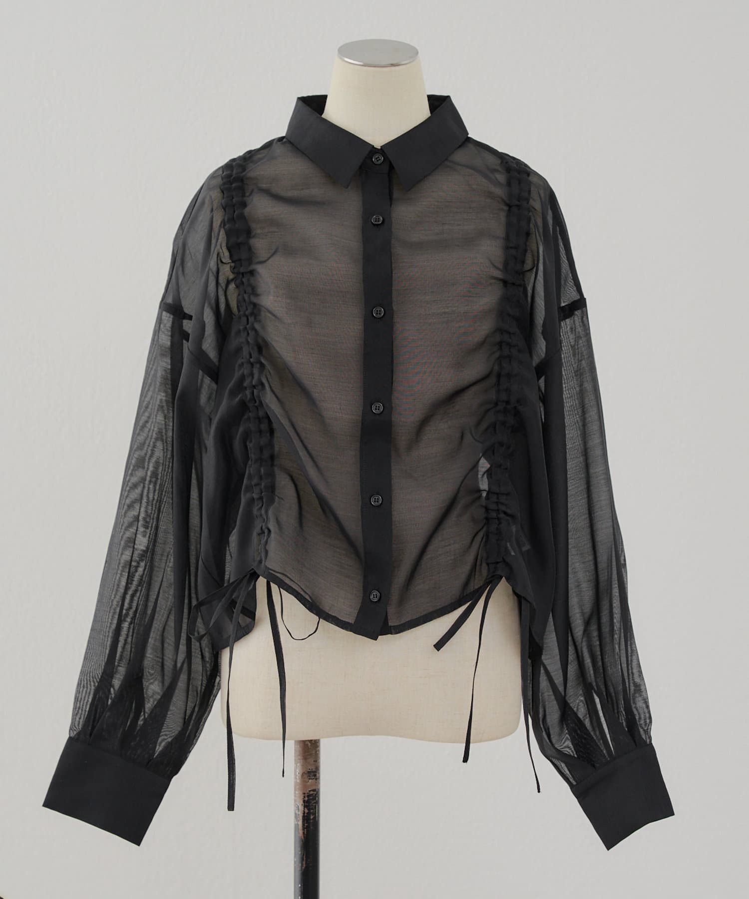 ・フロントに施されたドロストデザインが印象的なシアーシャツ。
