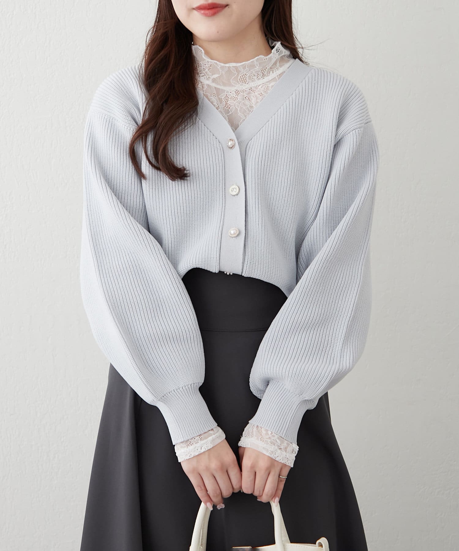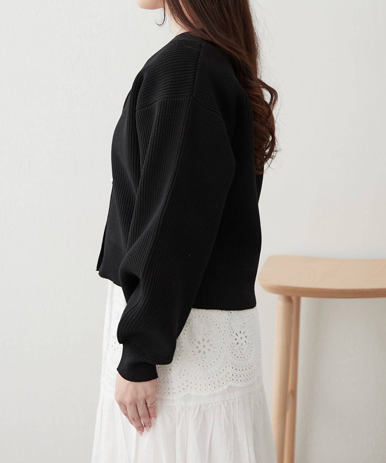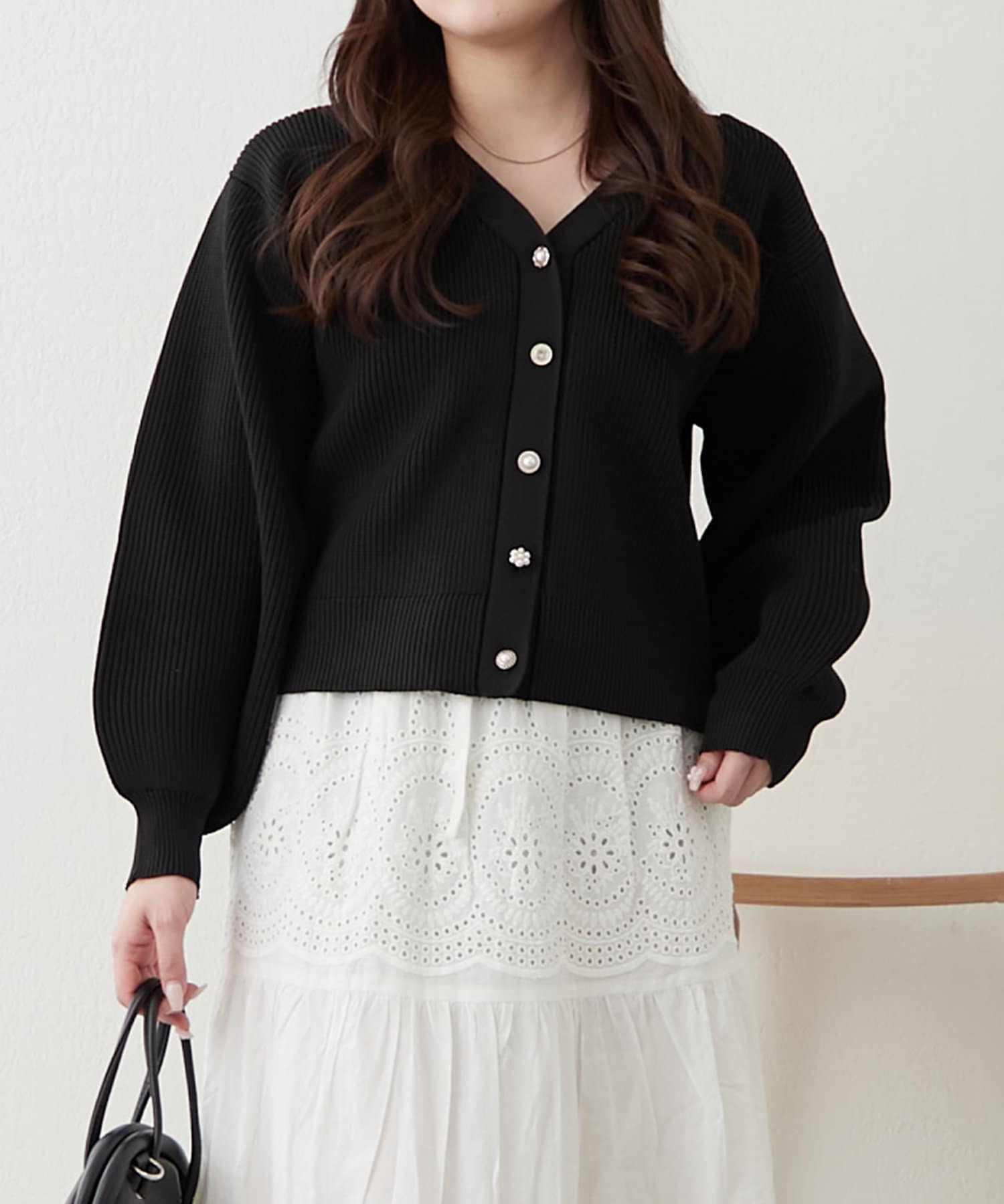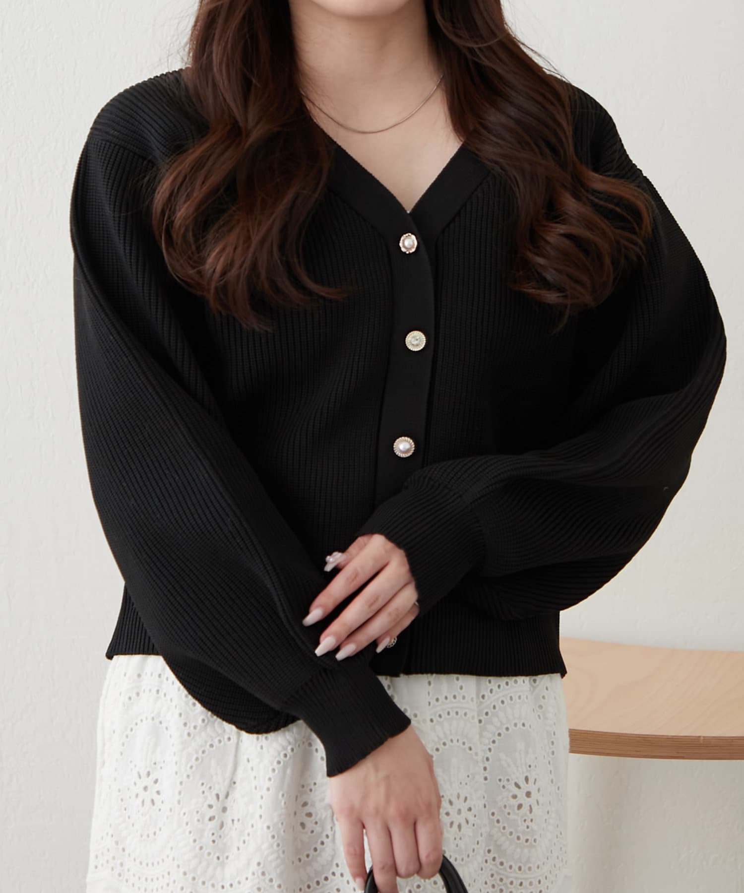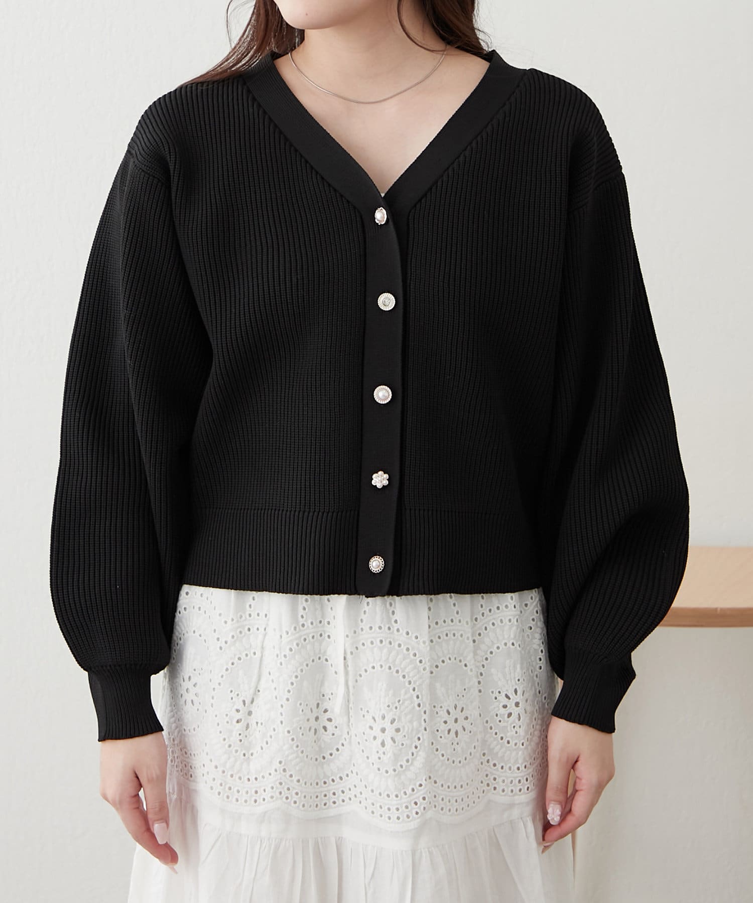 デザイン釦エアリーニットカーディガン