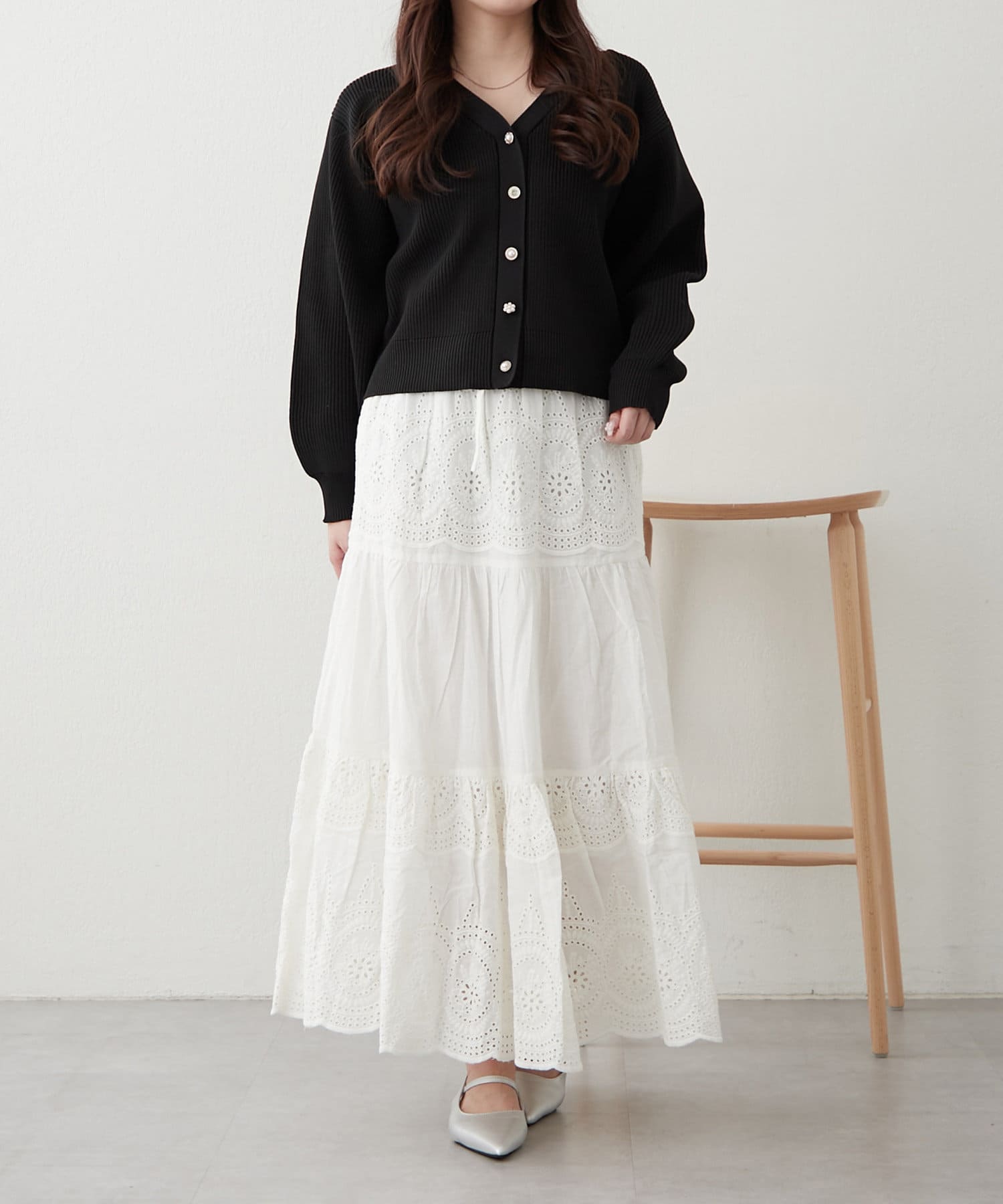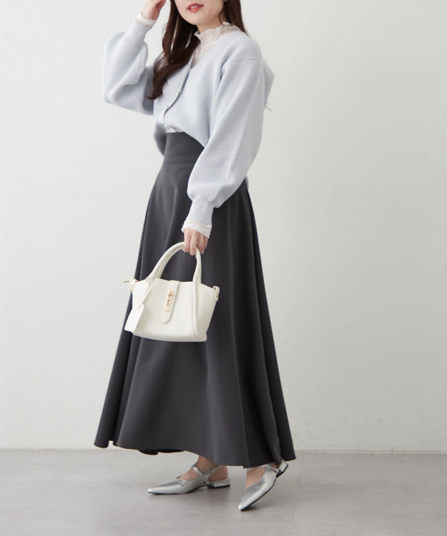 ・ロングスカートと合わせてフェミニンスタイルに。