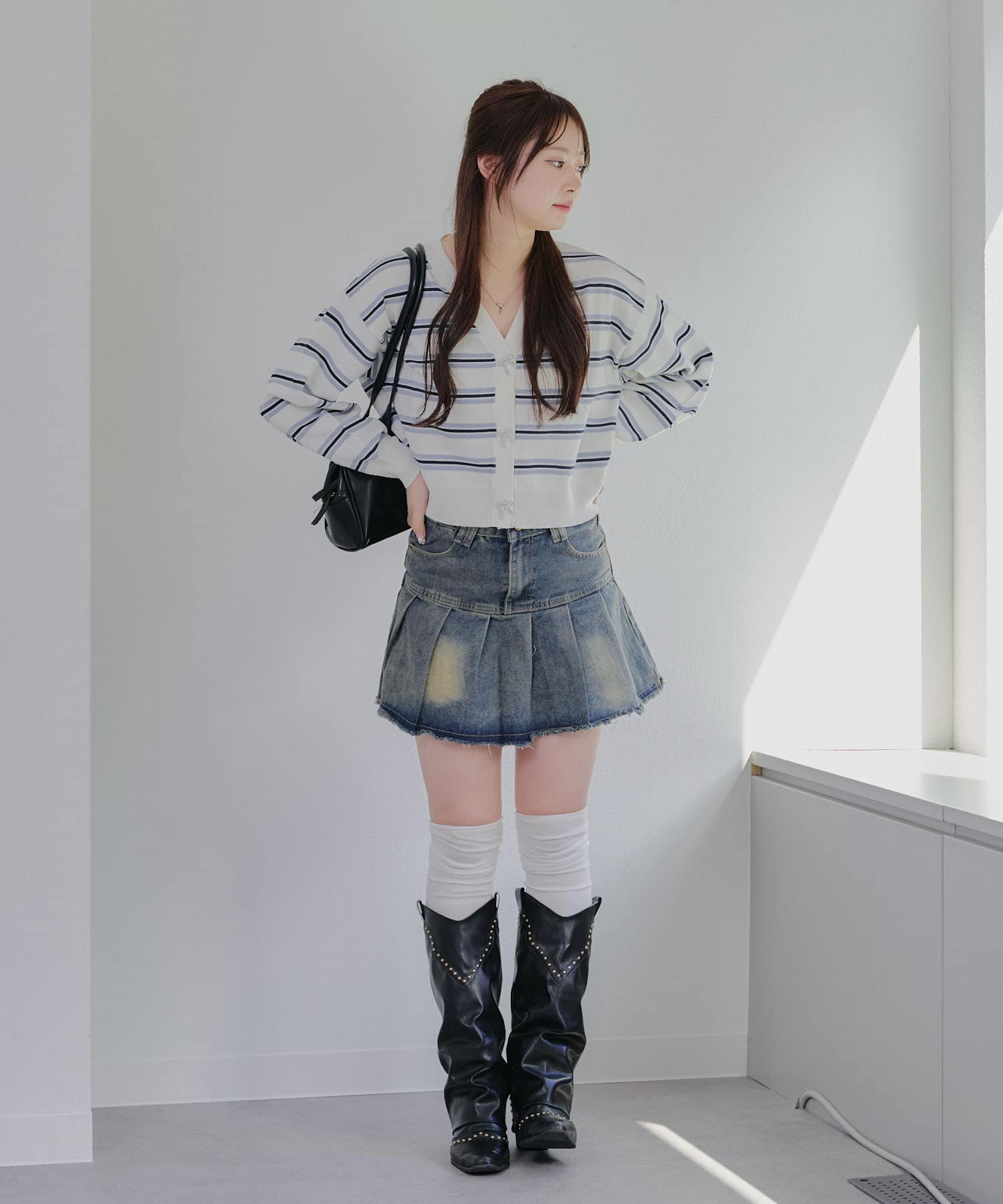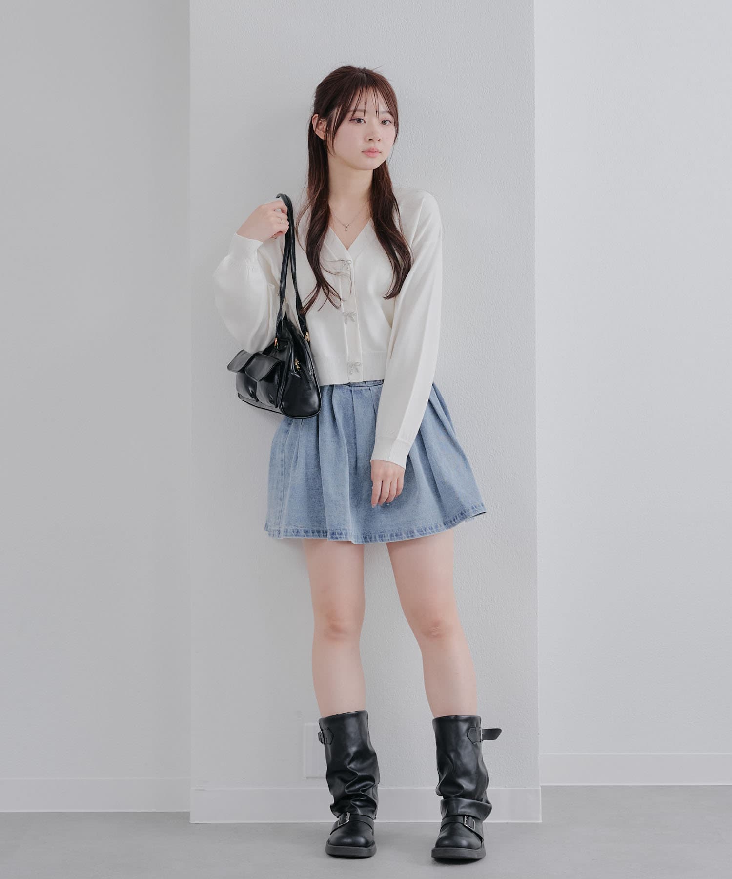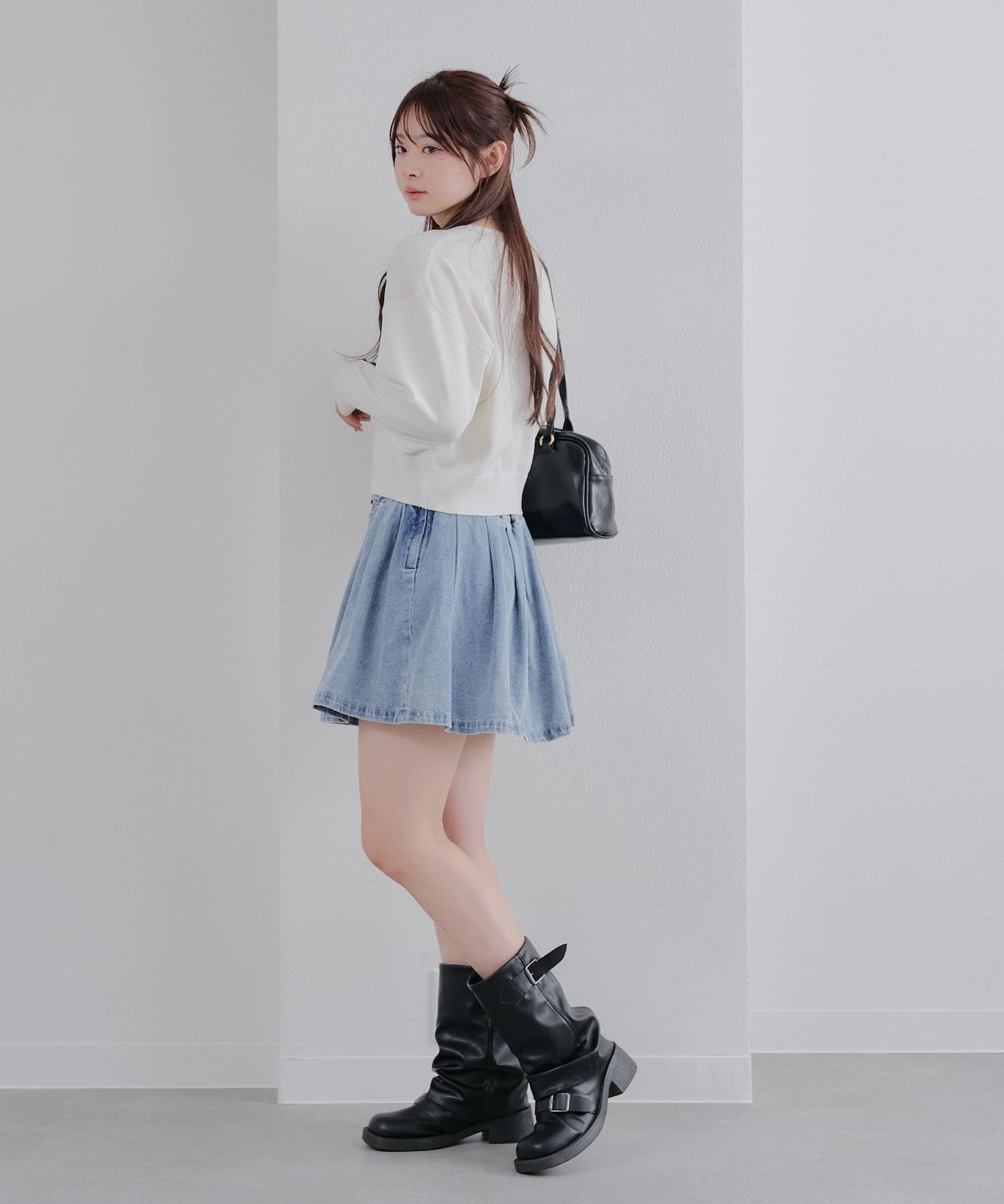 ・ミニスカート、ロングブーツで王道のガーリーコーデ