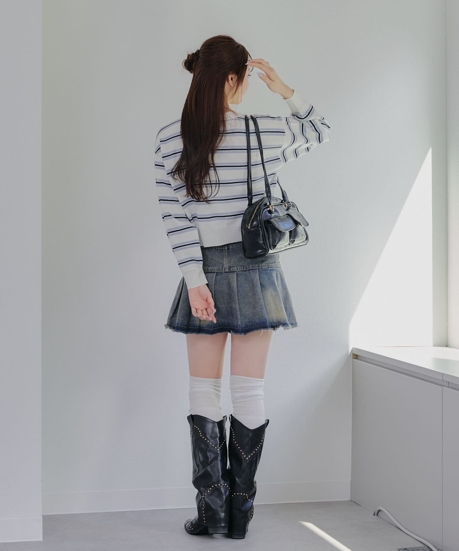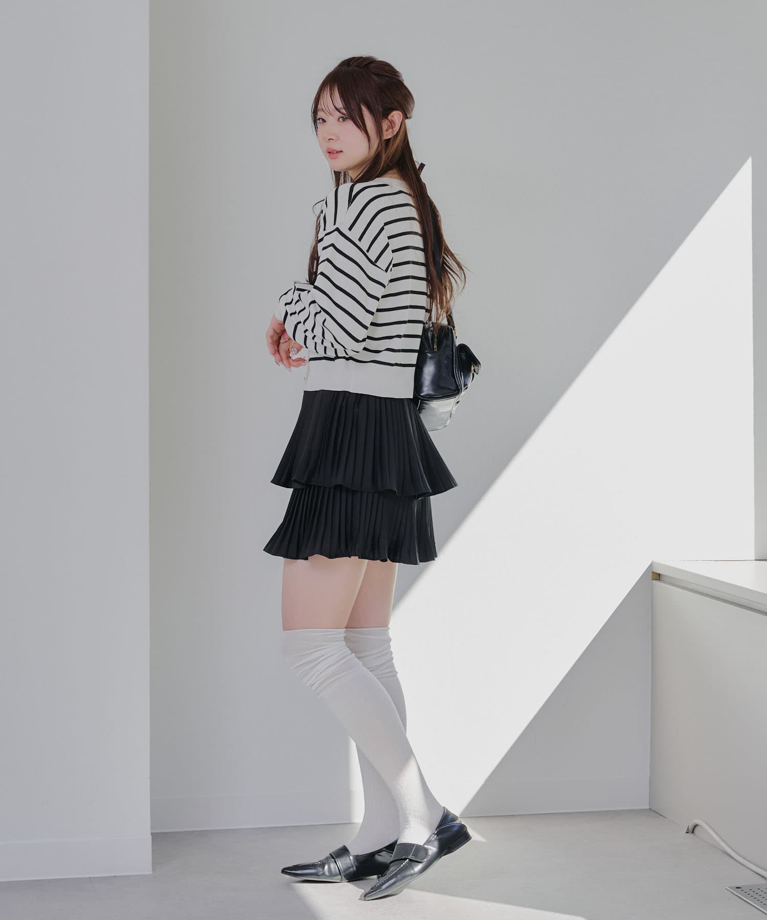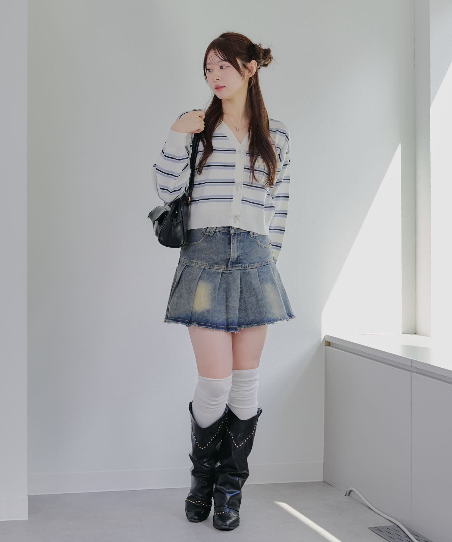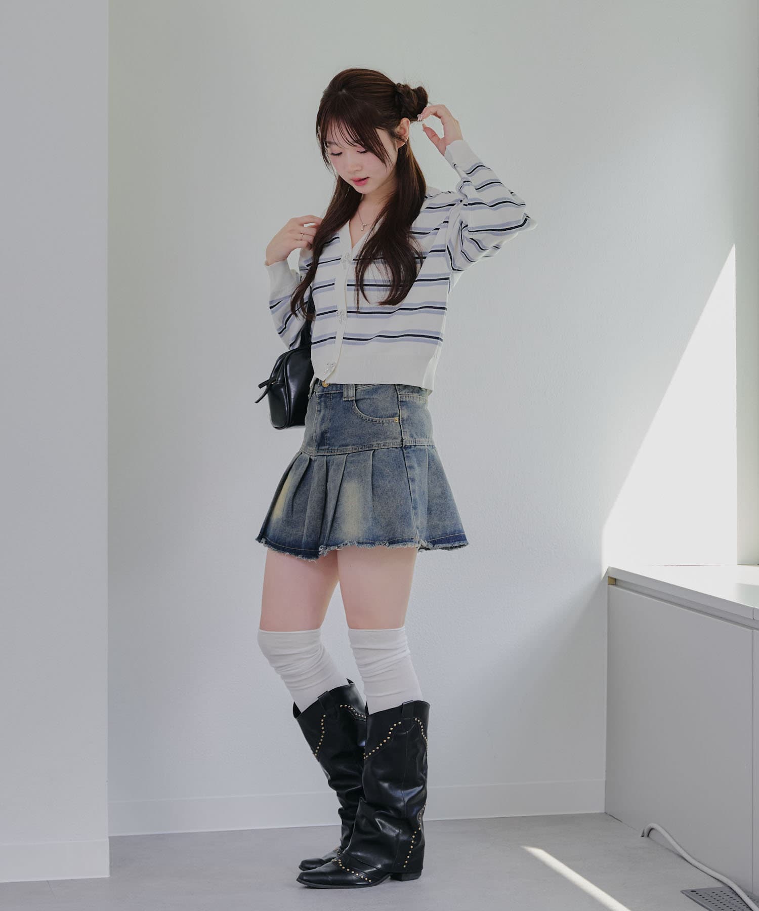・ミニスカート、ロングブーツで王道のガーリーコーデ