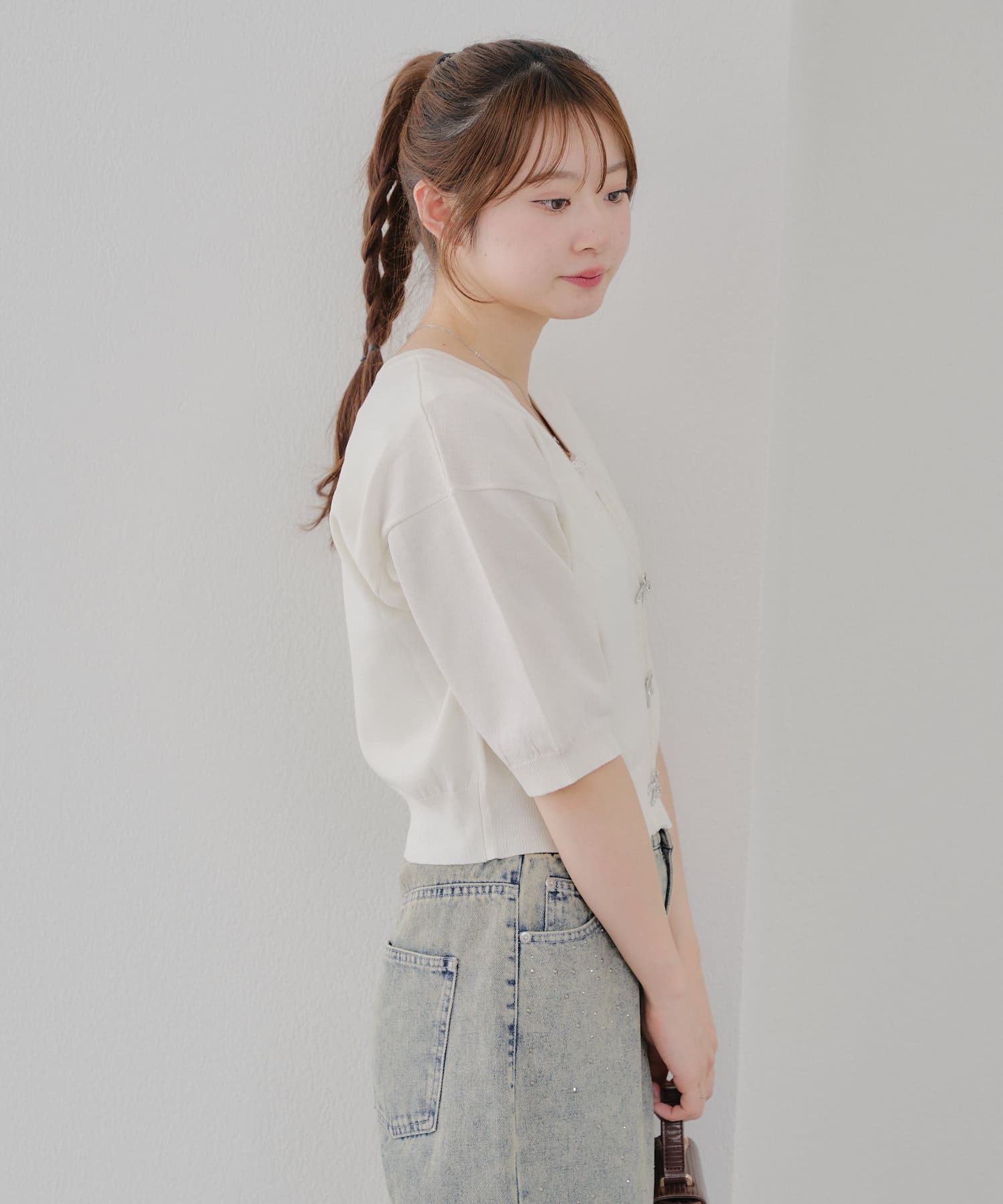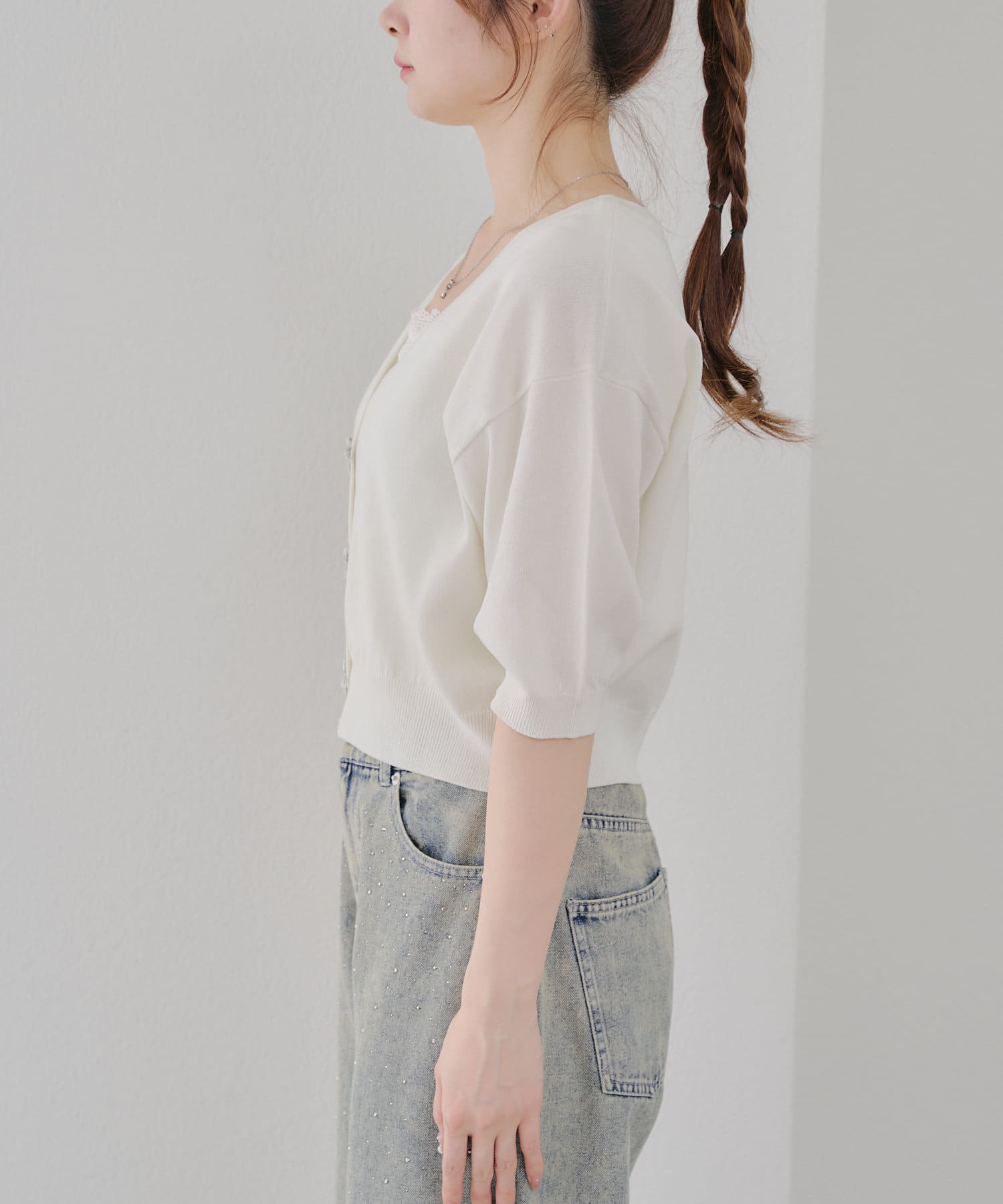 インせずに着用していただけるショート丈のカーディガンです。