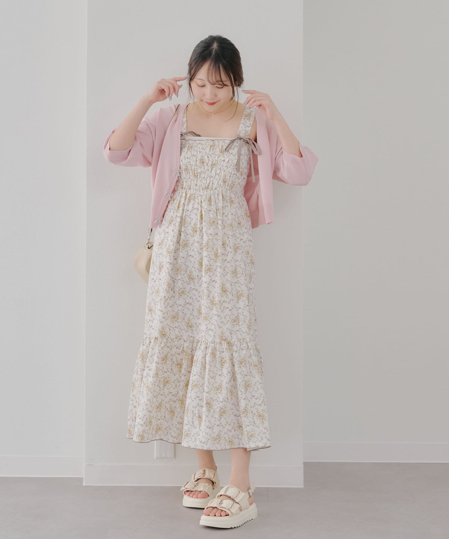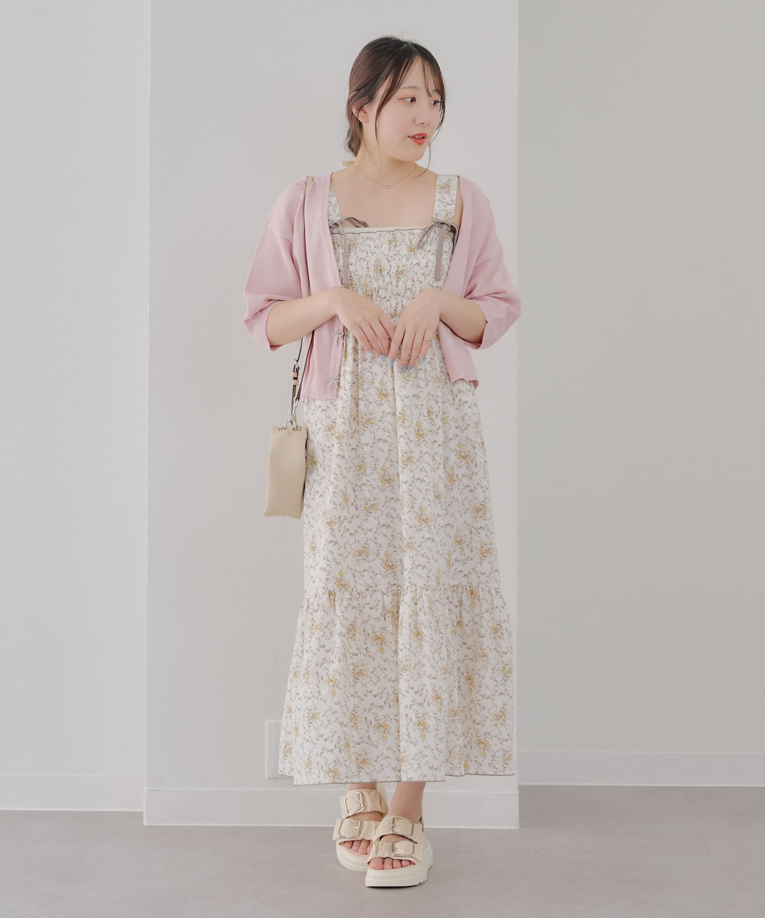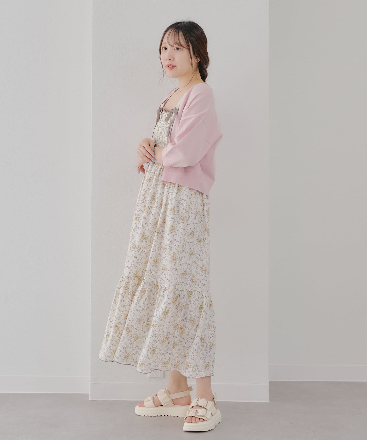 ・ボタンを開けてキャミワンピに羽織っても◎