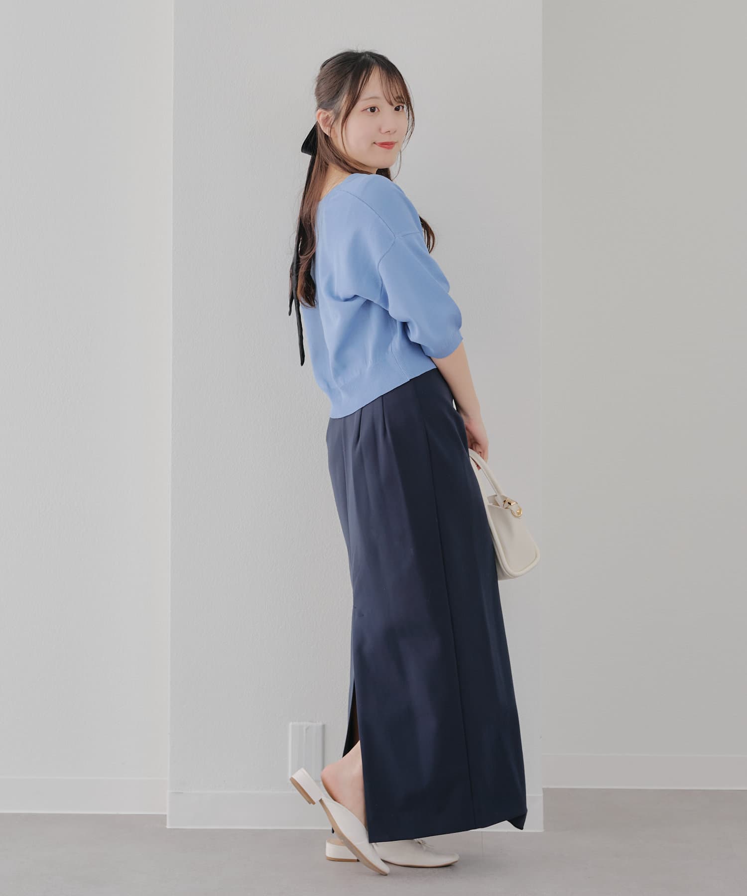 すっきりとした印象を与えてくれるデザインの為、大人可愛いコーデにもぴったりです。