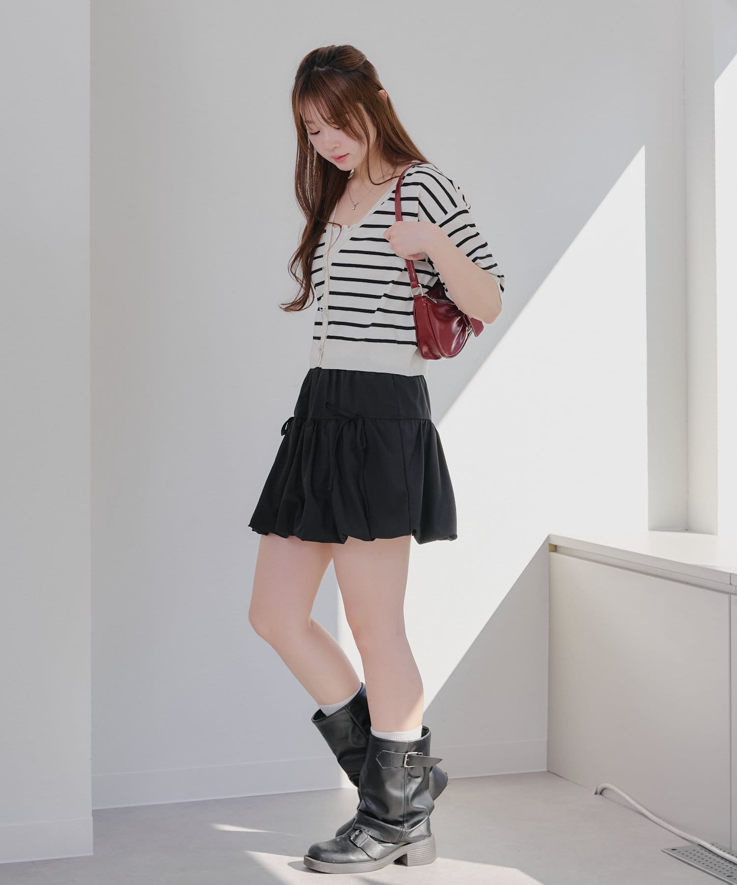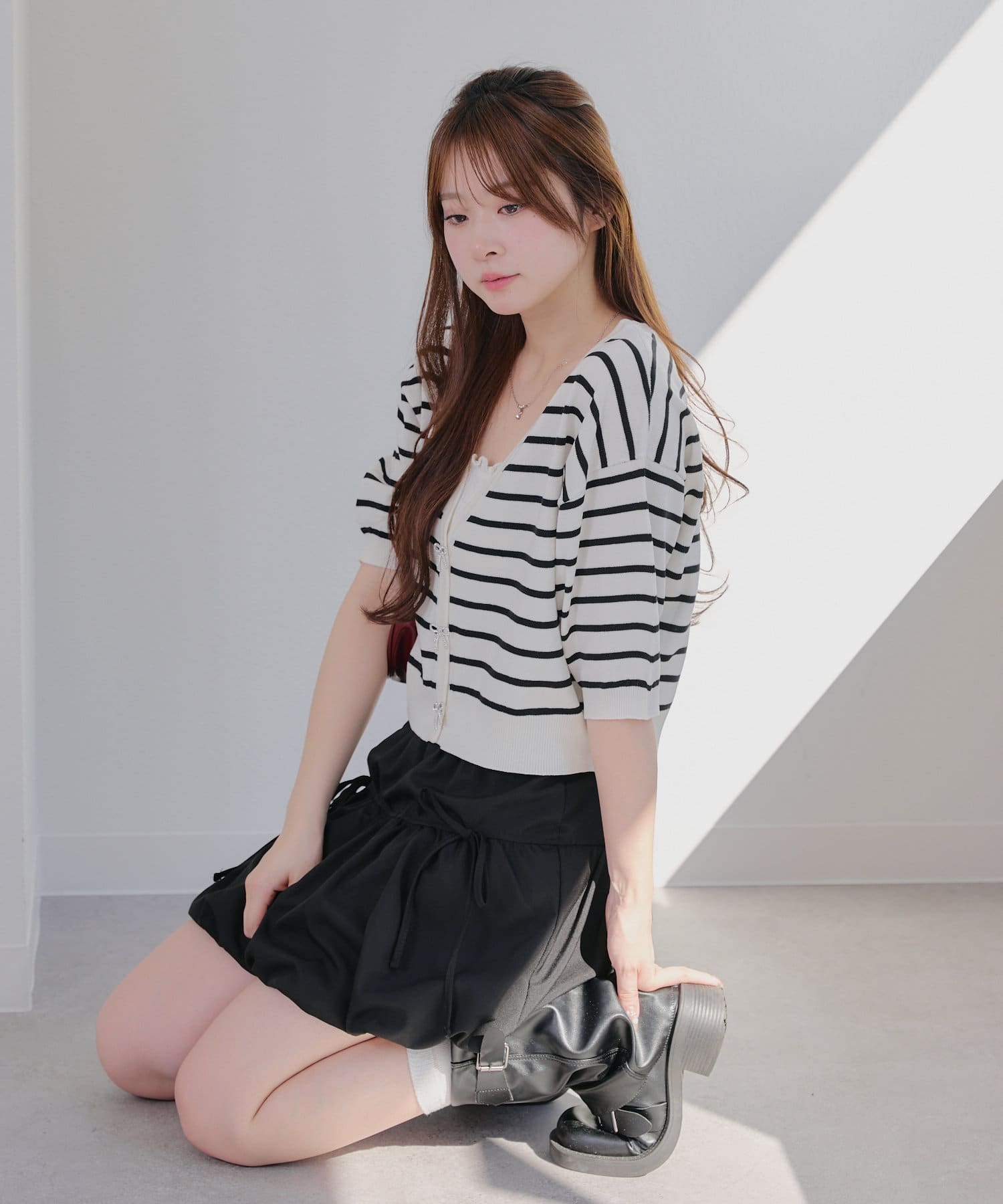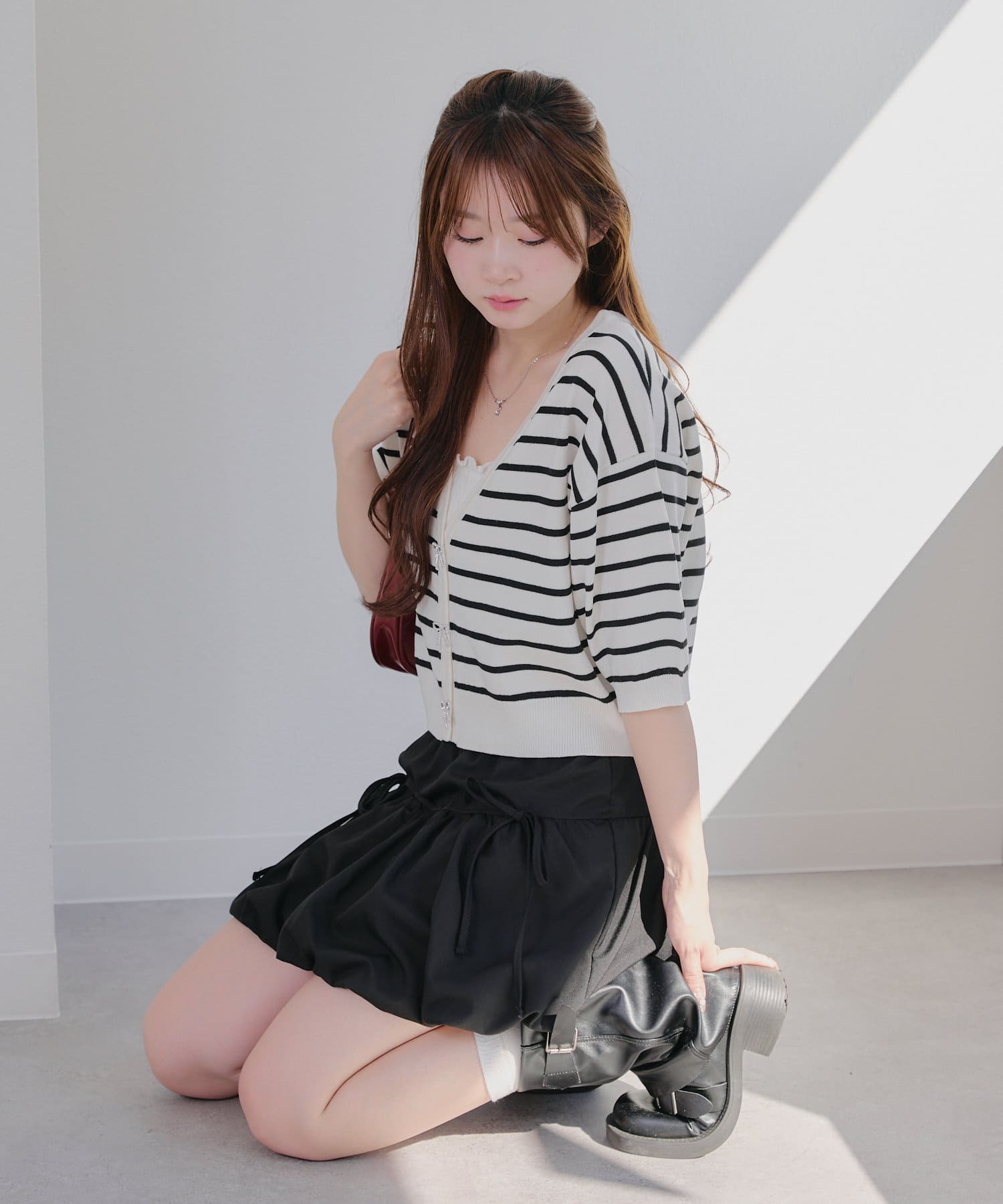 ・ミニボトムやロングスカートと合わせたガーリーコーデがおすすめ♪