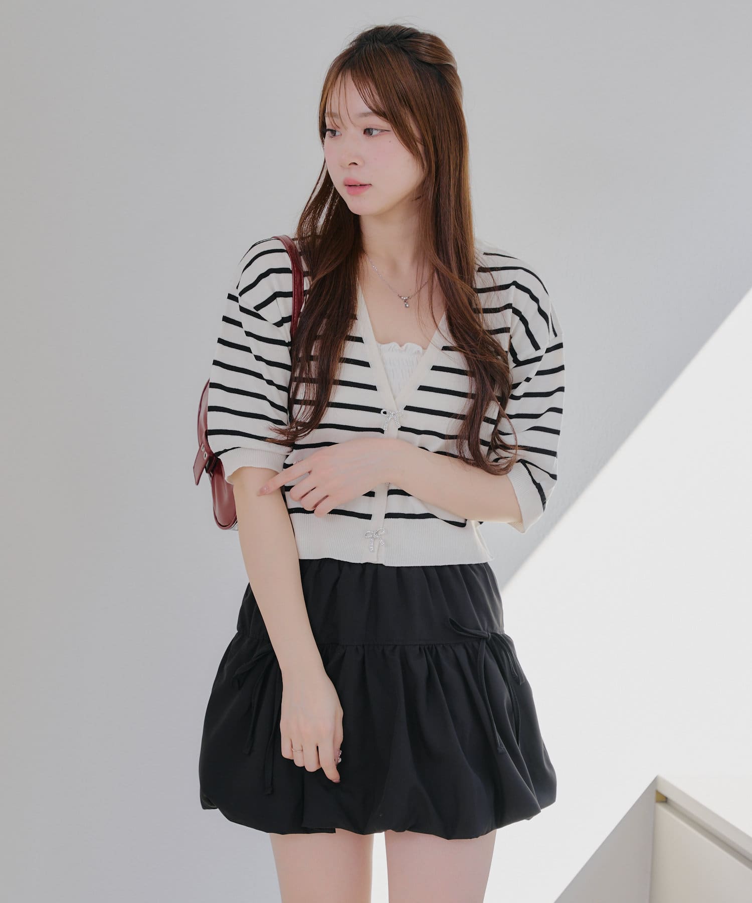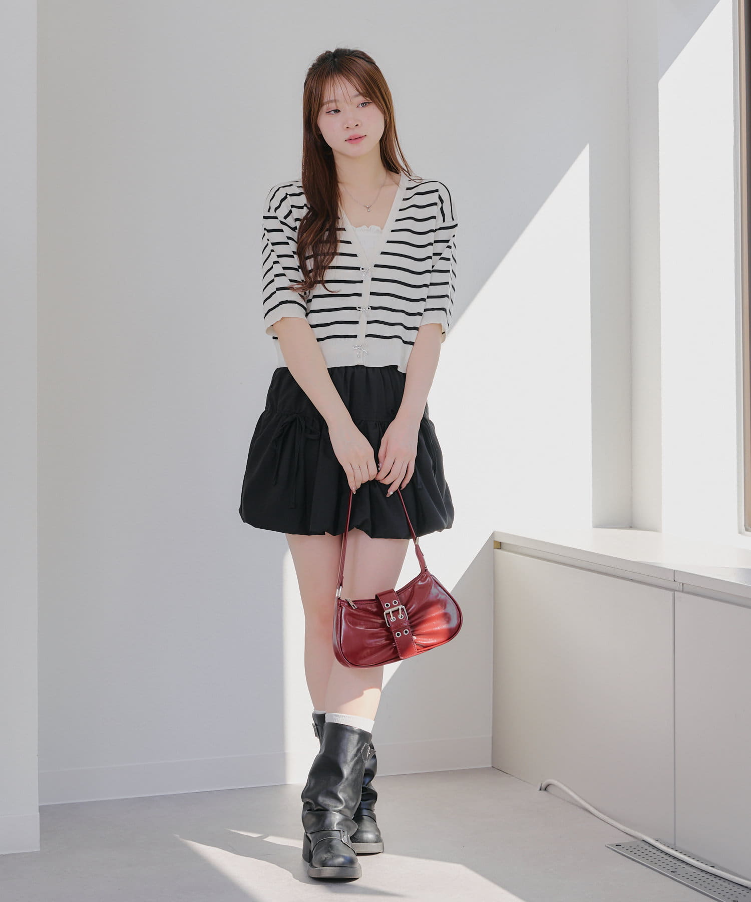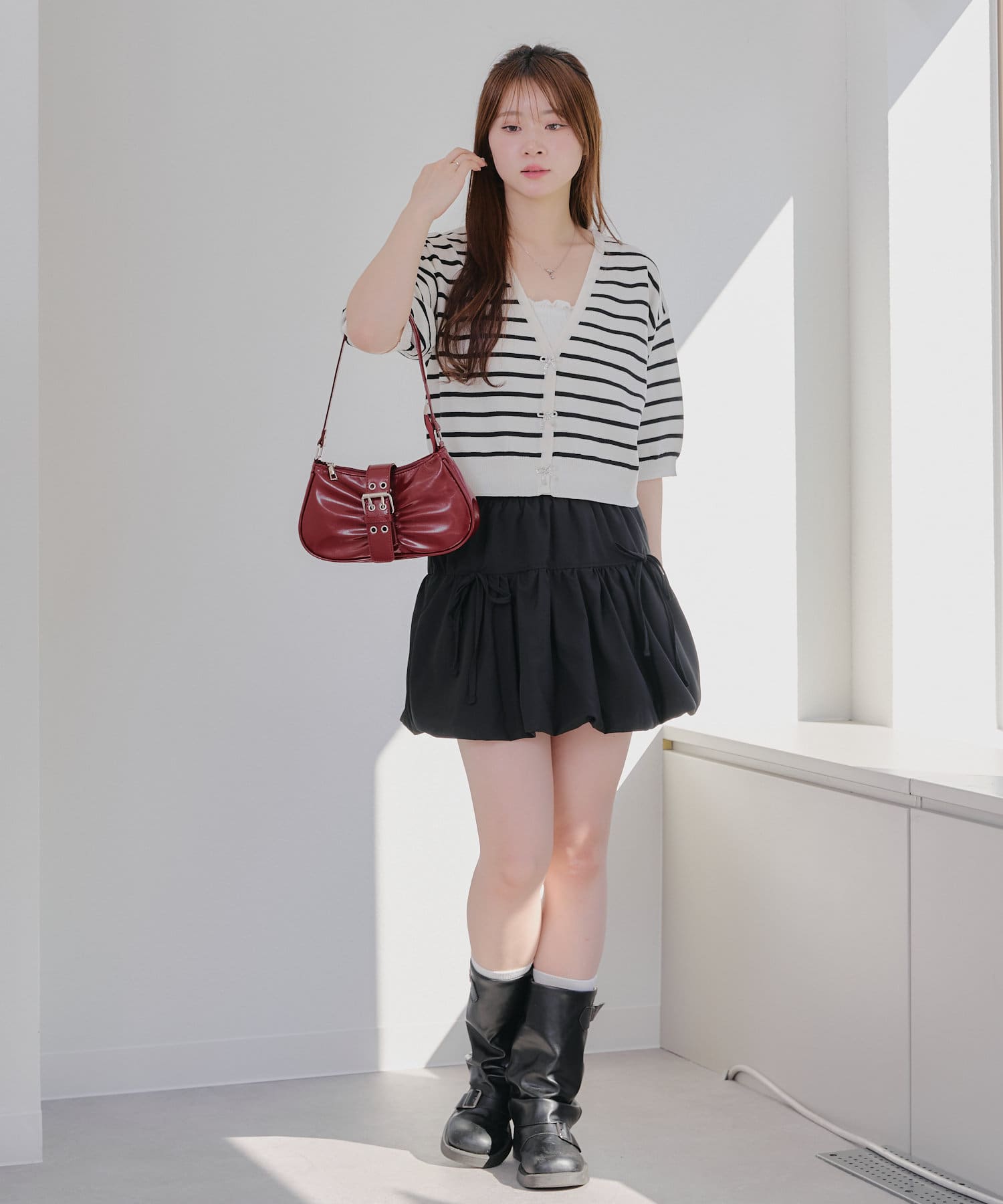 ・ミニボトムやロングスカートと合わせたガーリーコーデがおすすめ♪