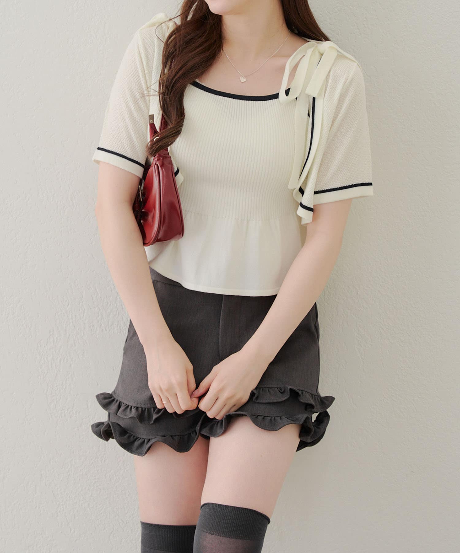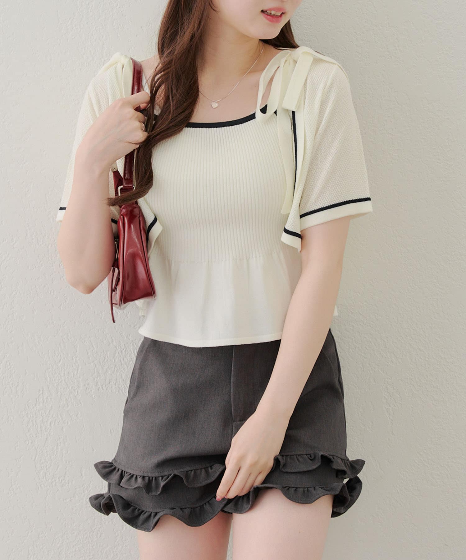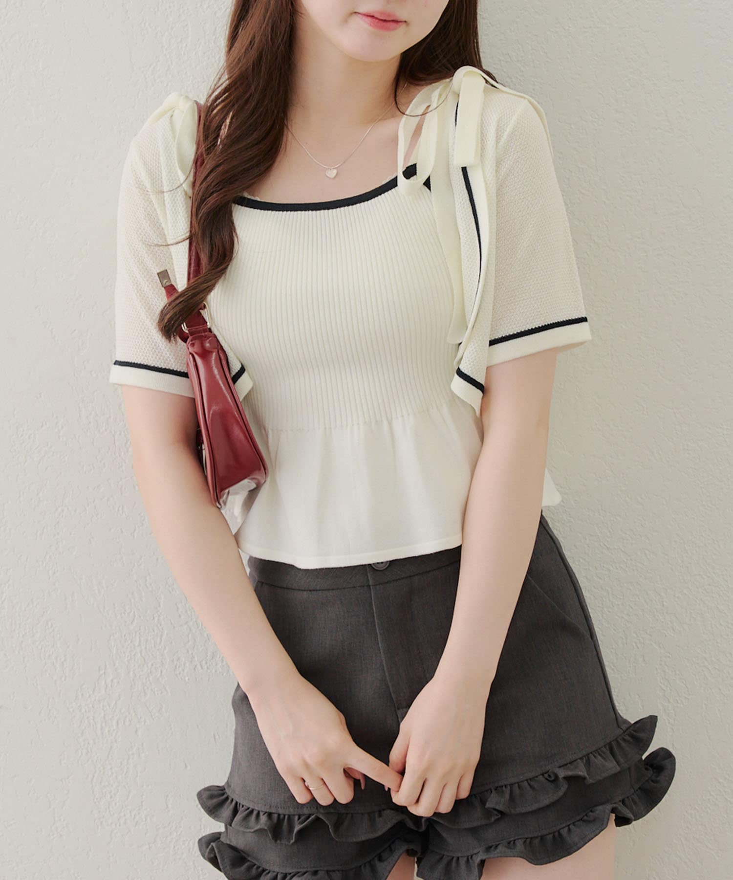 Remind me and forever(リマインドミーアンドフォーエバー) 【2枚SET】ペプラムビスチェ×カーディガン