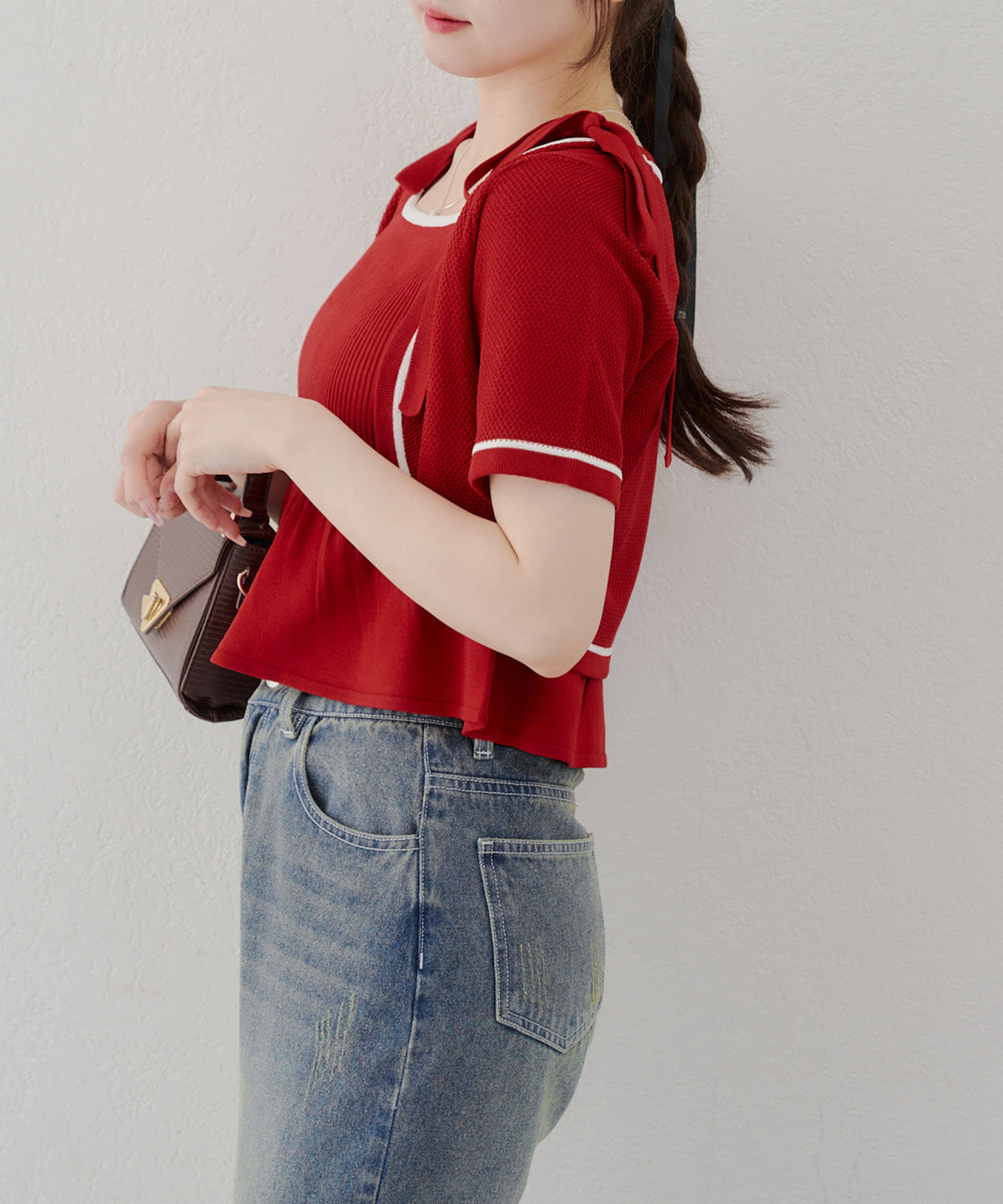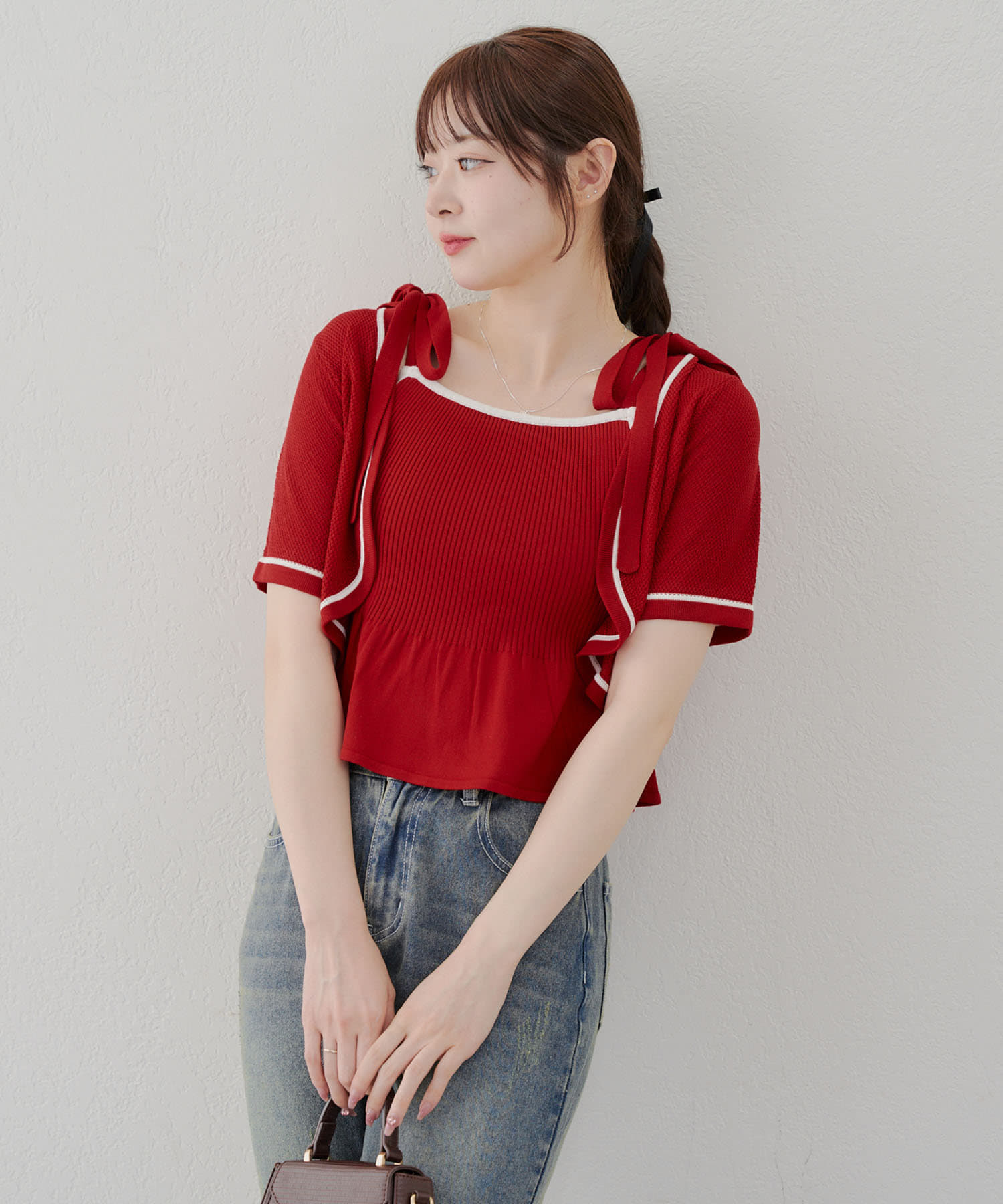 TOP > Remind me and forever > レディース > トップス > ニット/セーター > 【2枚SET】ペプラムビスチェ×カーディガン