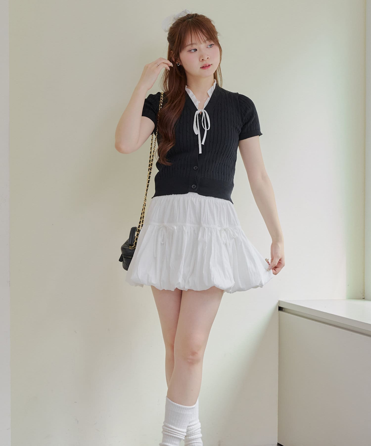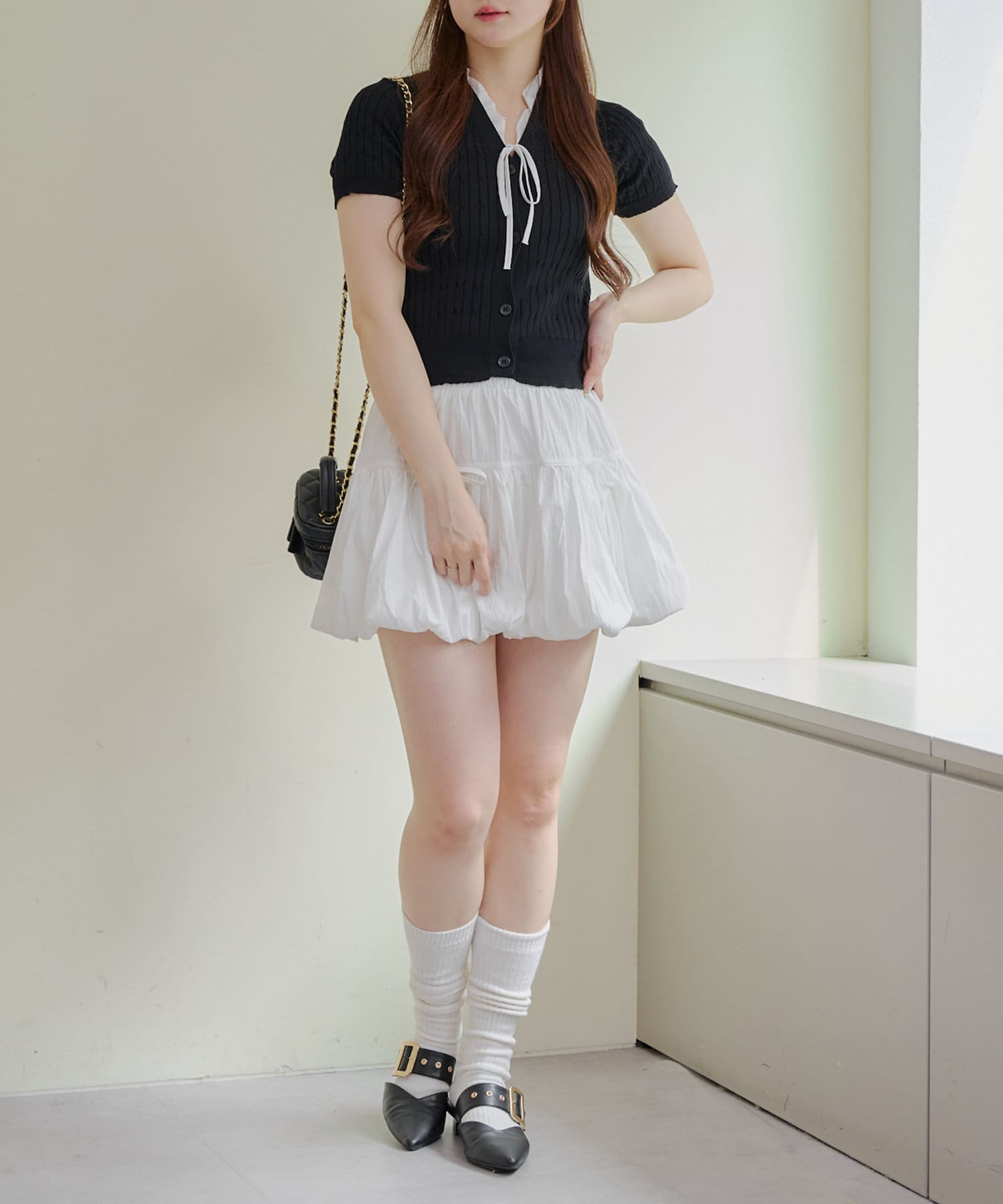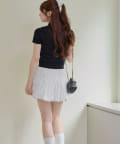 ・プリーツのミニスカ合わせでガーリーなコーデも◎