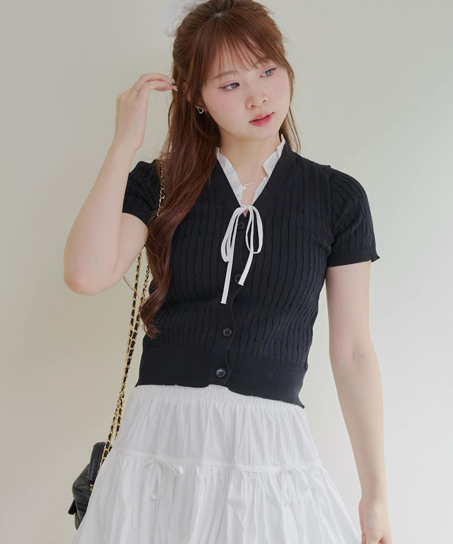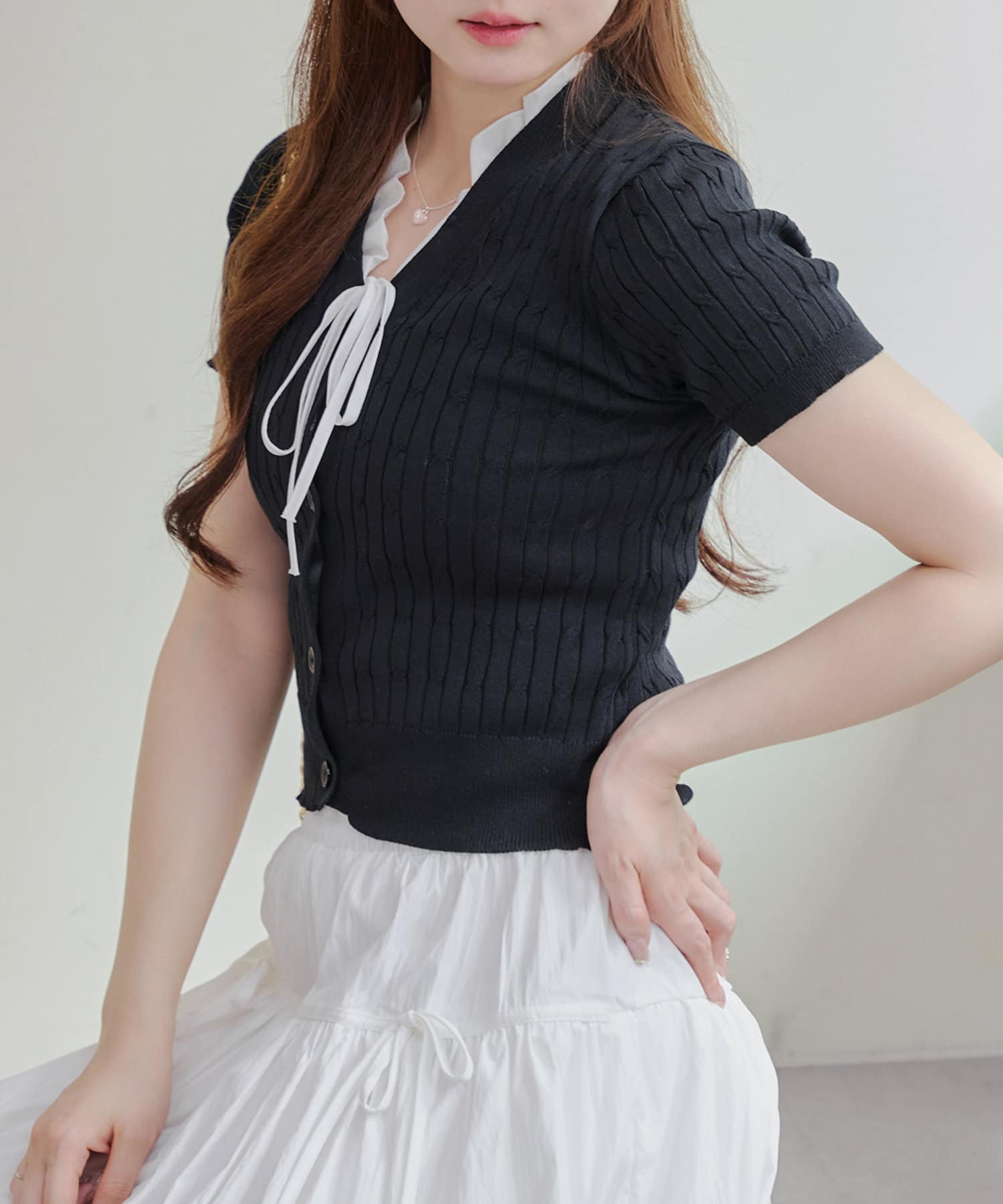 TOP > Remind me and forever > レディース > トップス > ニット/セーター > ドッキングフリルケーブルカーディガン
