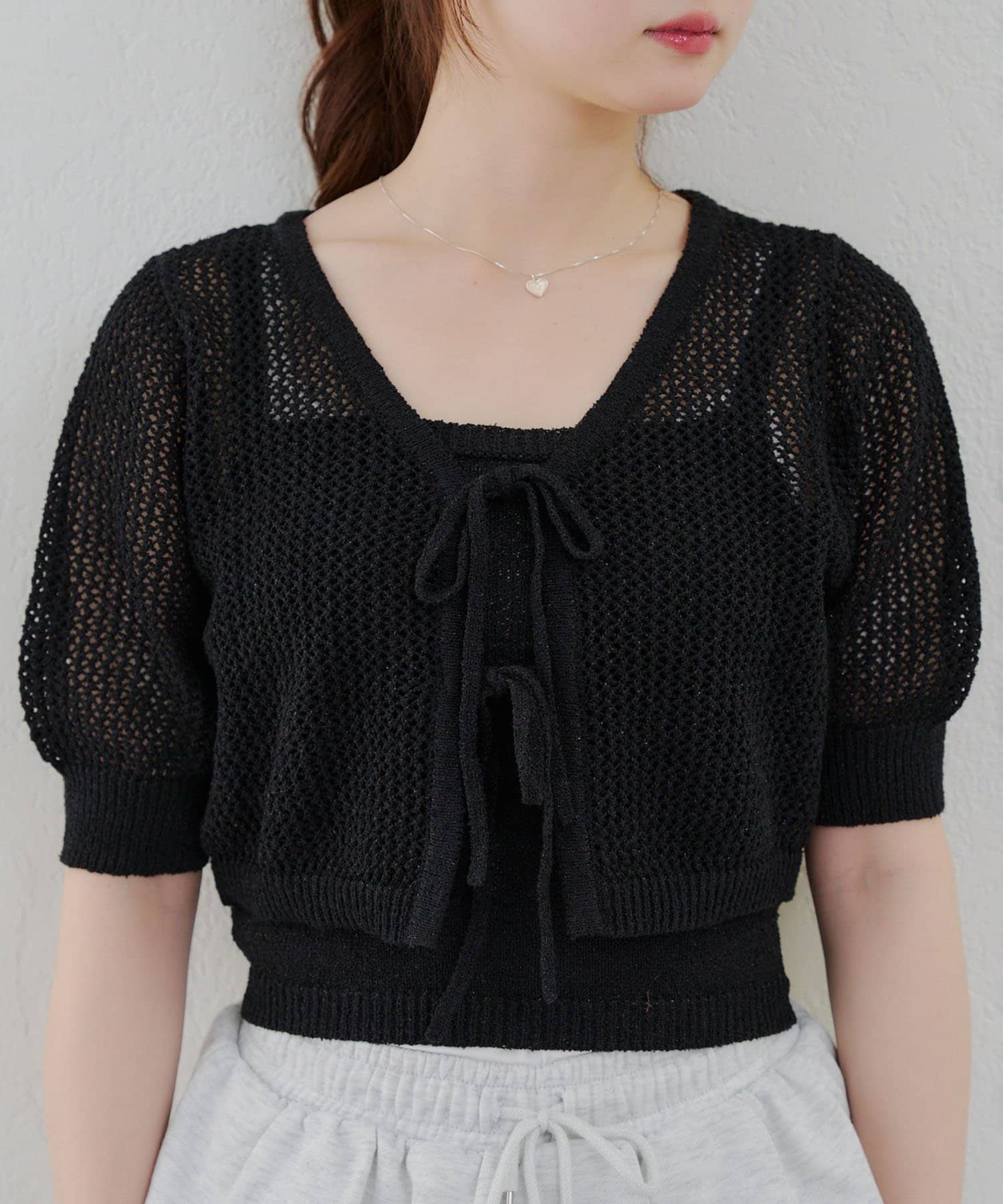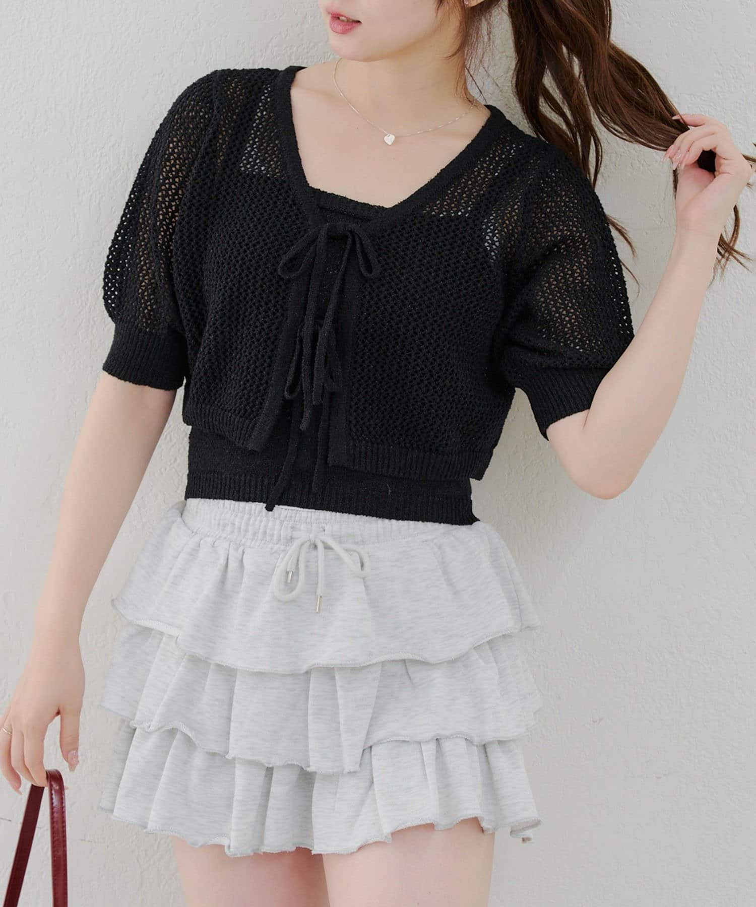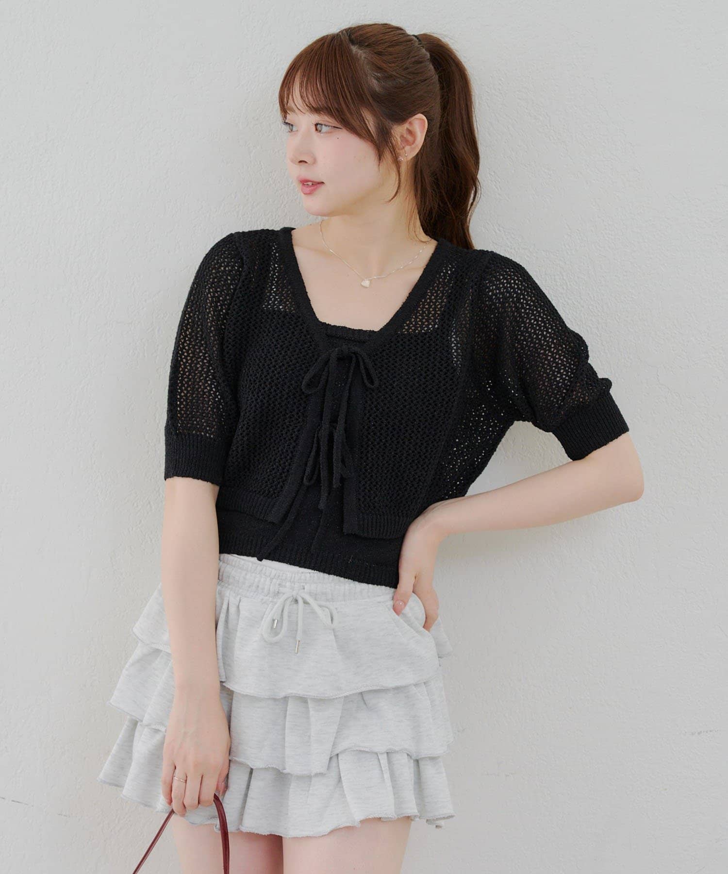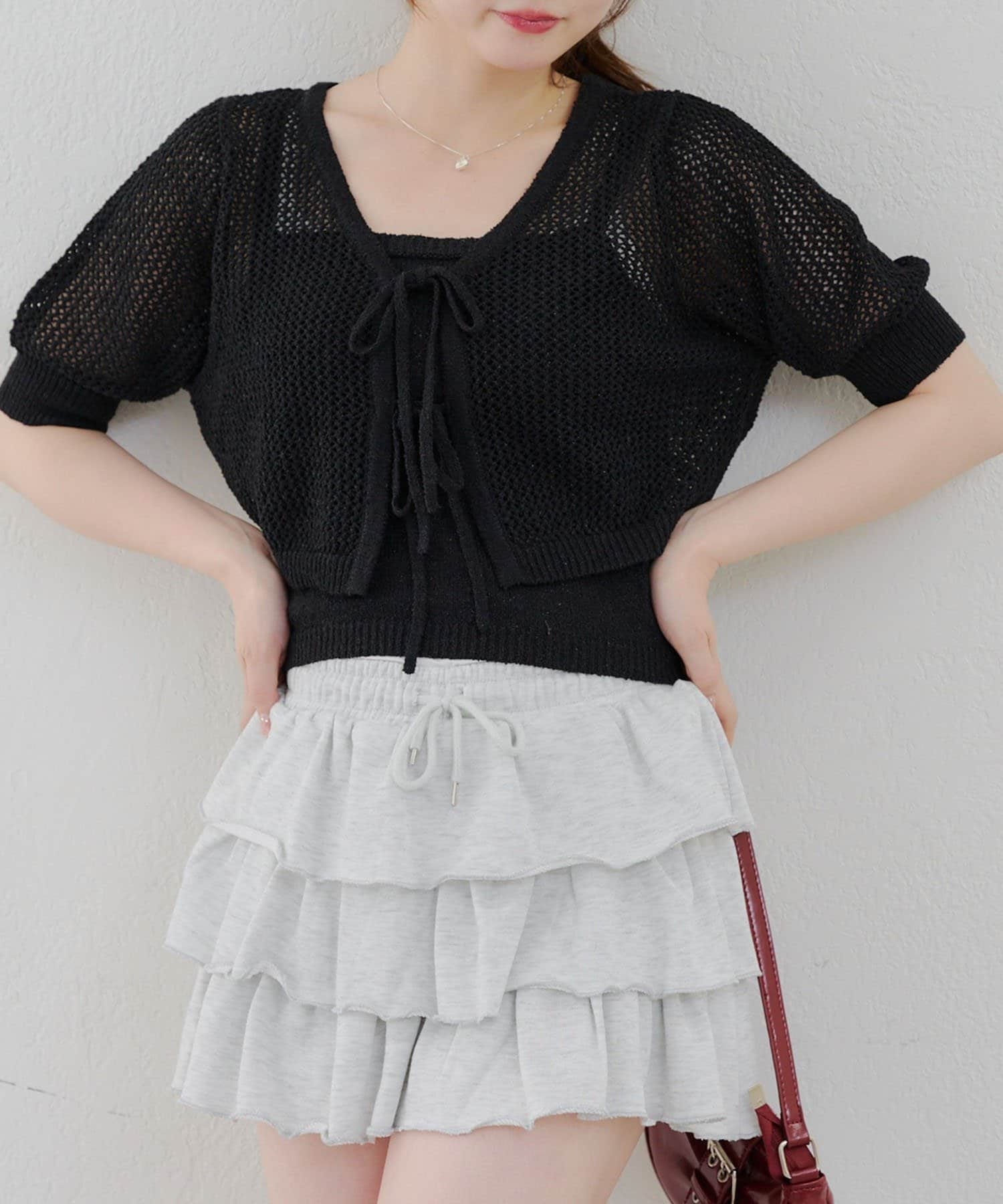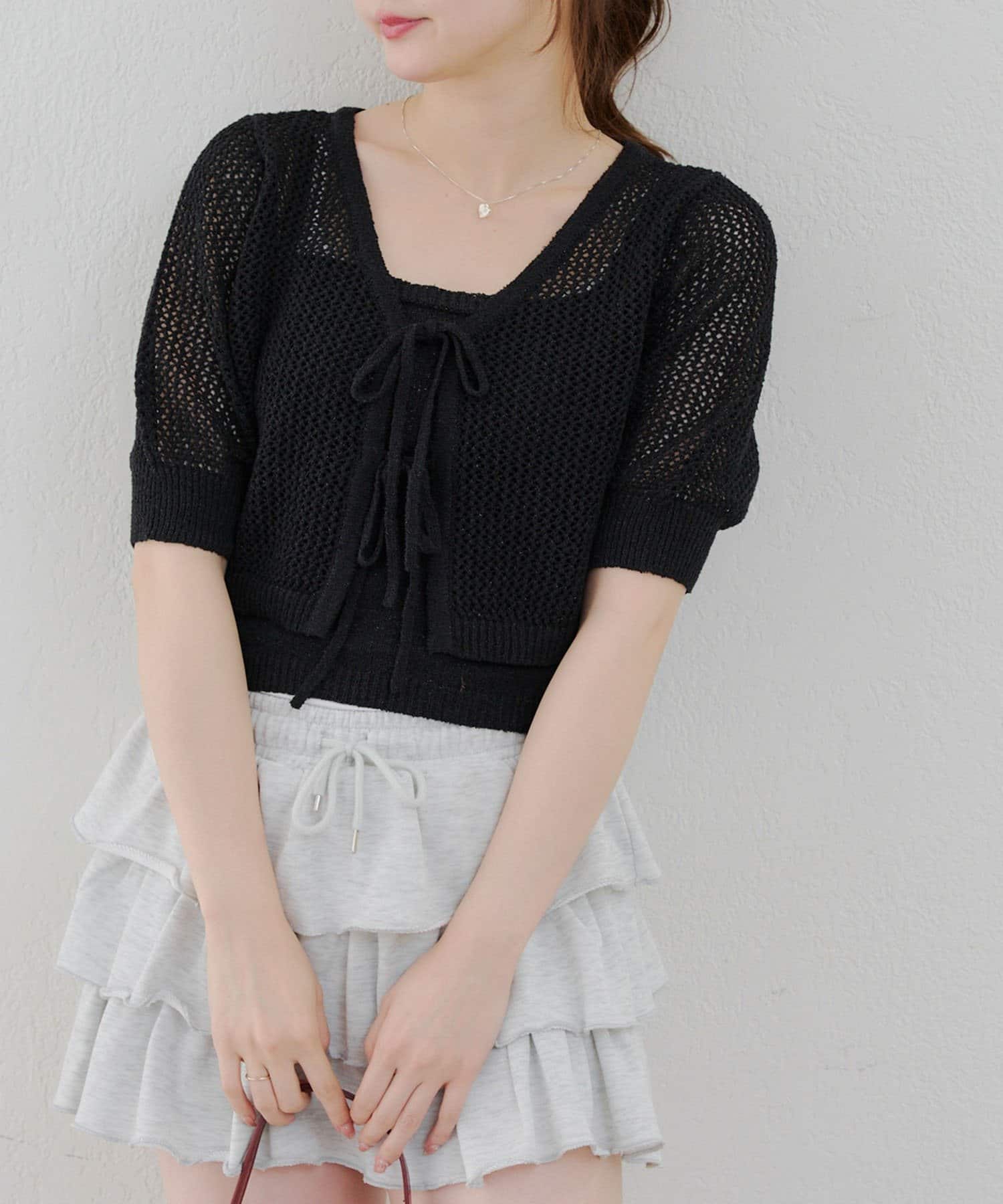 ・前リボンの羽織りとキャミソールの2枚セットで着回しの幅が広がります◎