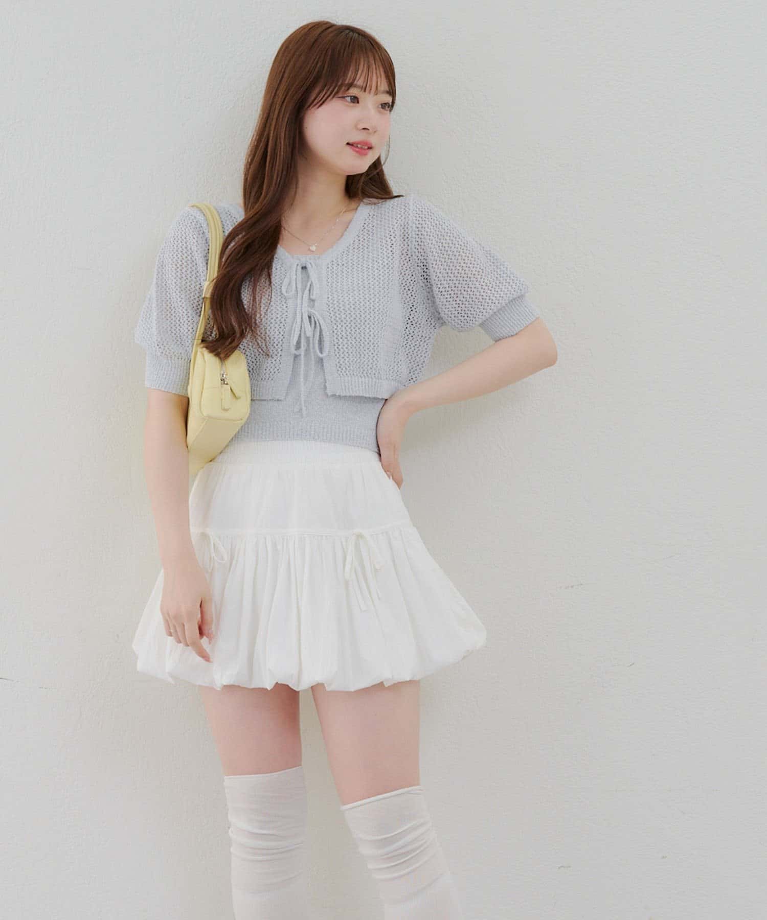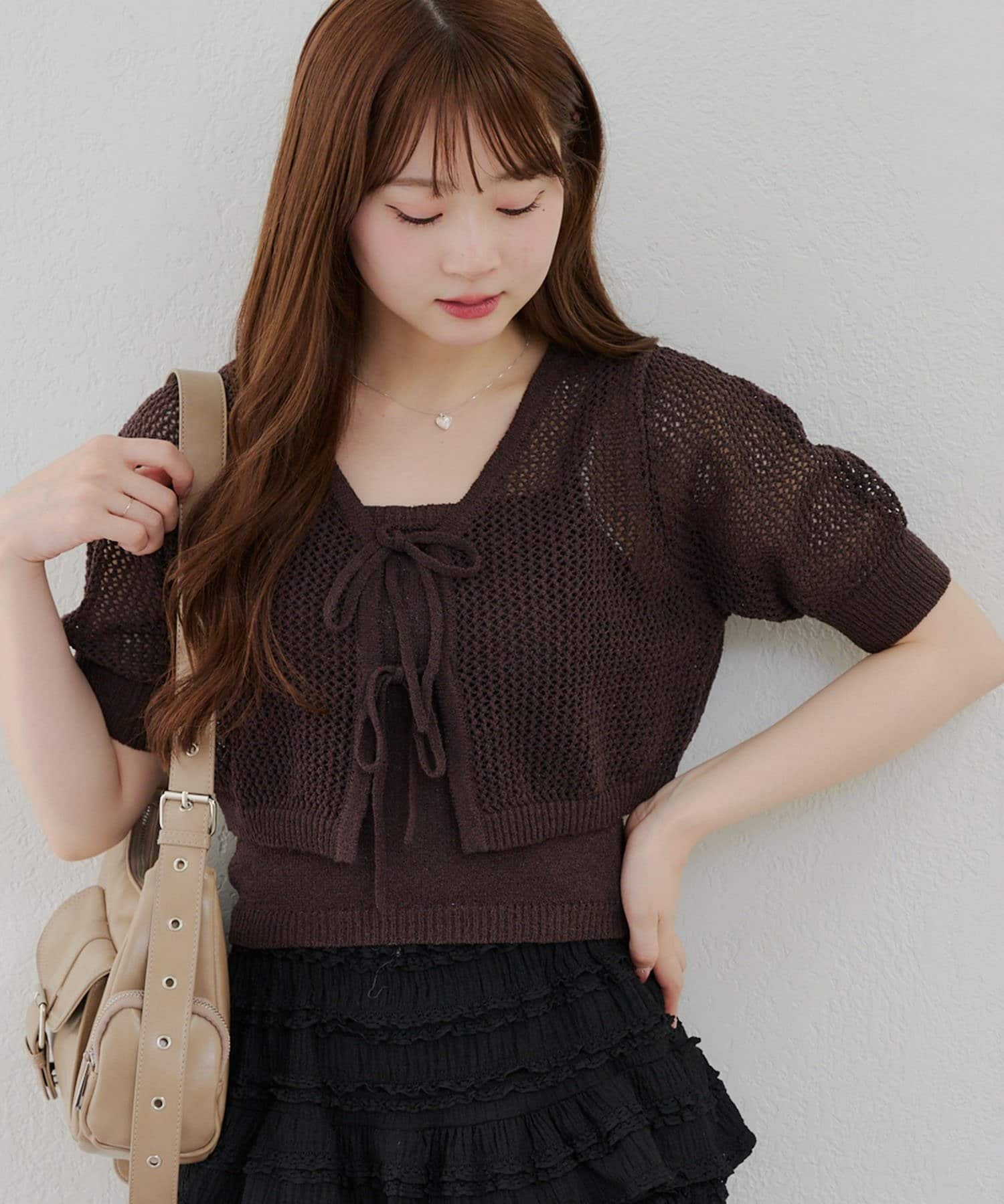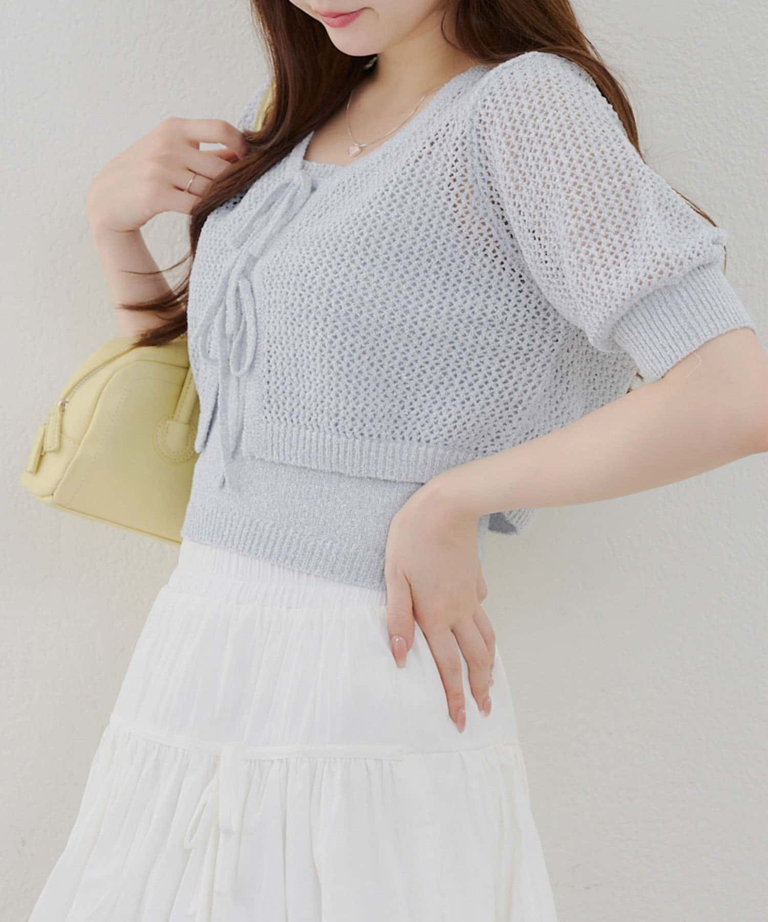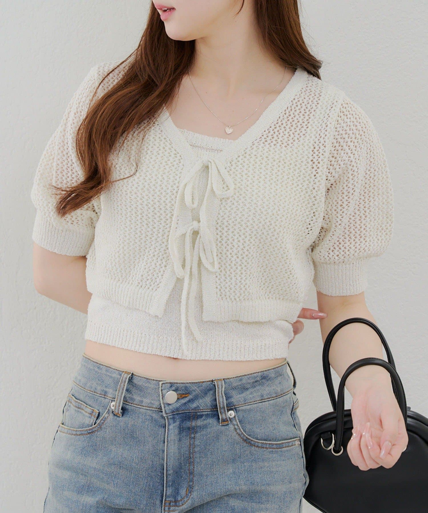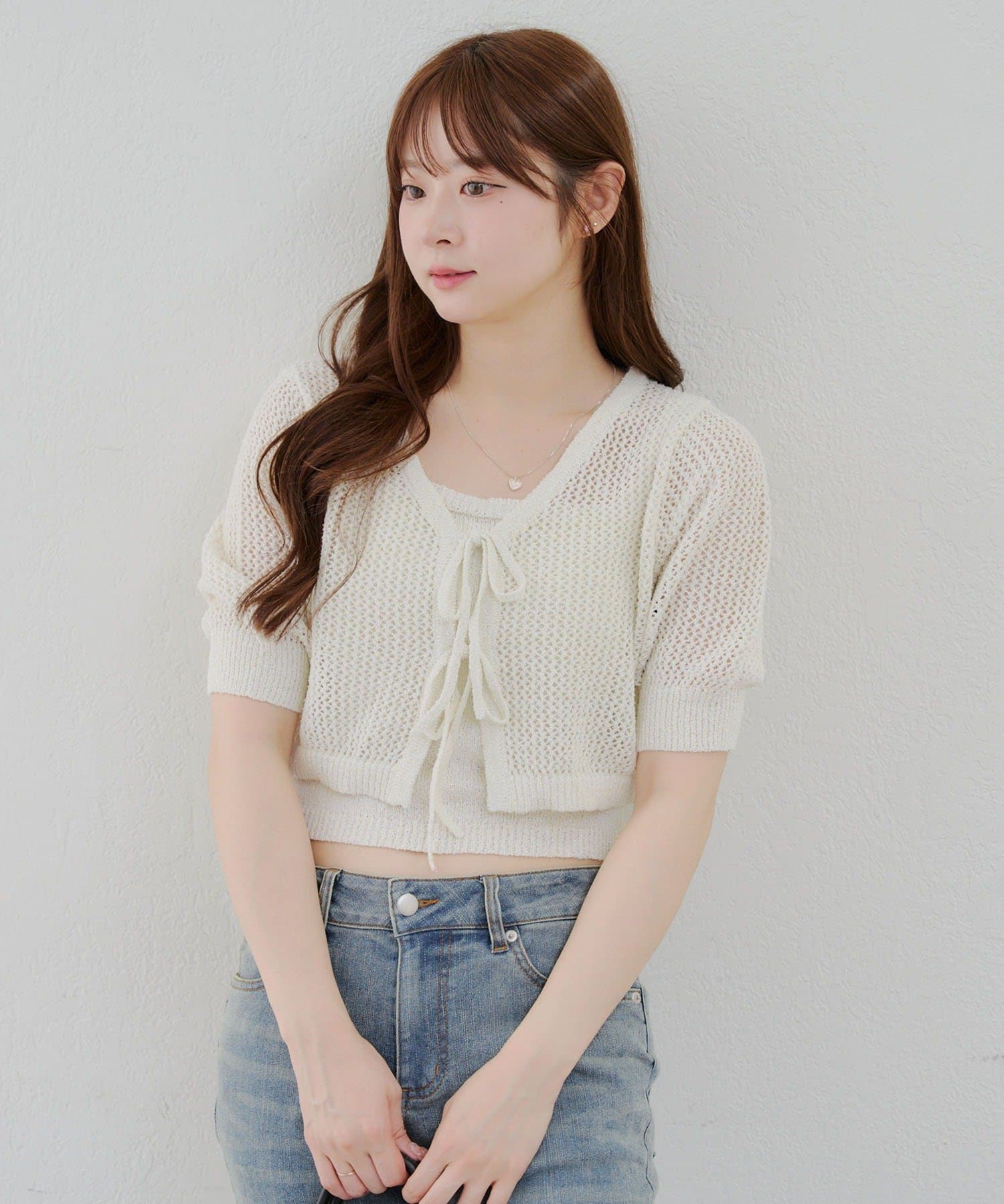 ・前リボンの羽織りとキャミソールの2枚セットで着回しの幅が広がります◎
