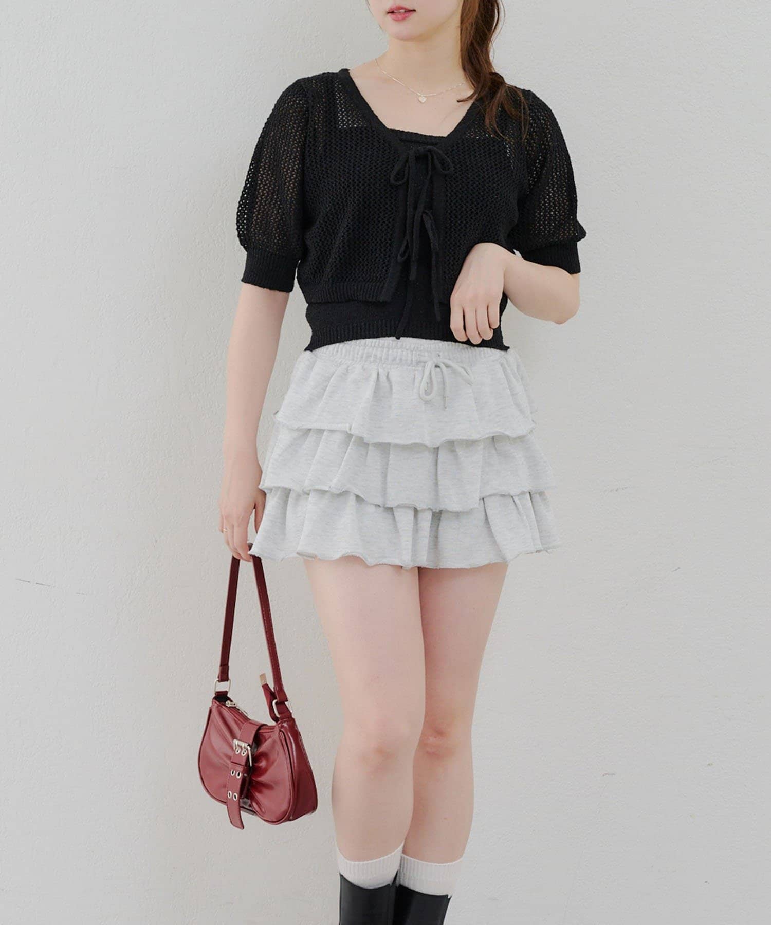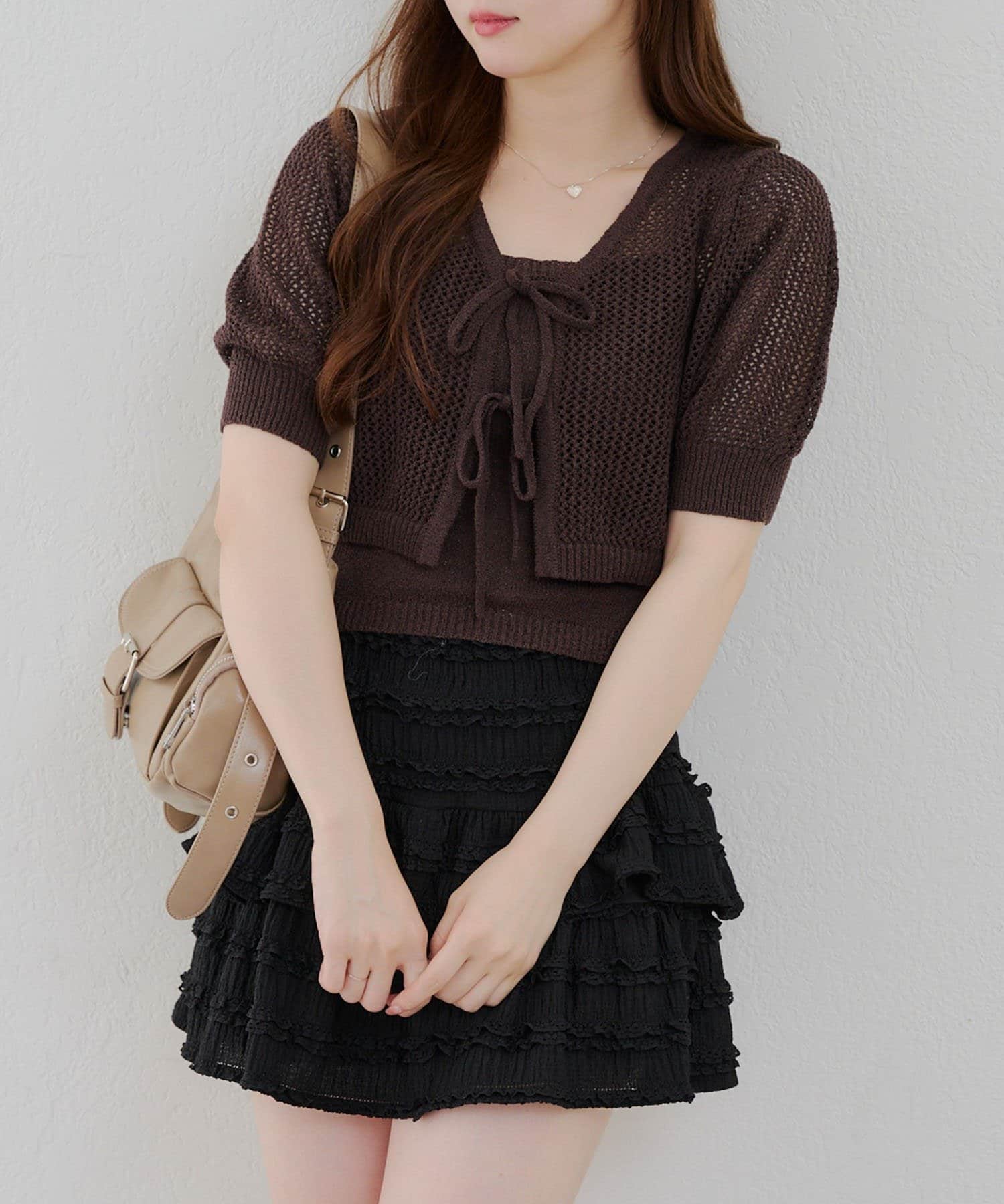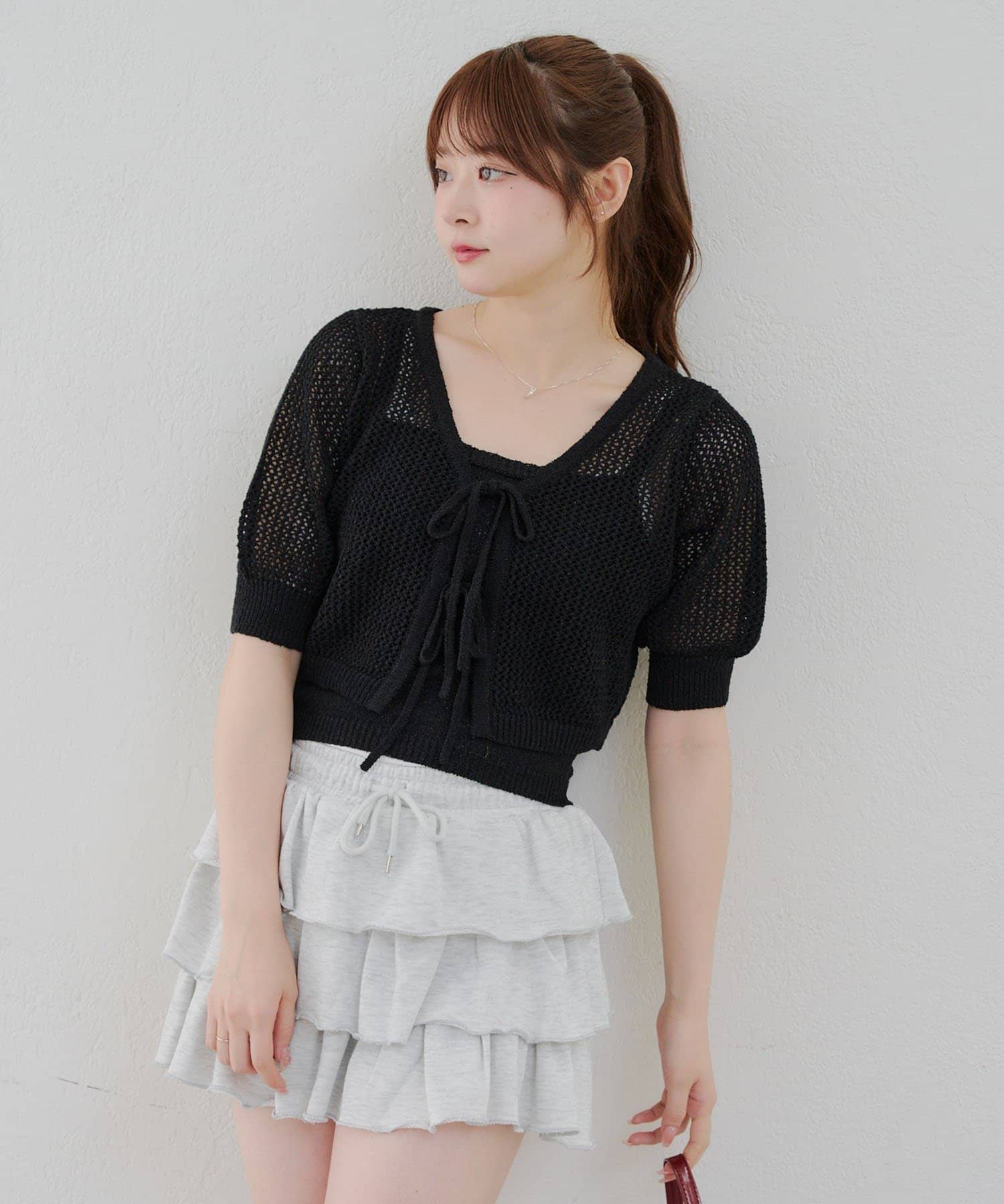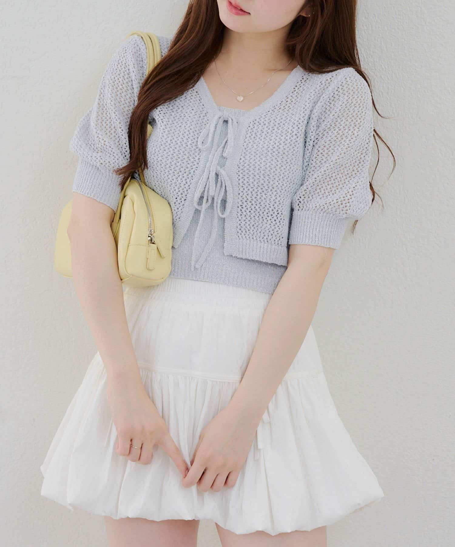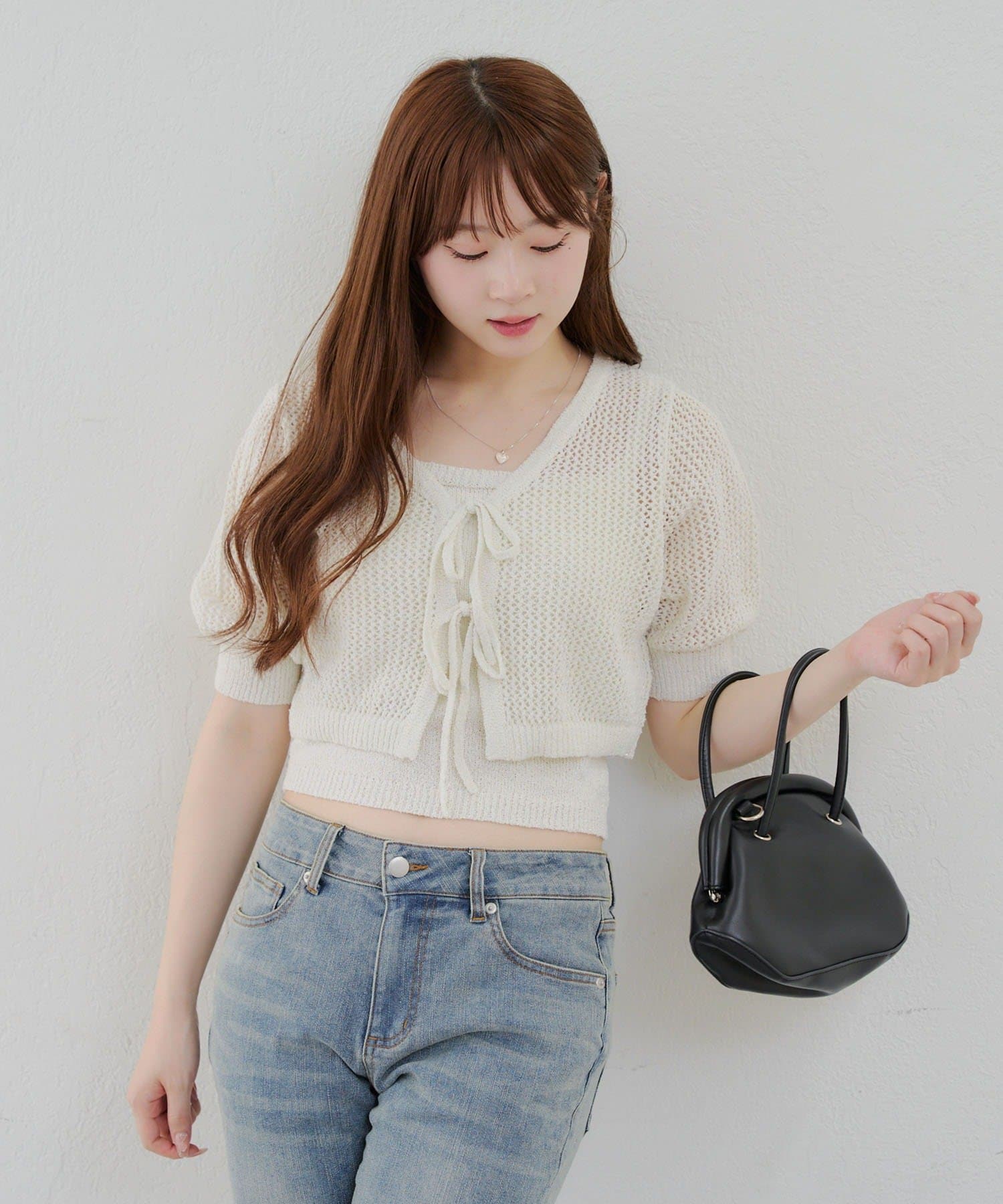 ・前リボンの羽織りとキャミソールの2枚セットで着回しの幅が広がります◎