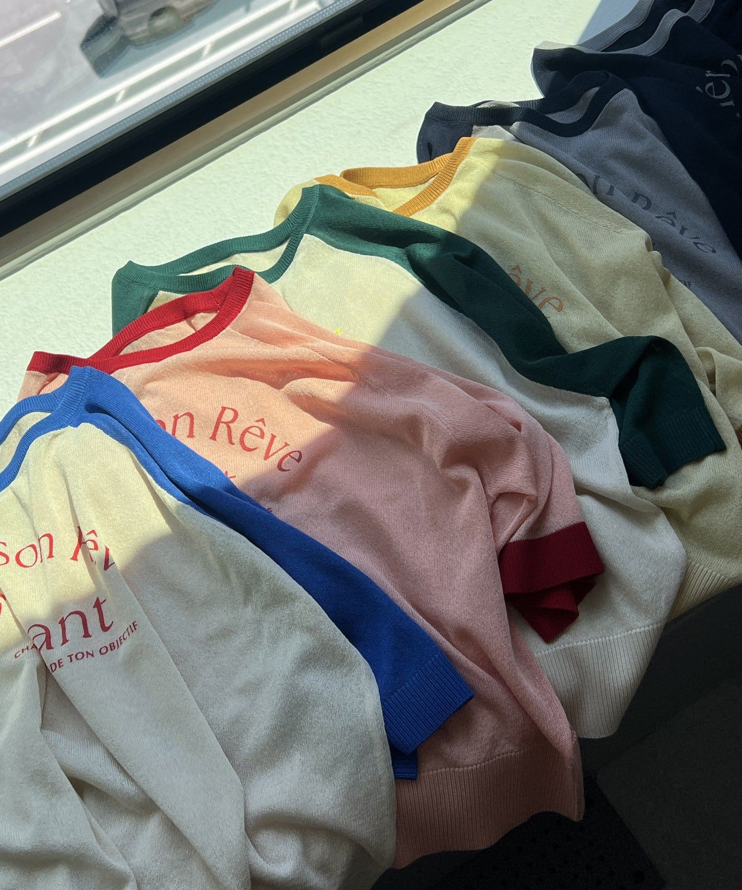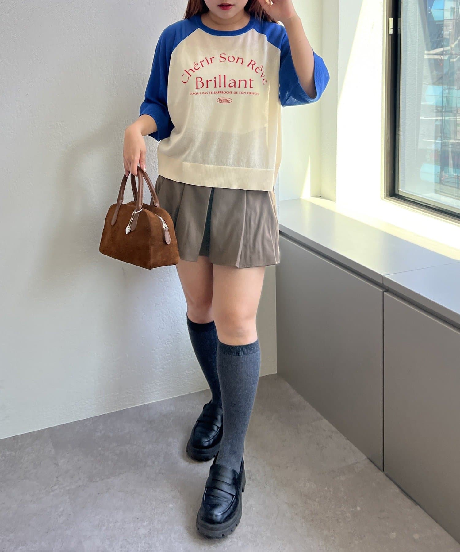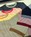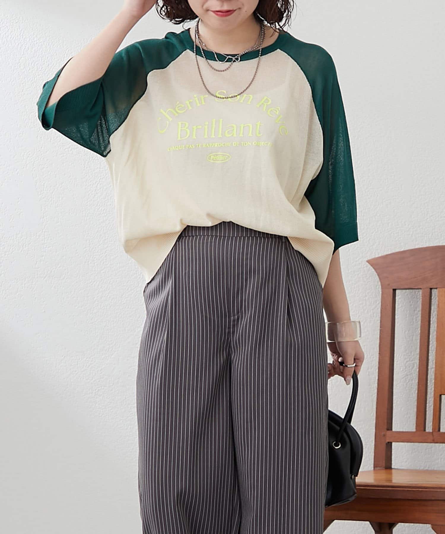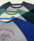 ・配色、ラグランのデザイン違いの展開と主張しすぎないロゴがスタイリングのポイントに。