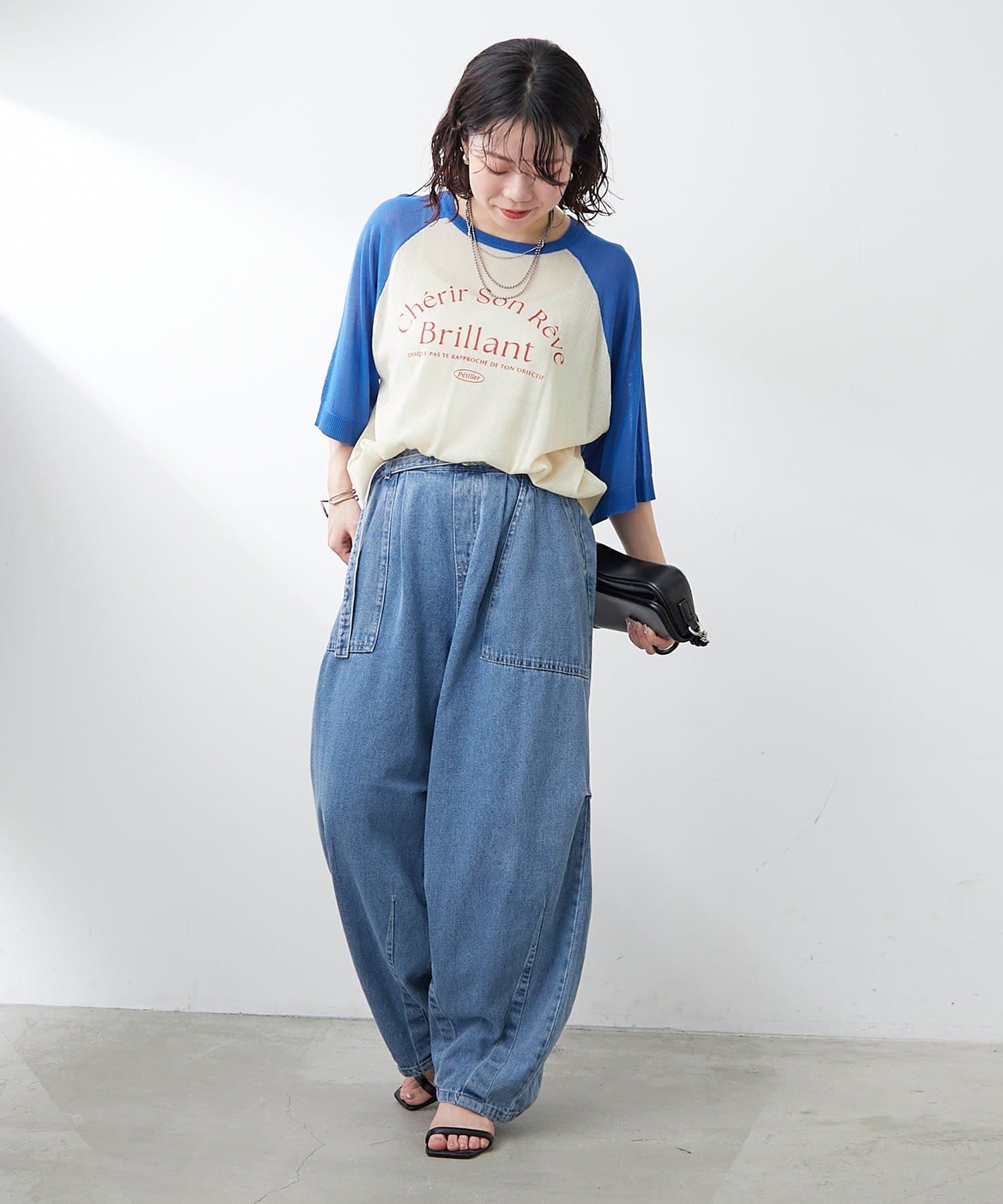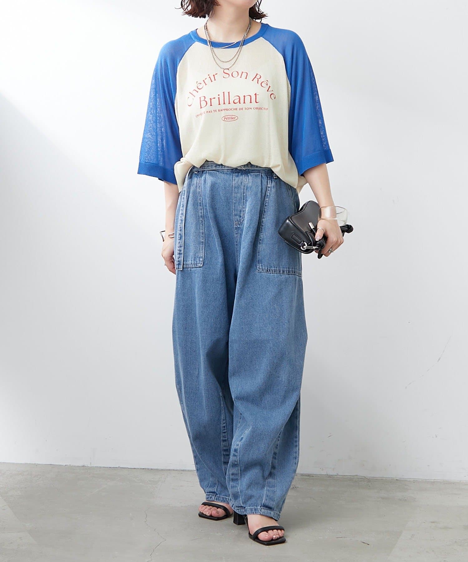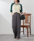 ・デニムやカラーパンツとのカジュアルスタイルはもちろん、フレアスカートやデニムスカートなどボリュームあるボトムスとの相性も良く幅広く着まわして着まわし可能です。