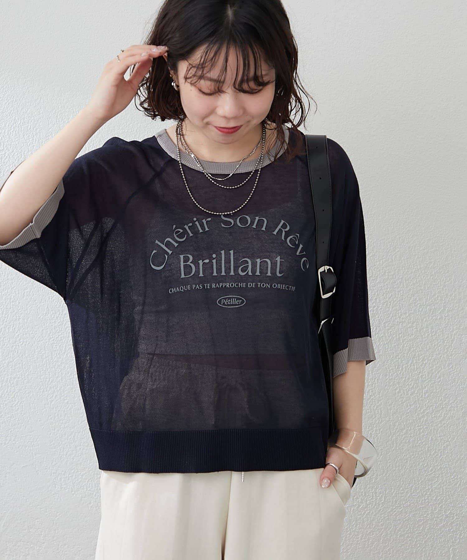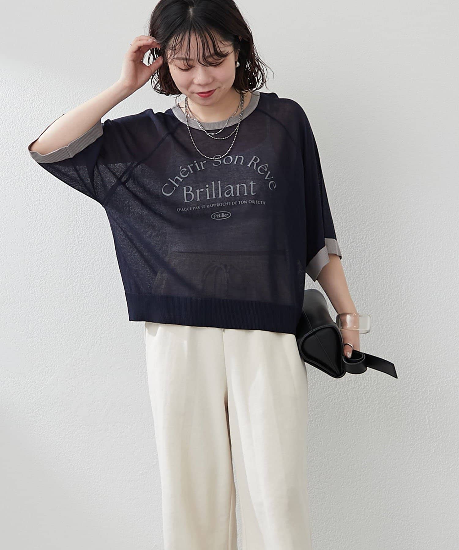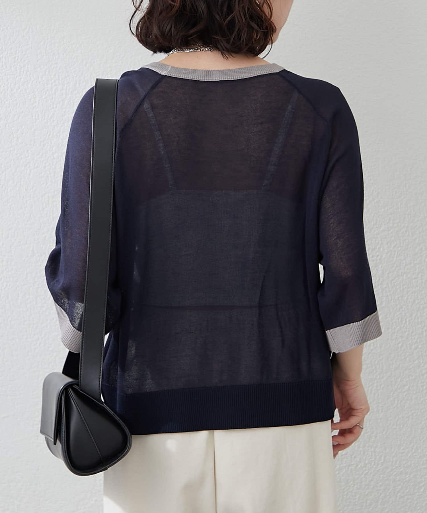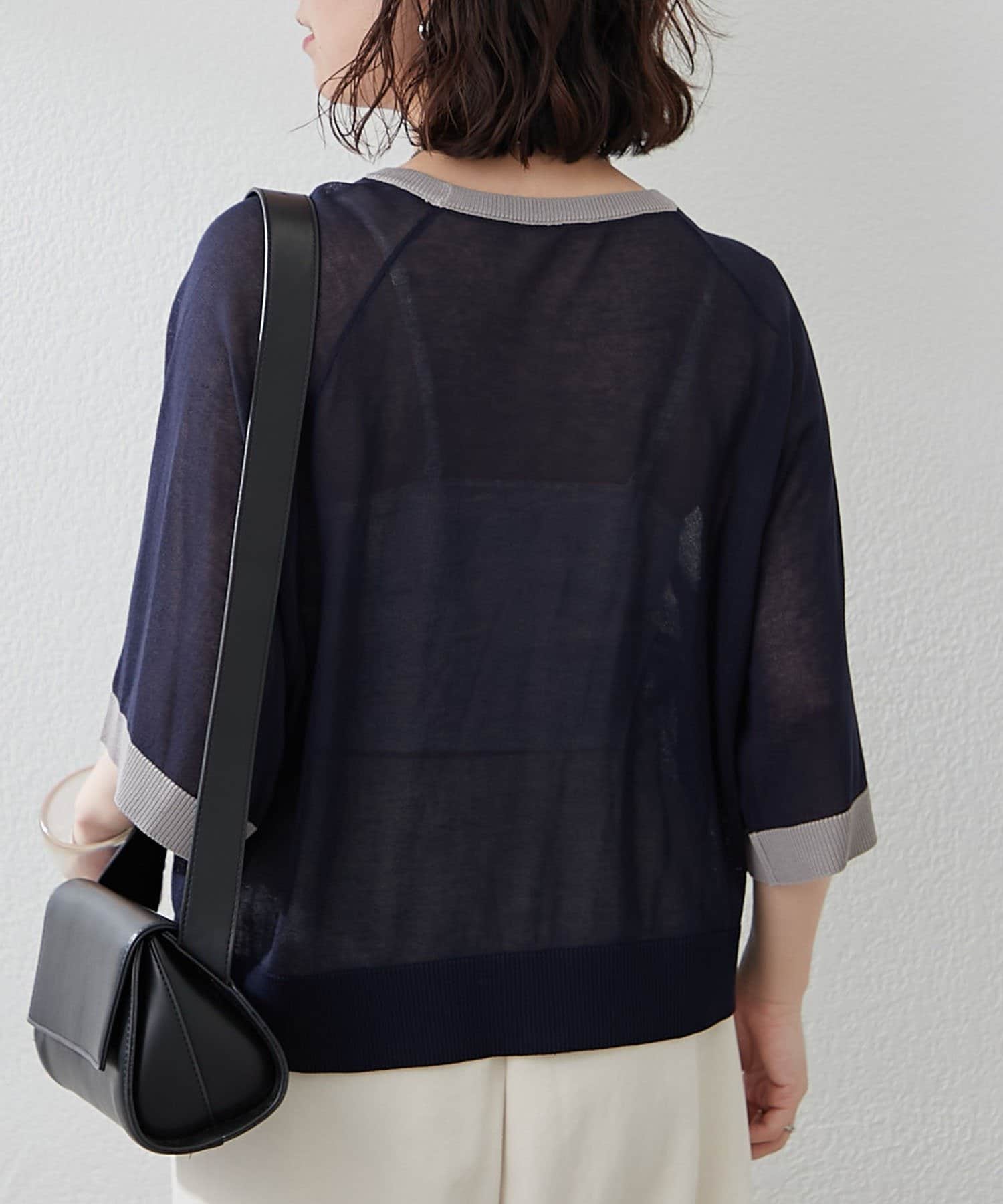 ・軽い着心地で透けすぎない程よいシアーのニットトップス。