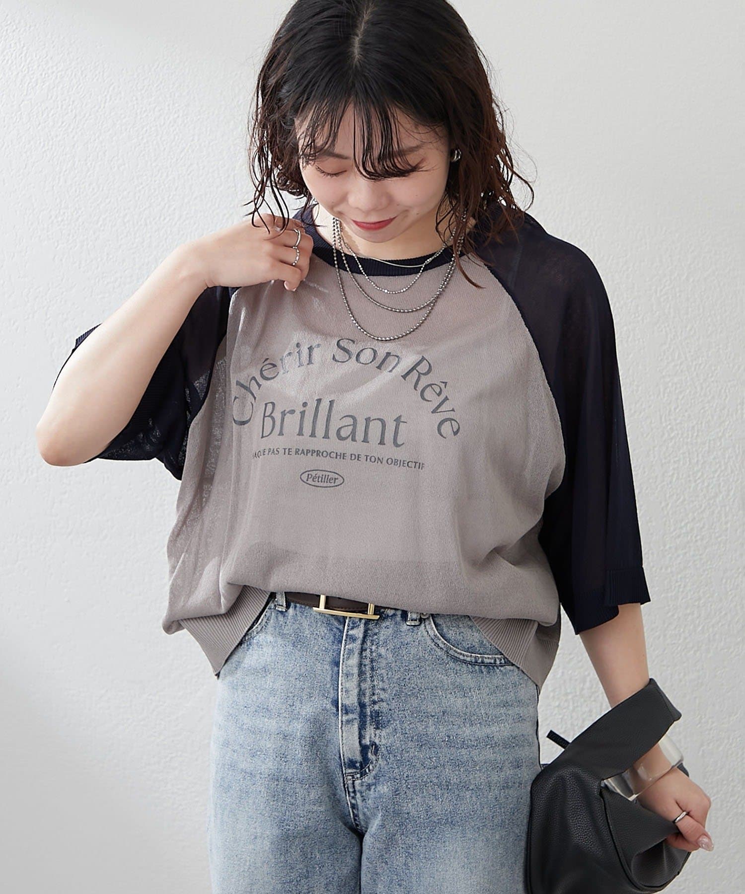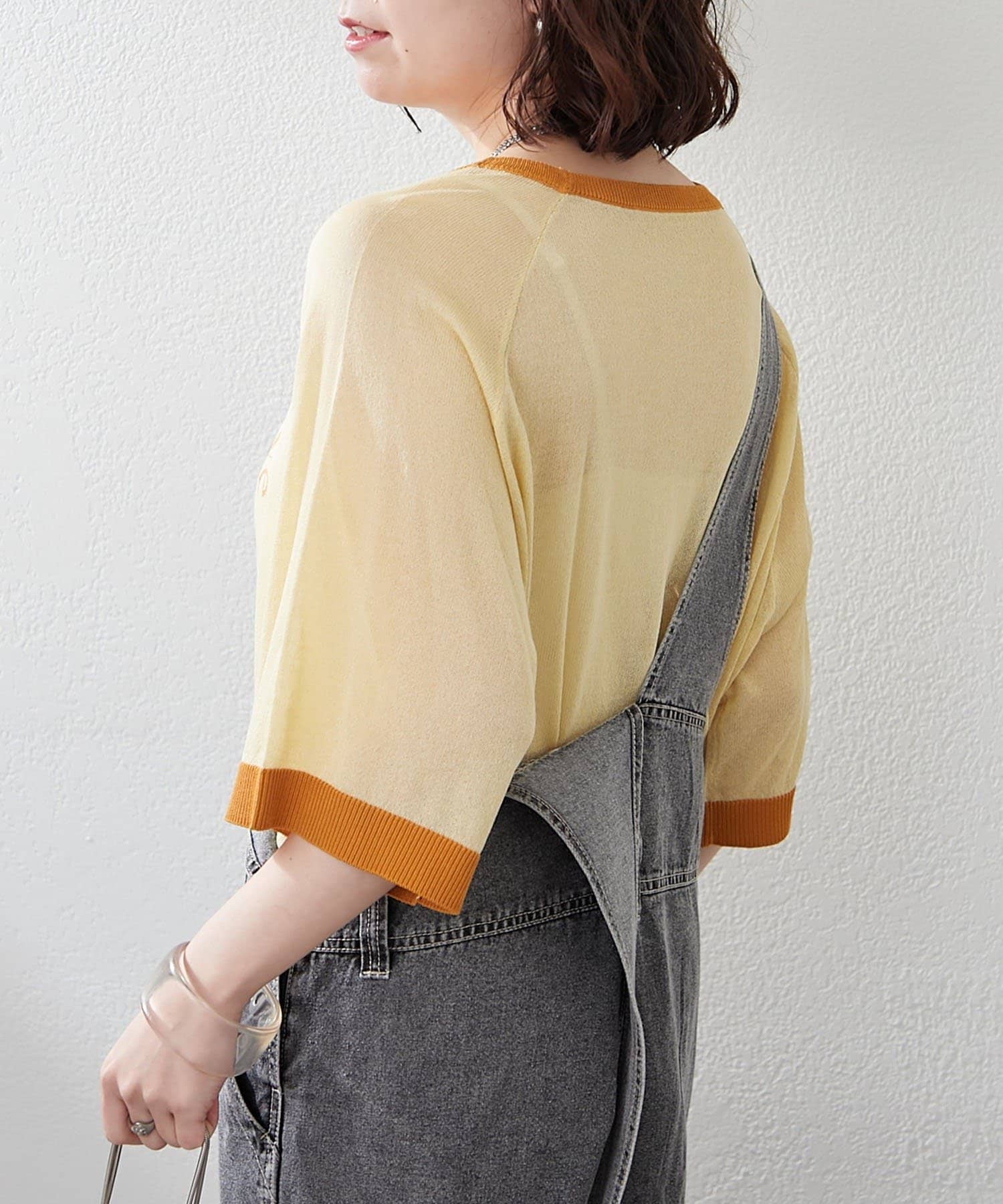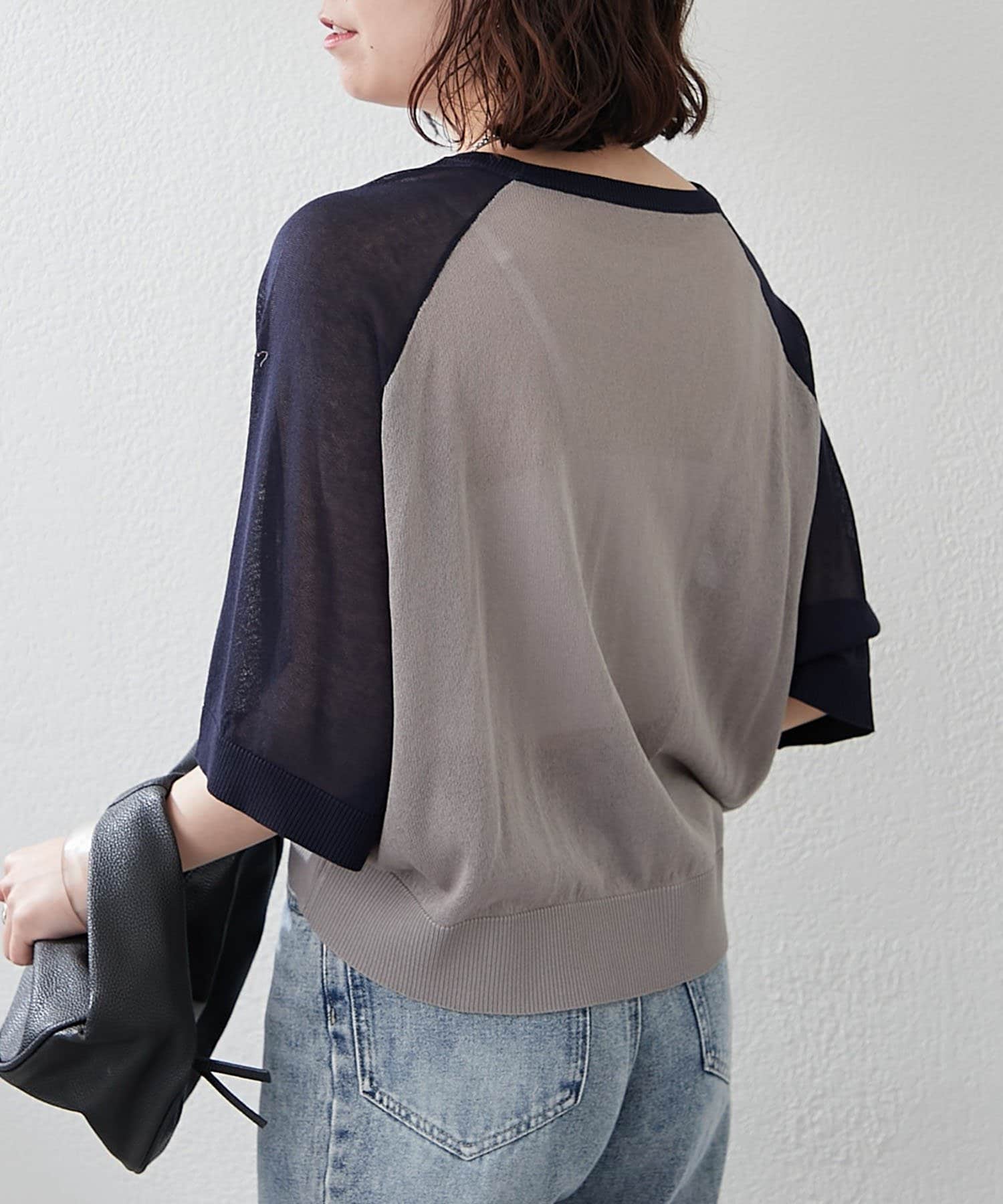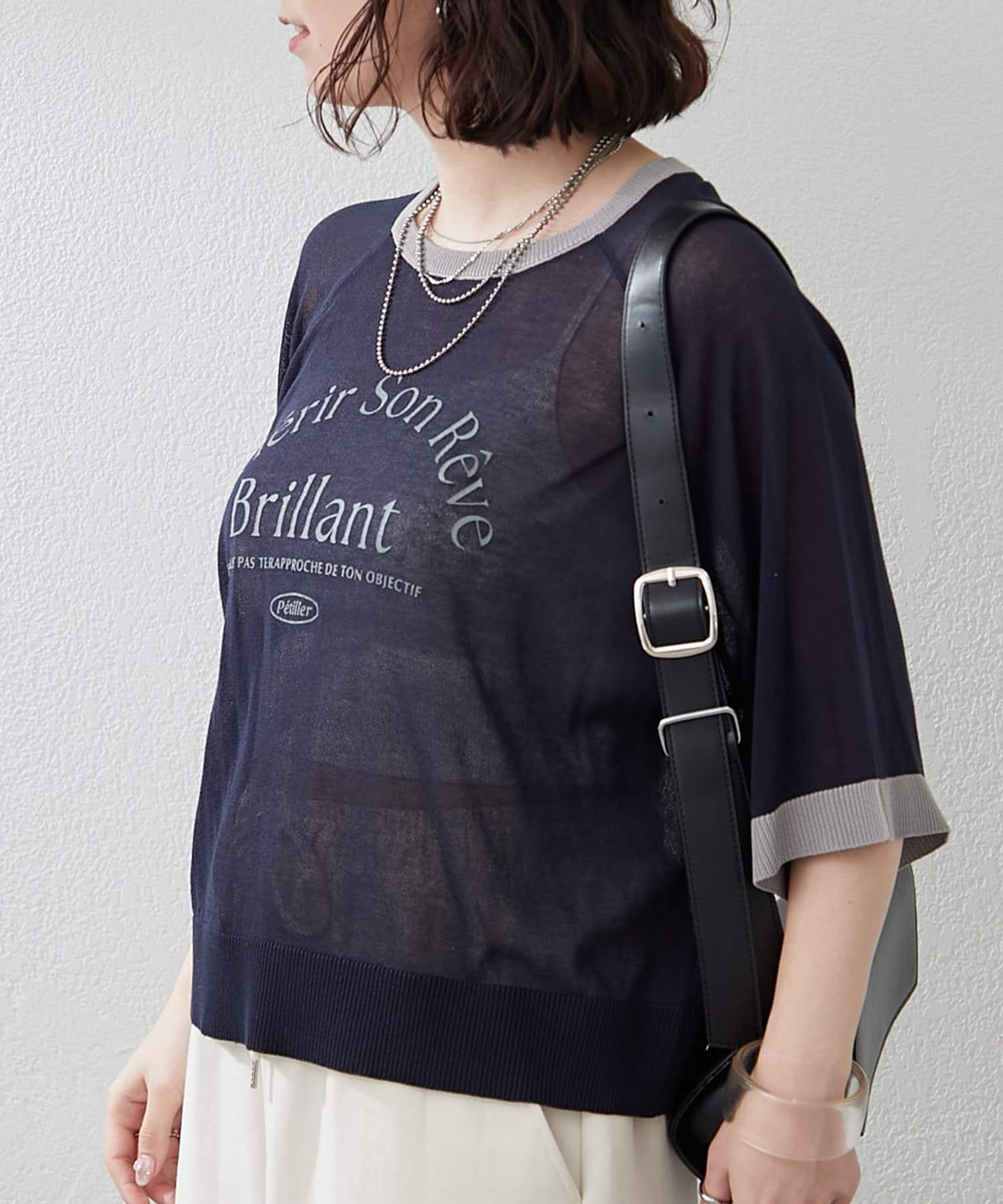 ・軽い着心地で透けすぎない程よいシアーのニットトップス。
