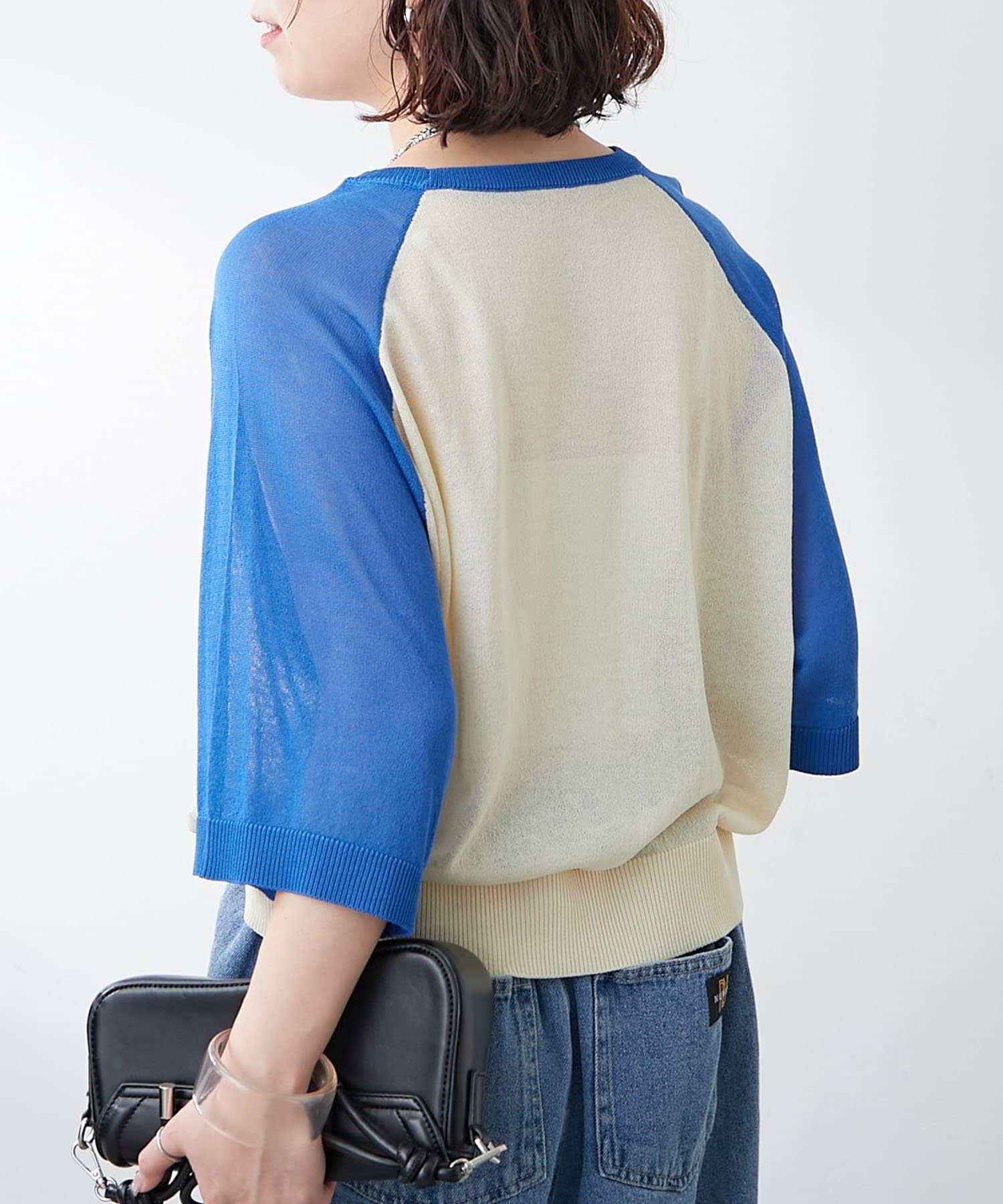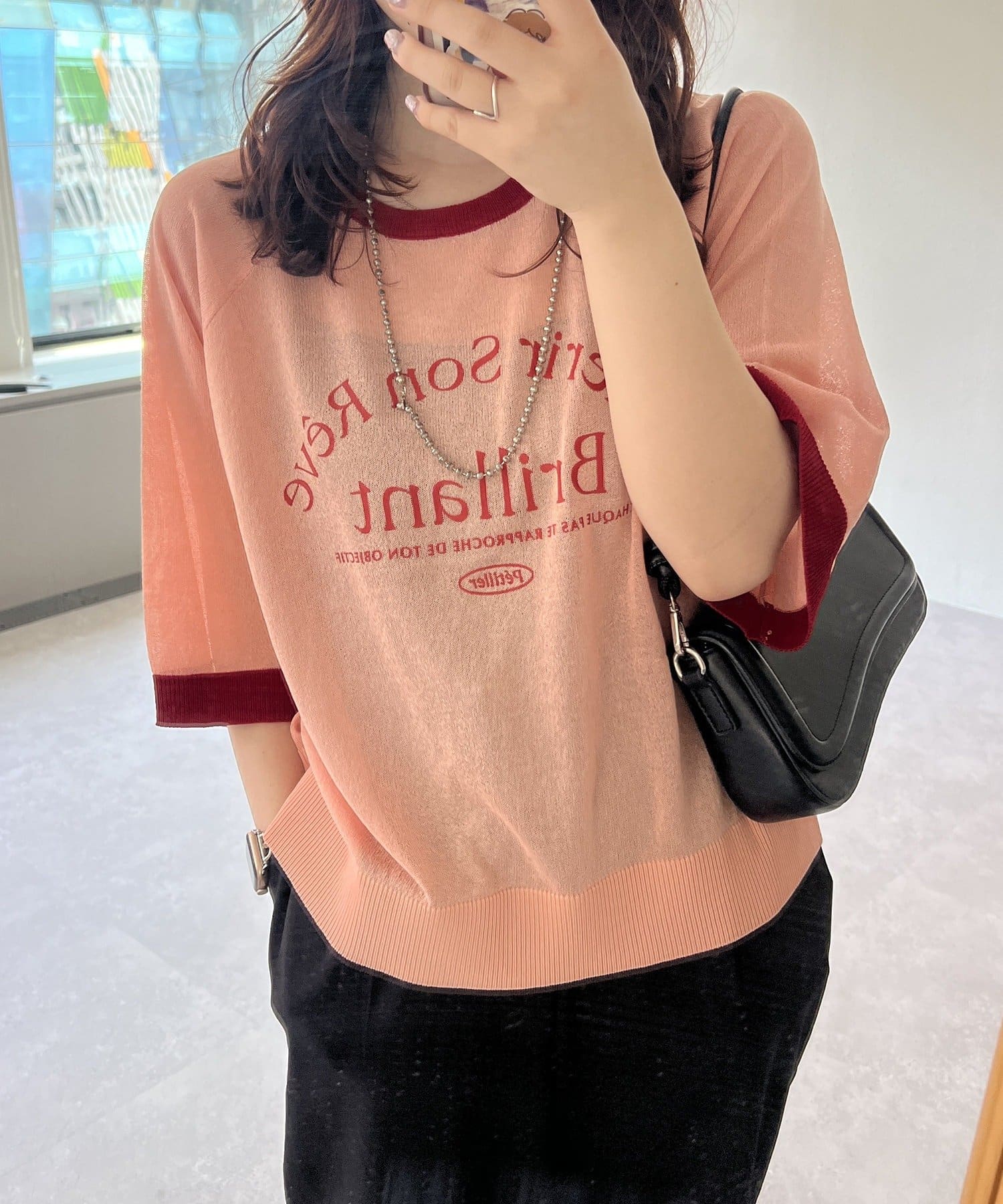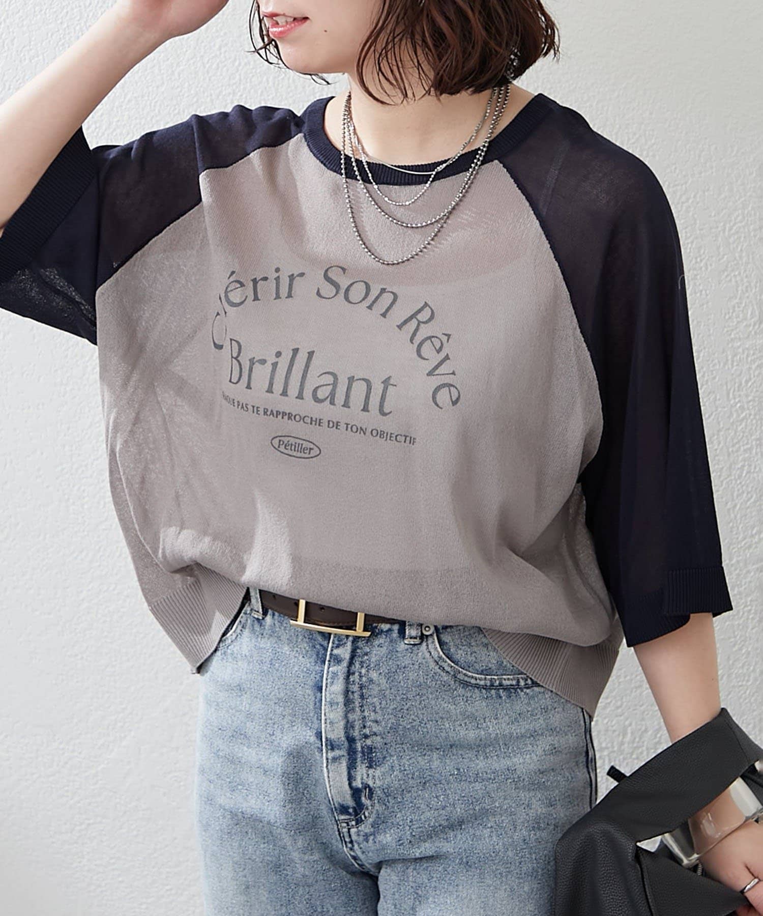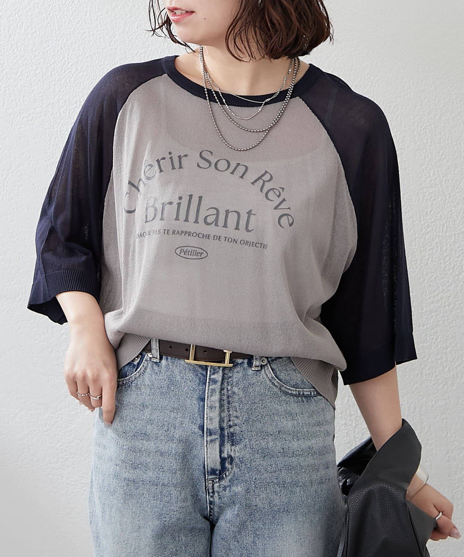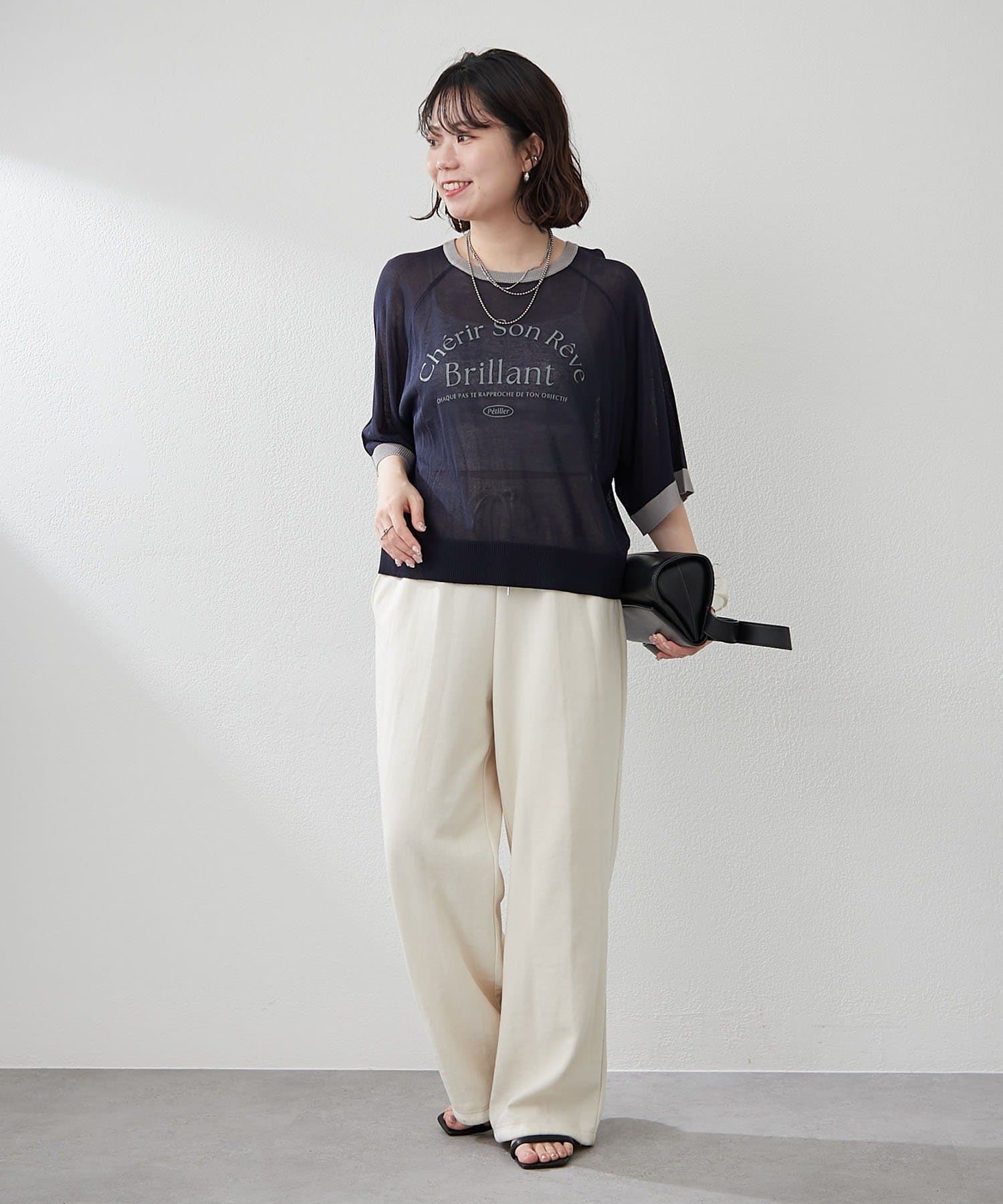 ・軽い着心地で透けすぎない程よいシアーのニットトップス。