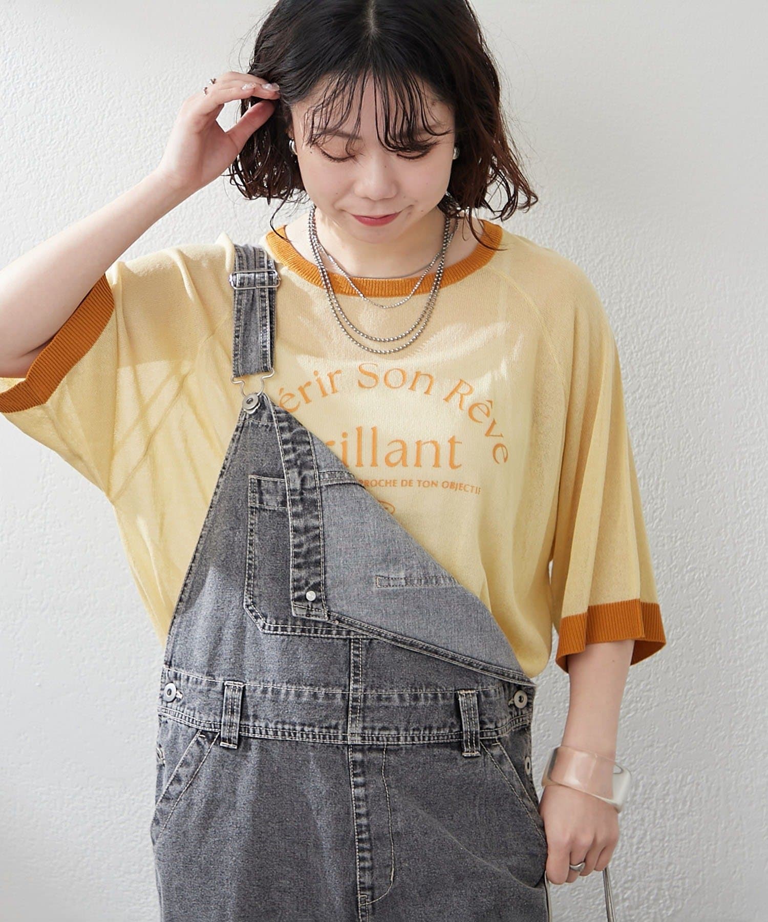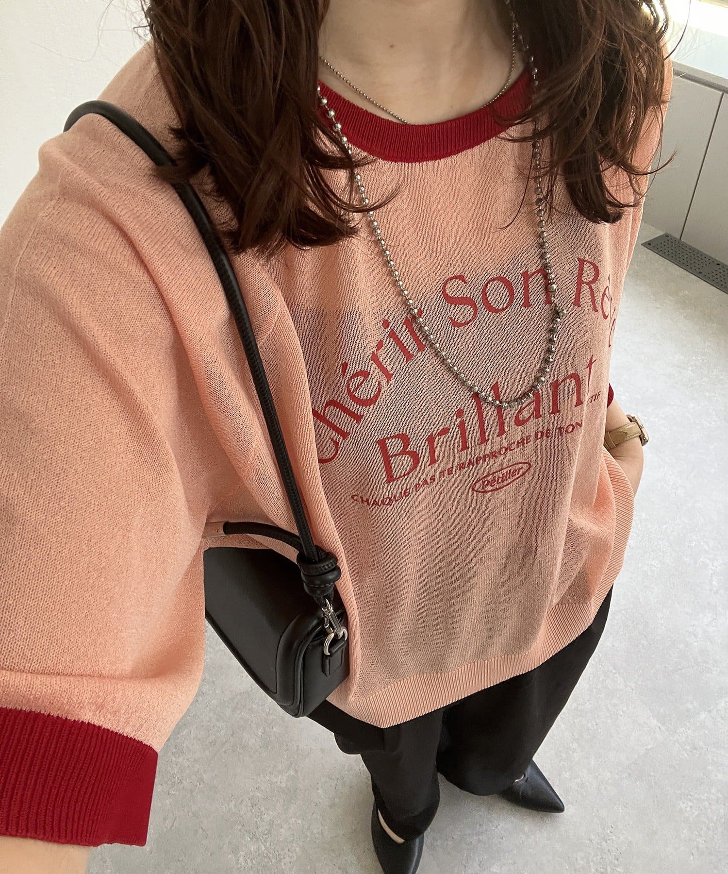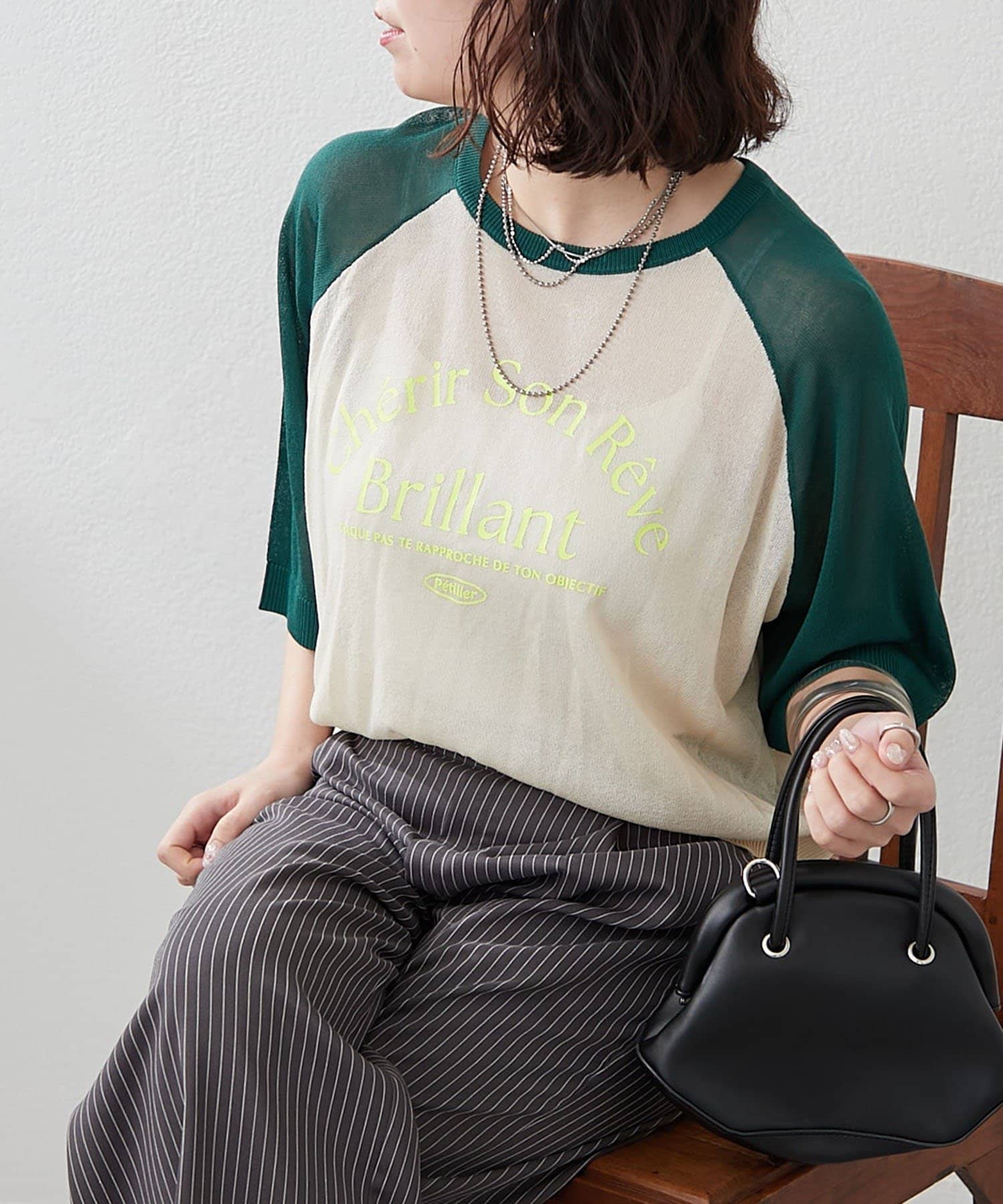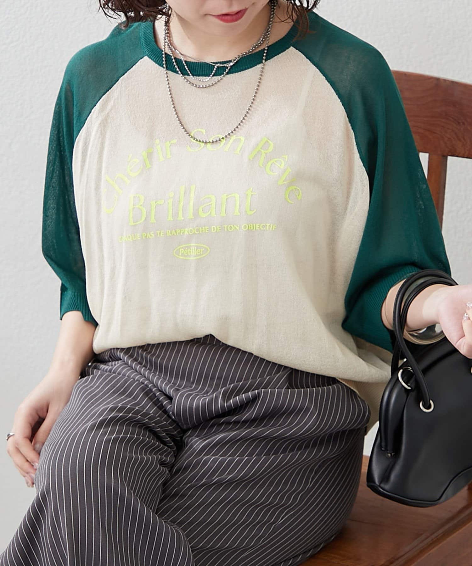 ・軽い着心地で透けすぎない程よいシアーのニットトップス。