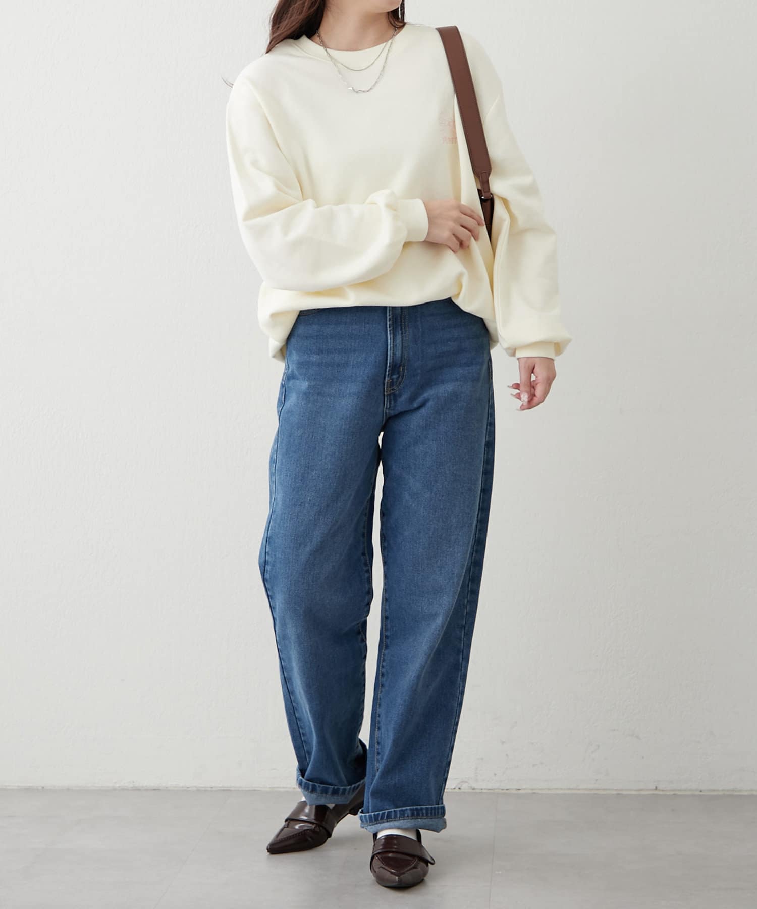 ・ワイドなデニムパンツを履いてゆるっとカジュアルなスタイリングも◎