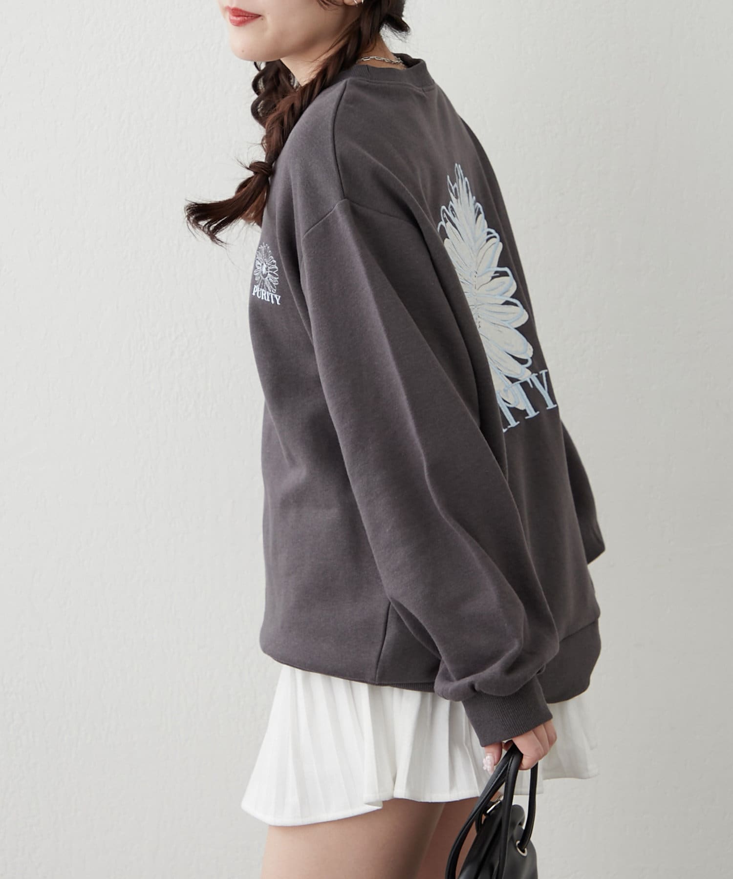 ・バックの大きなお花柄が可愛いスウェットトップス。