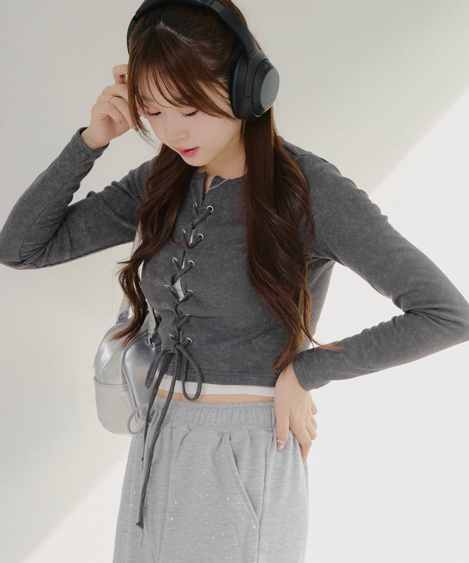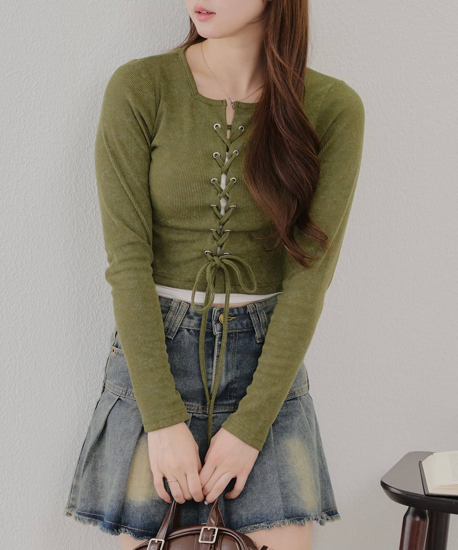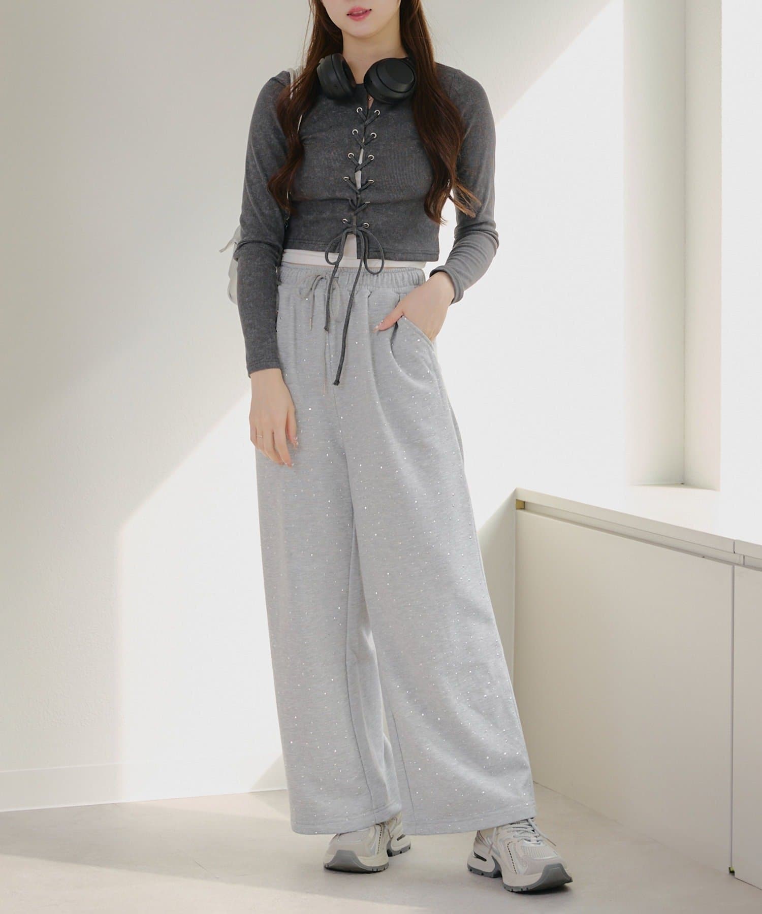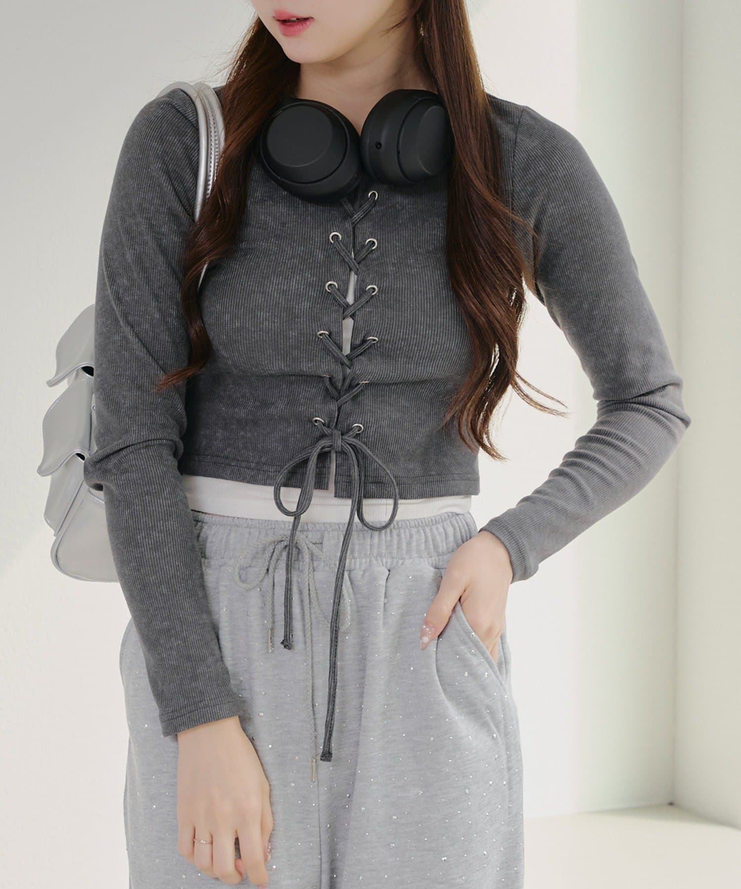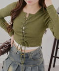 ・フロントのレースアップデザインがトレンド感のあるテレコトップス