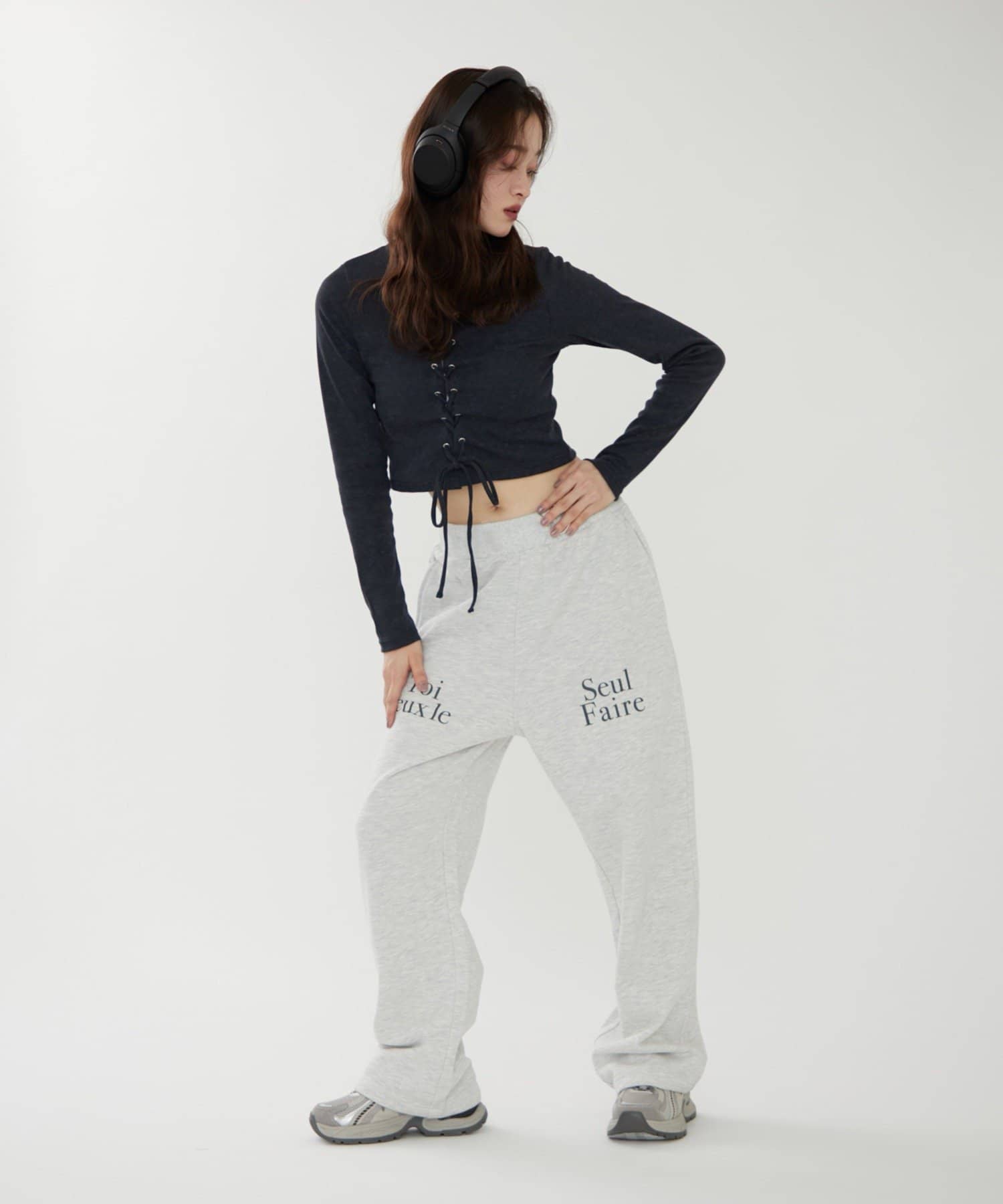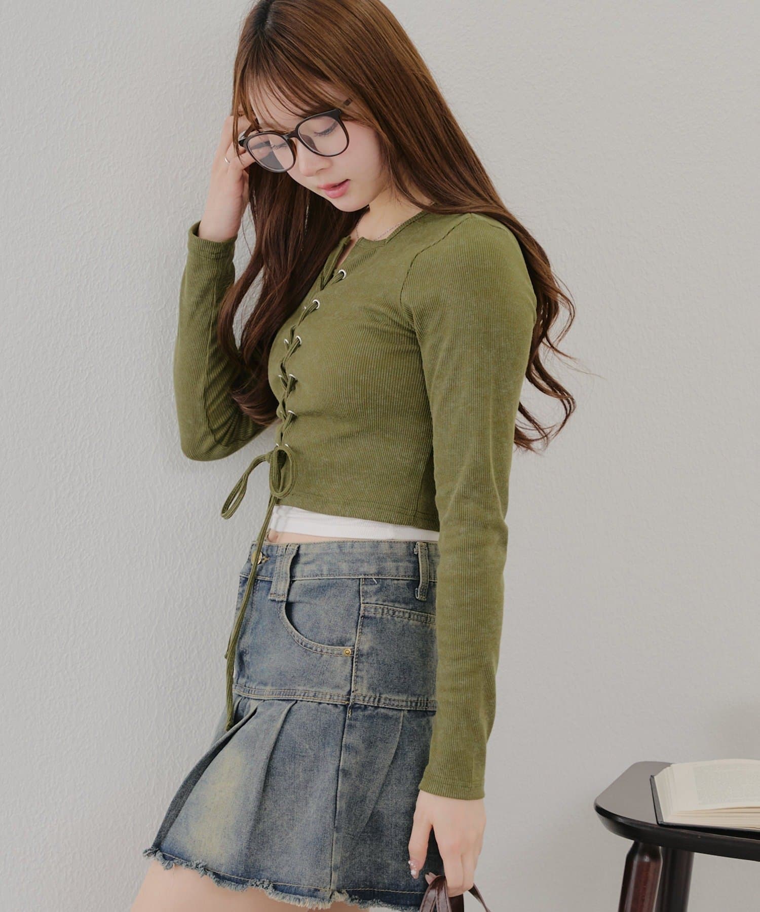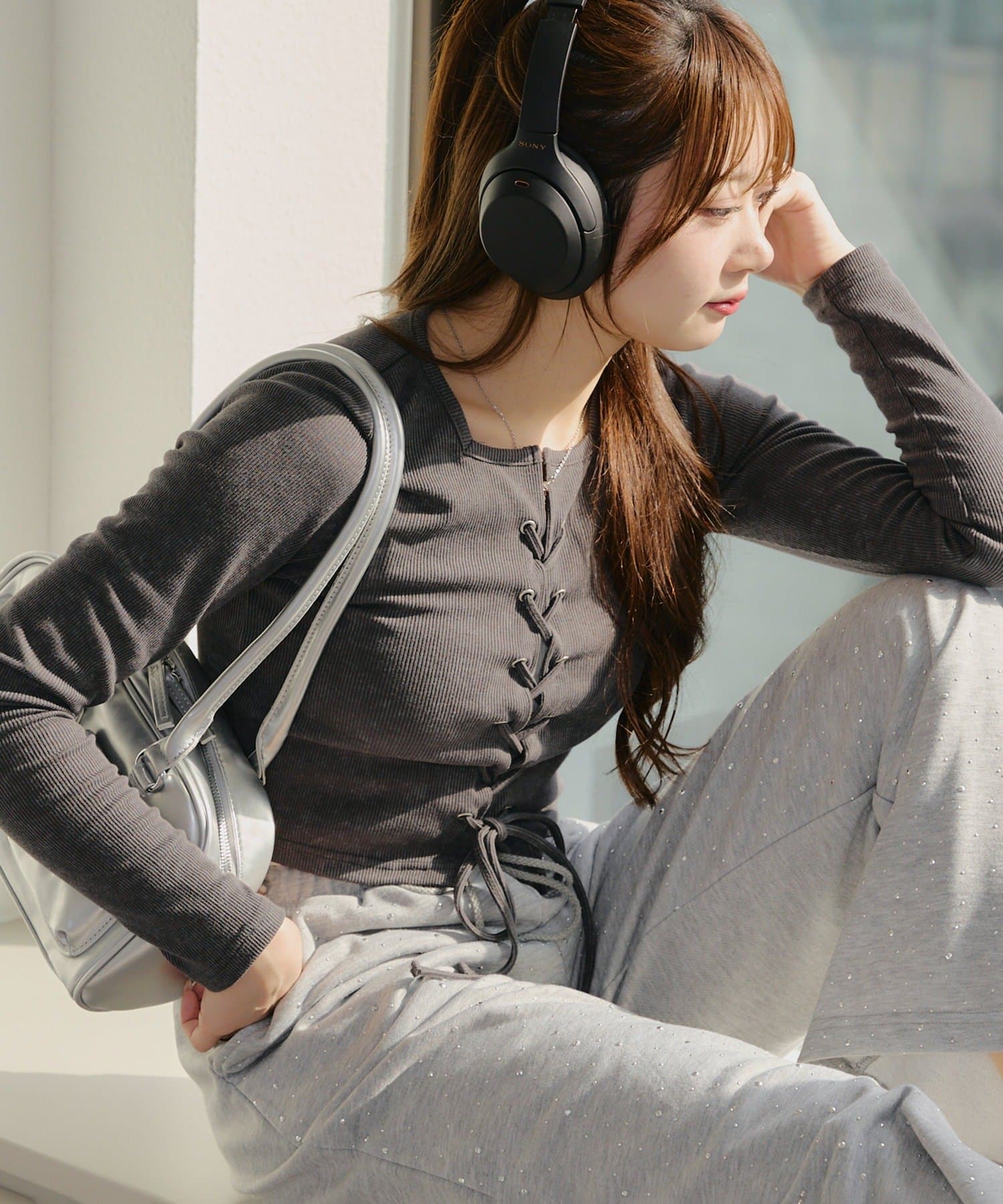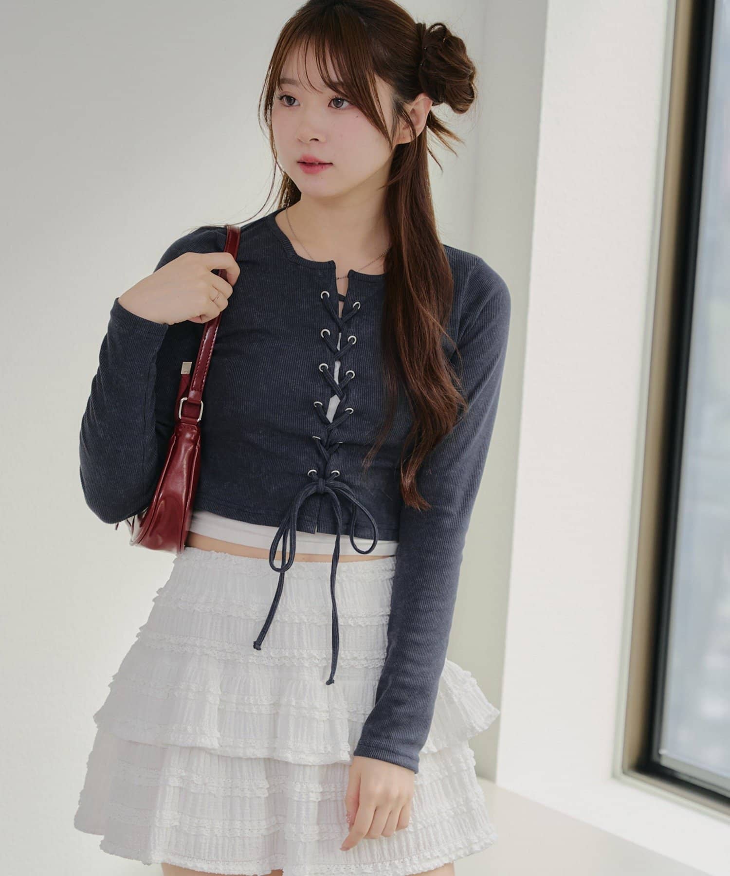 ・フロントのレースアップデザインがトレンド感のあるテレコトップス