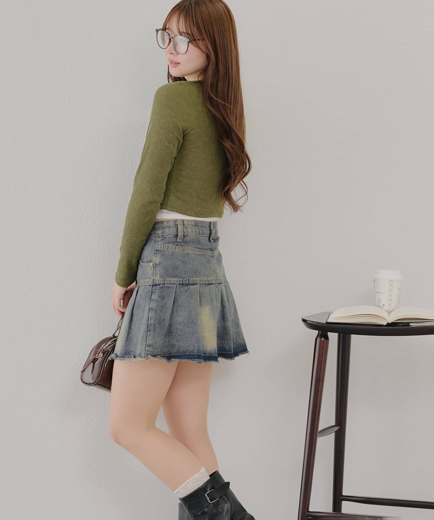・ハイウエストのデニムパンツで足を長く見せるスタイリングも◎