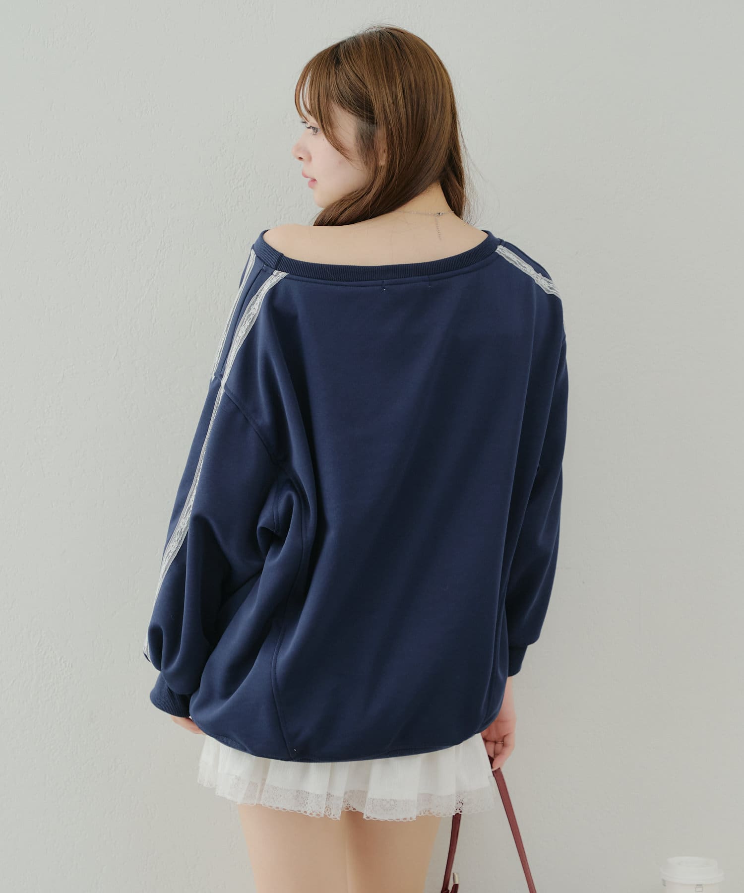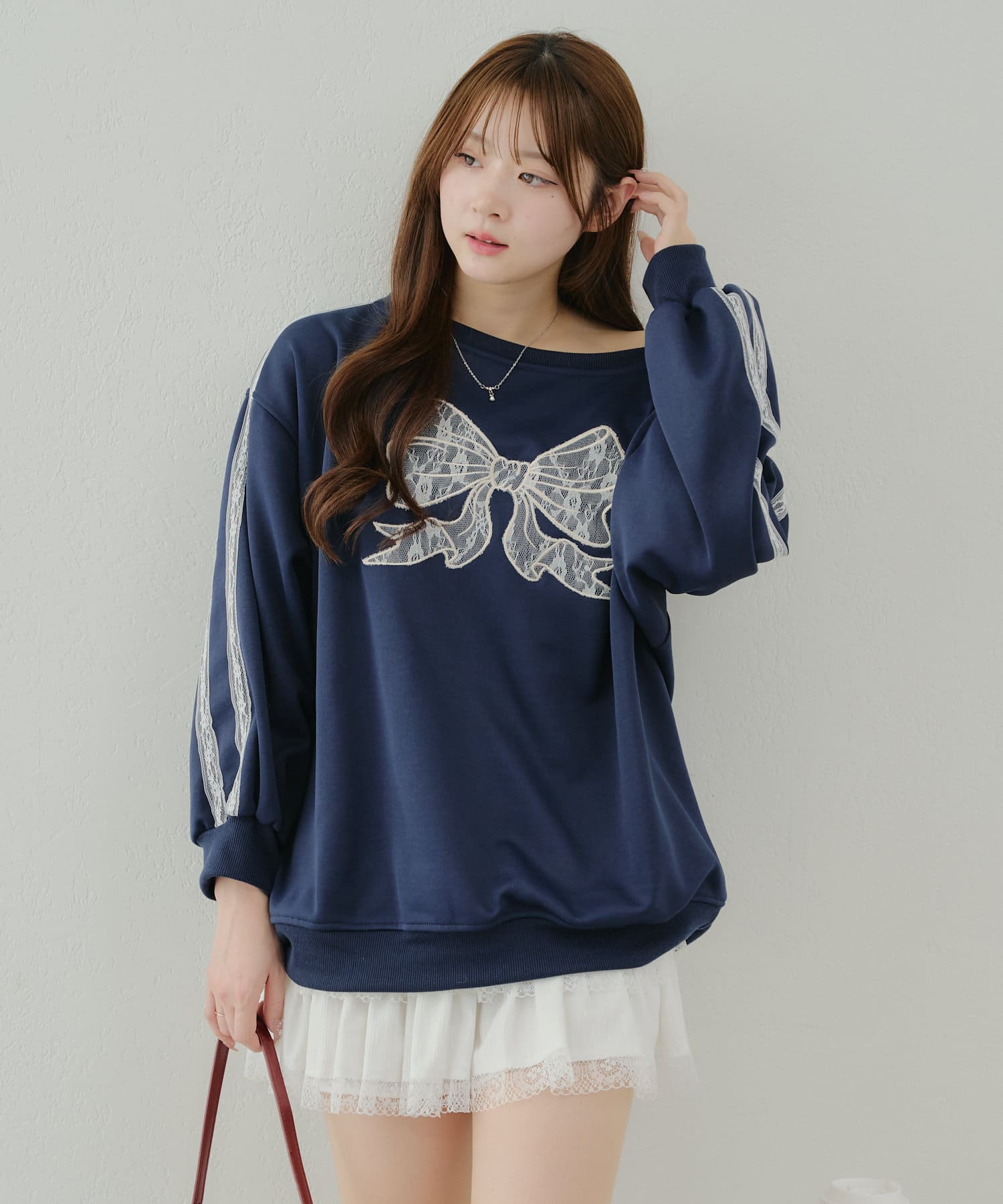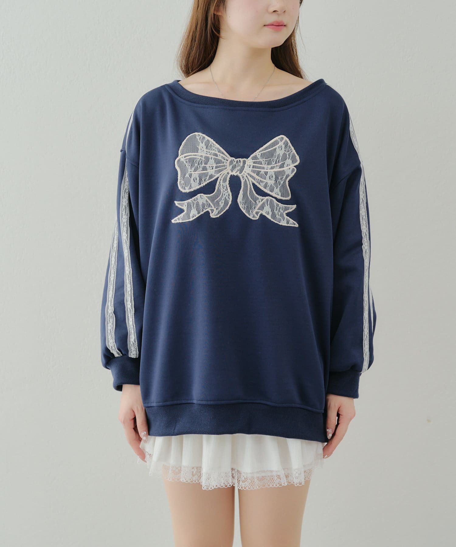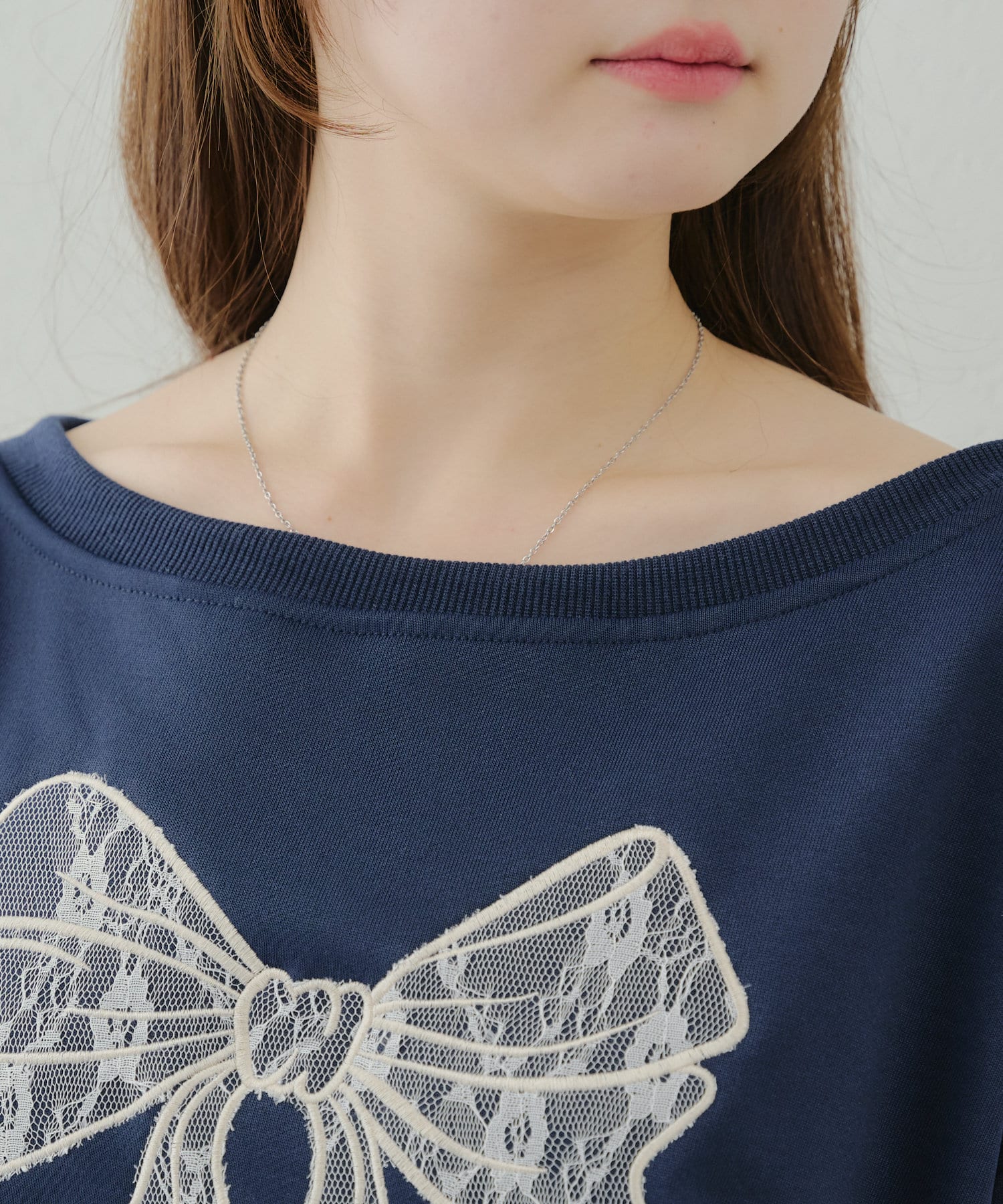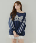 【春の新作】【OUTLET限定】レースリボンオフショル風プルオーバー