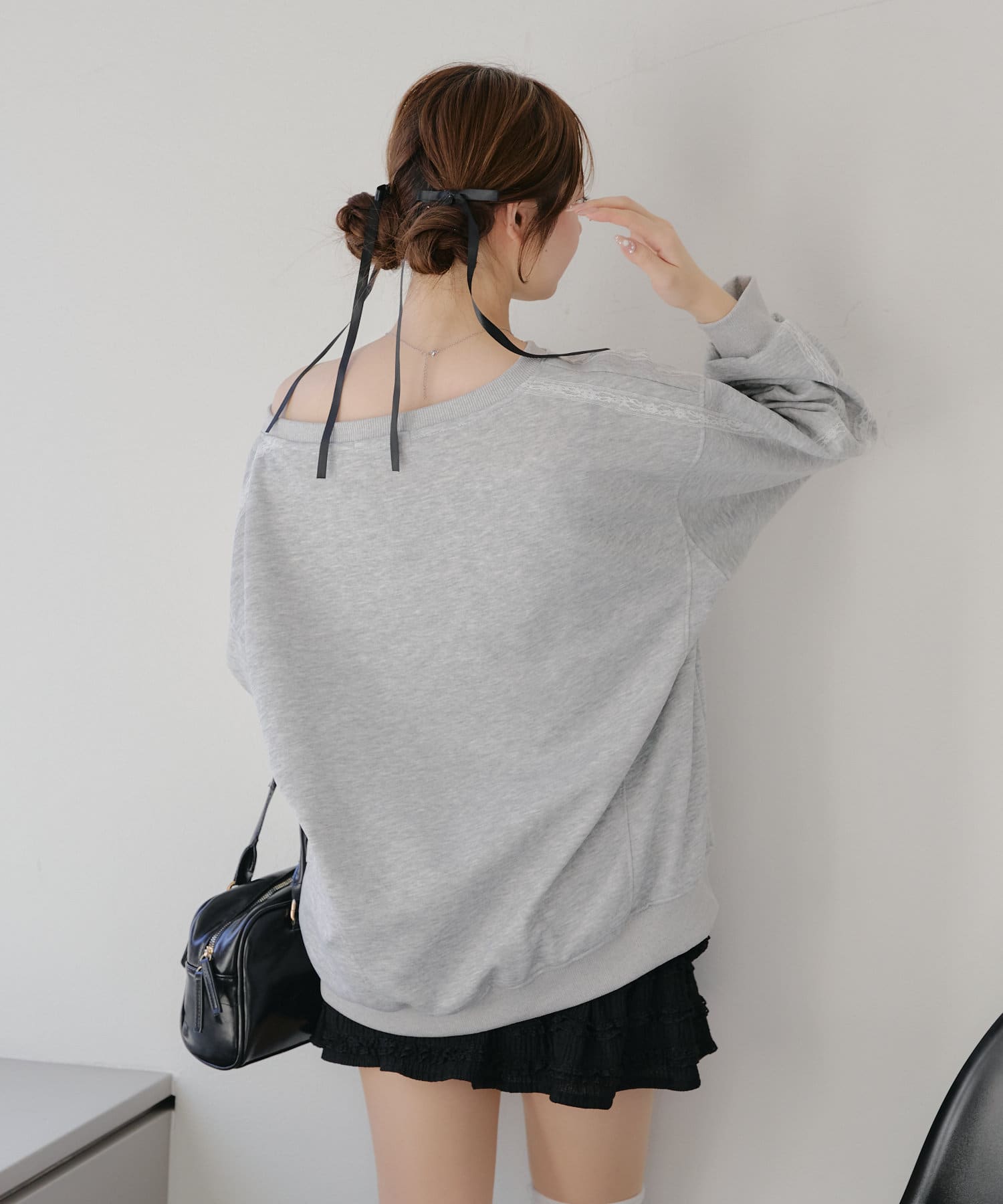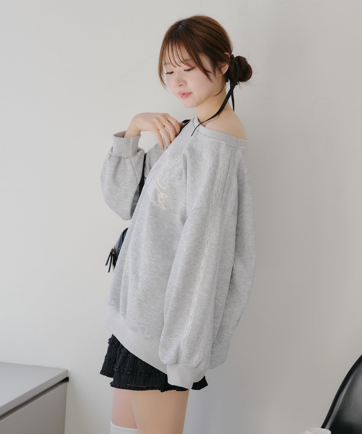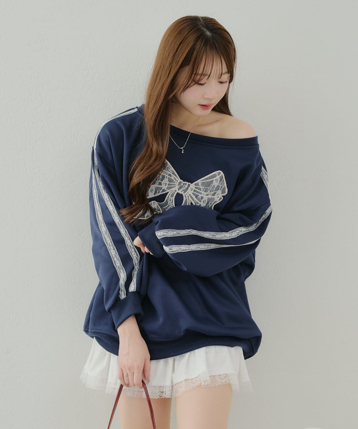 【春の新作】【OUTLET限定】レースリボンオフショル風プルオーバー