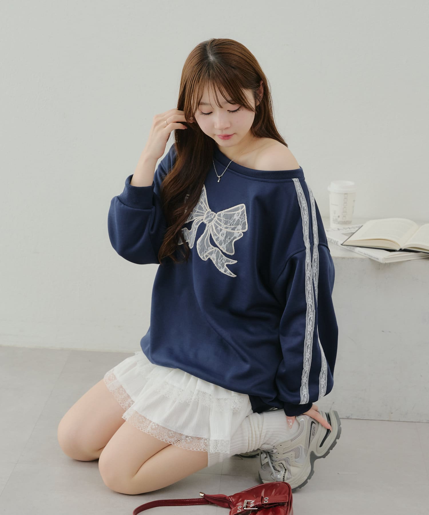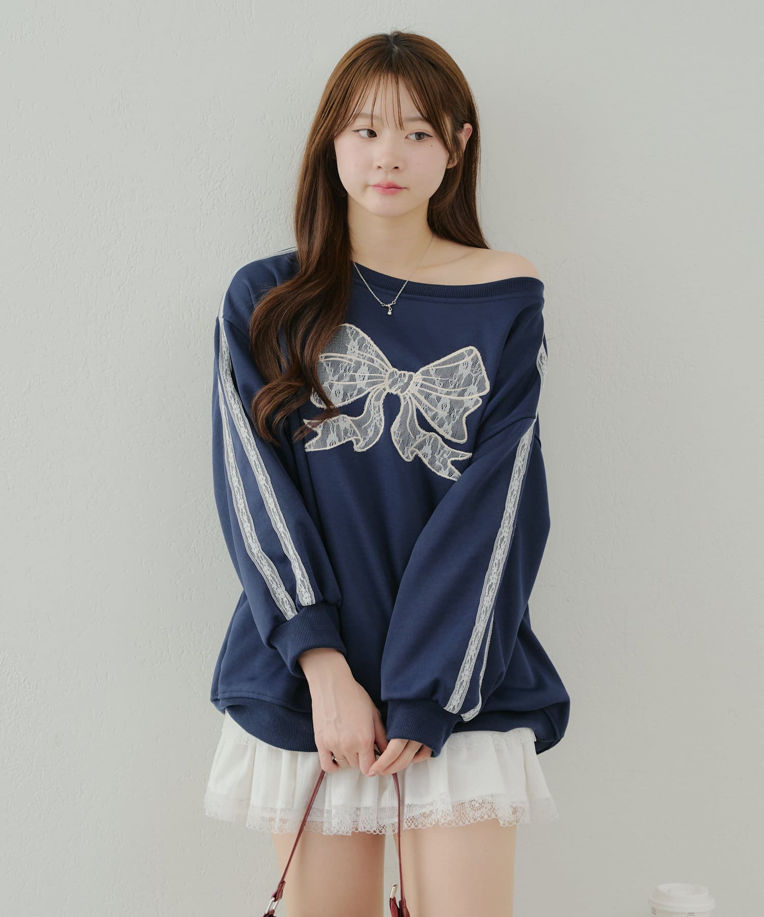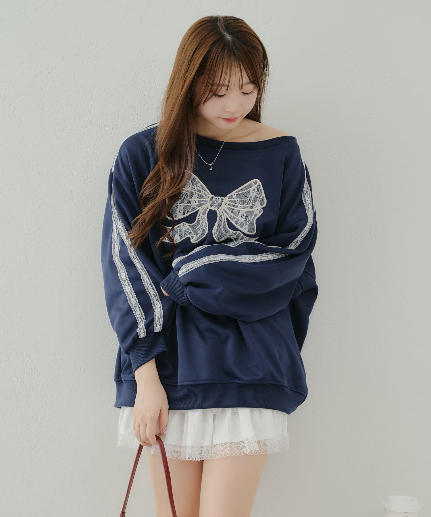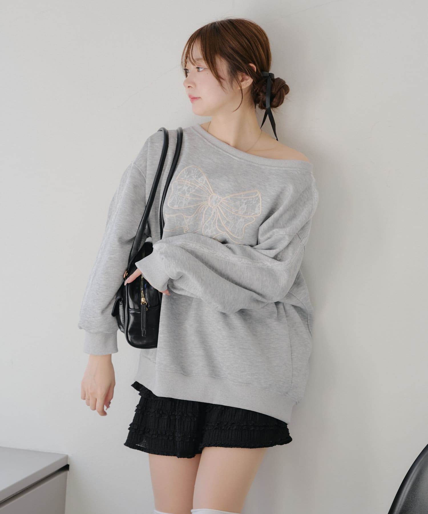 【春の新作】【OUTLET限定】レースリボンオフショル風プルオーバー