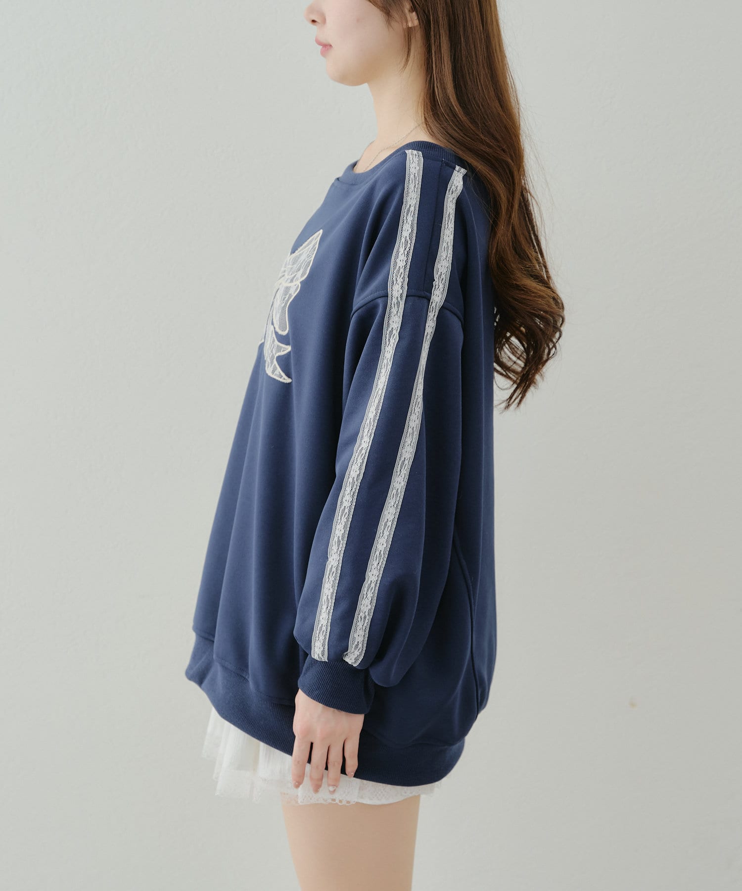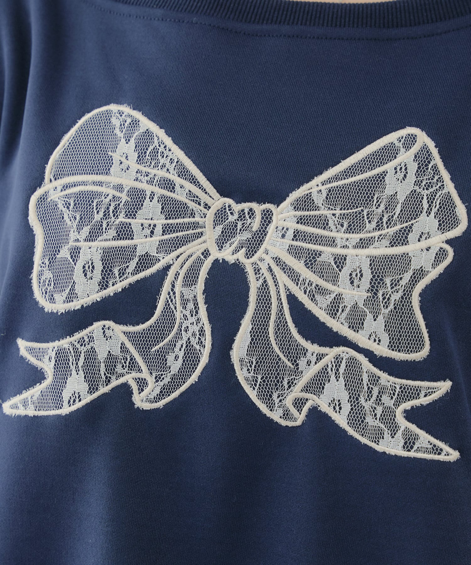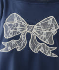 ・胸元のリボンと袖ラインがレースデザインになったトップス