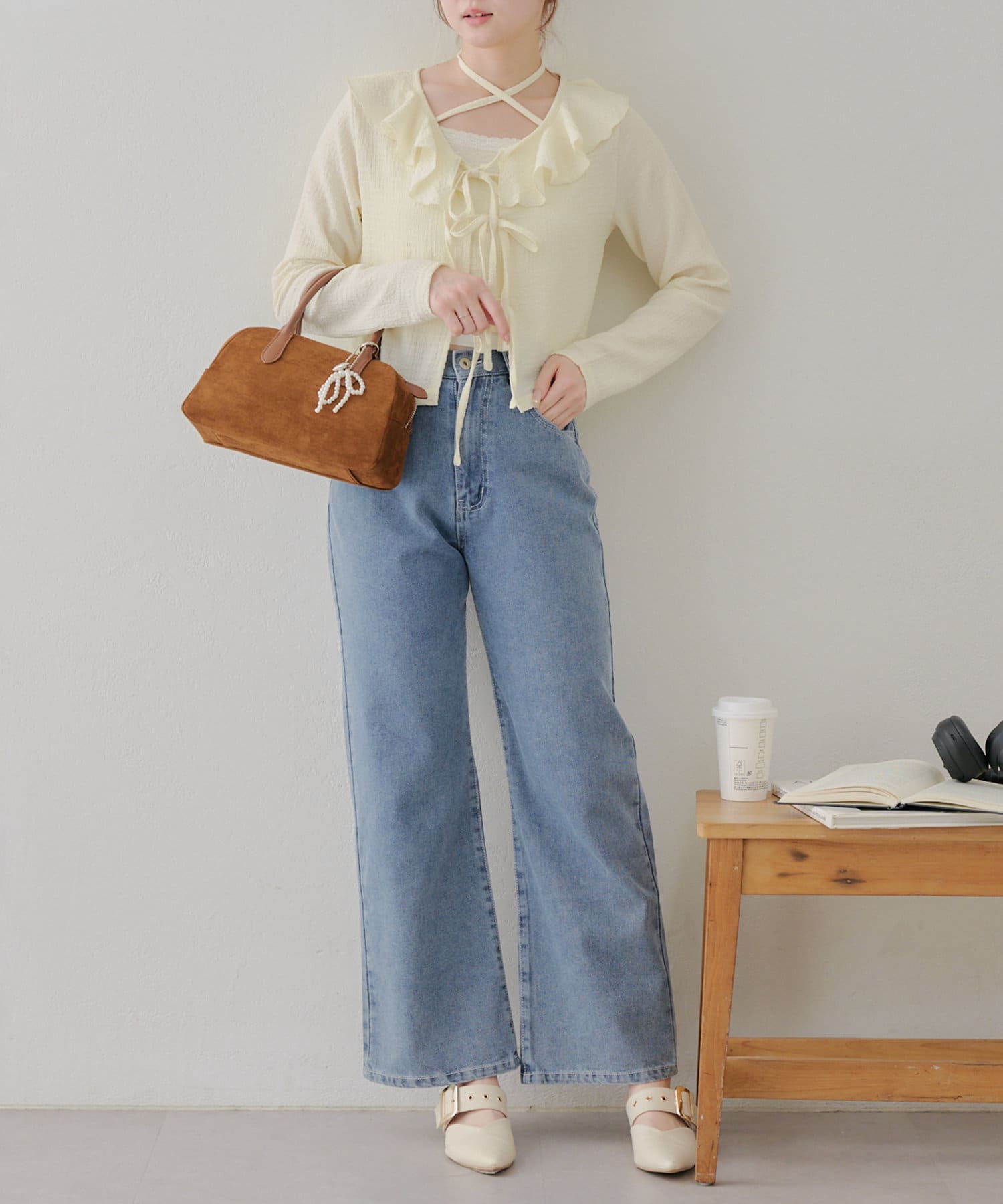 ・デニムパンツでカジュアルに、ミニボトム合わせでガーリーに、幅広いテイストに対応します。