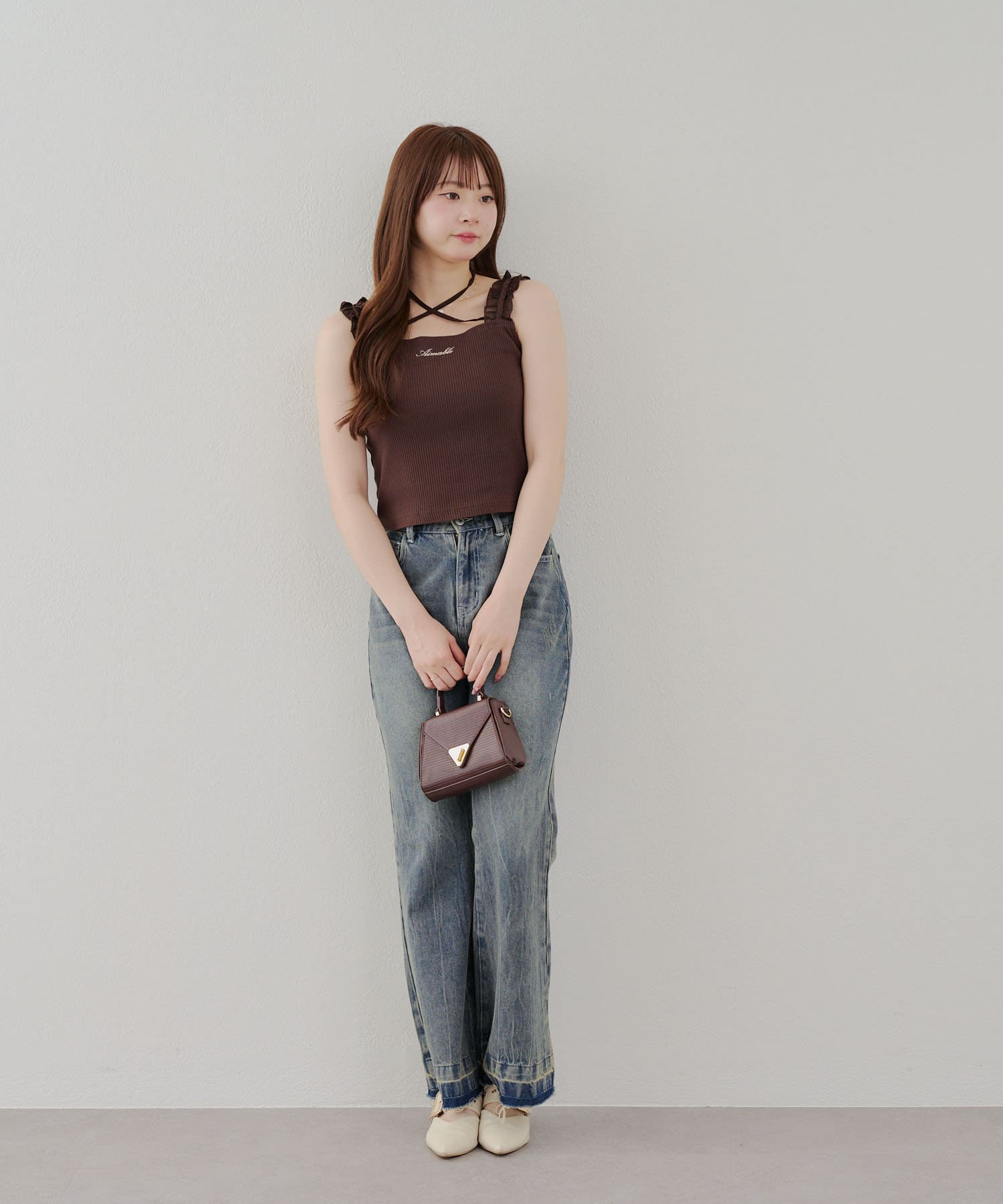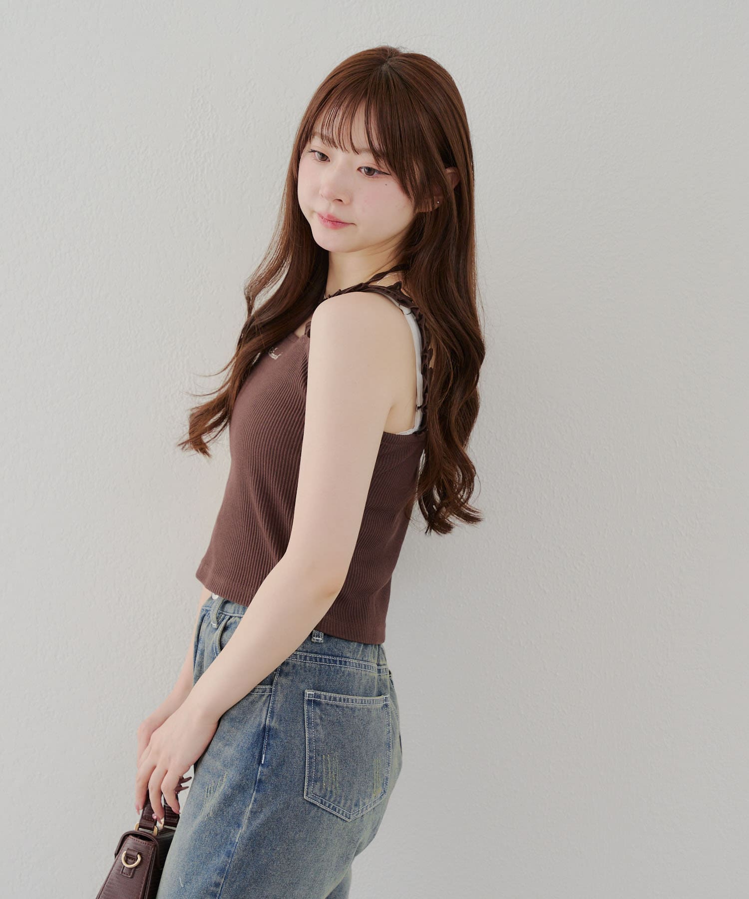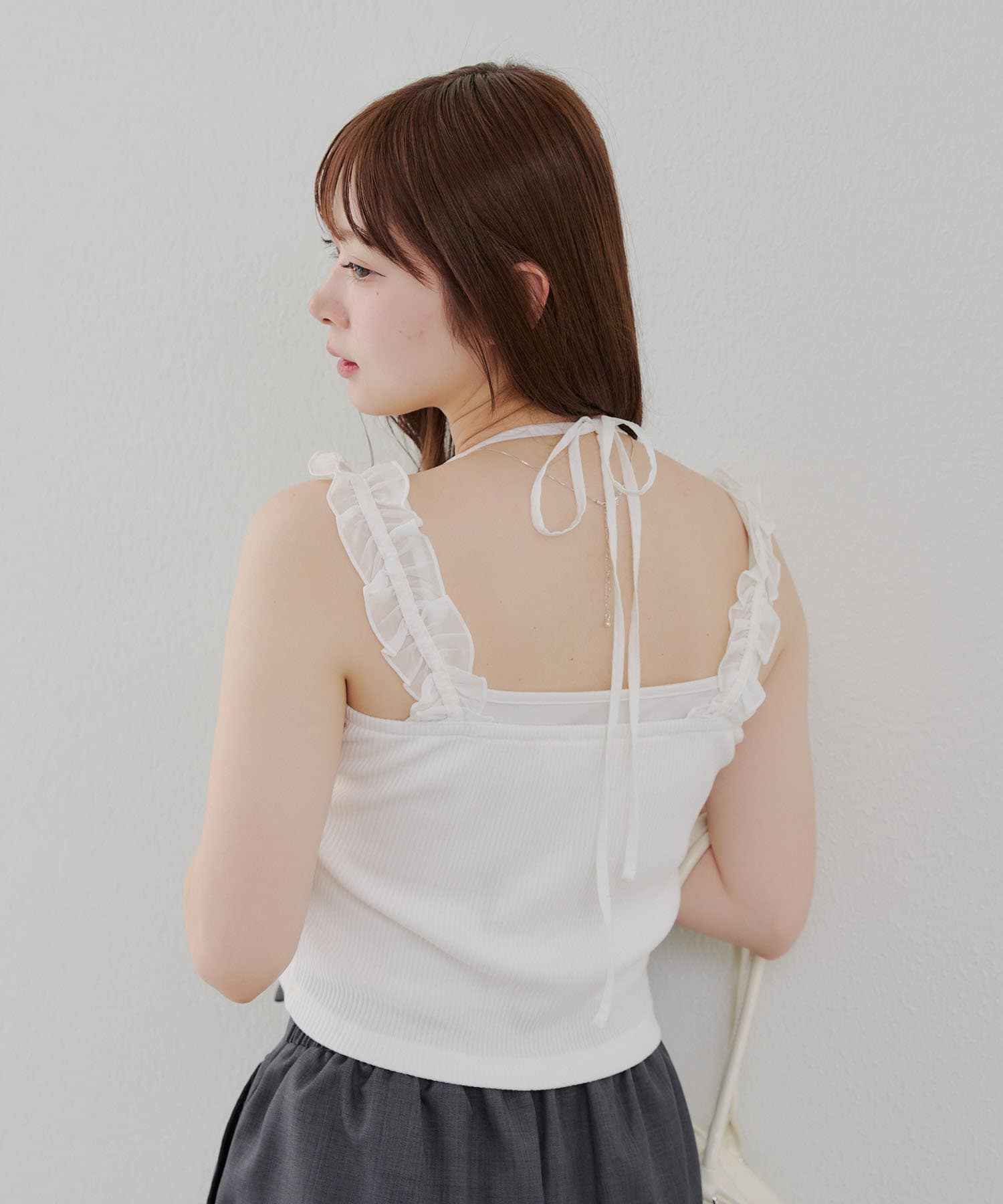 肩フリルホルターキャミ