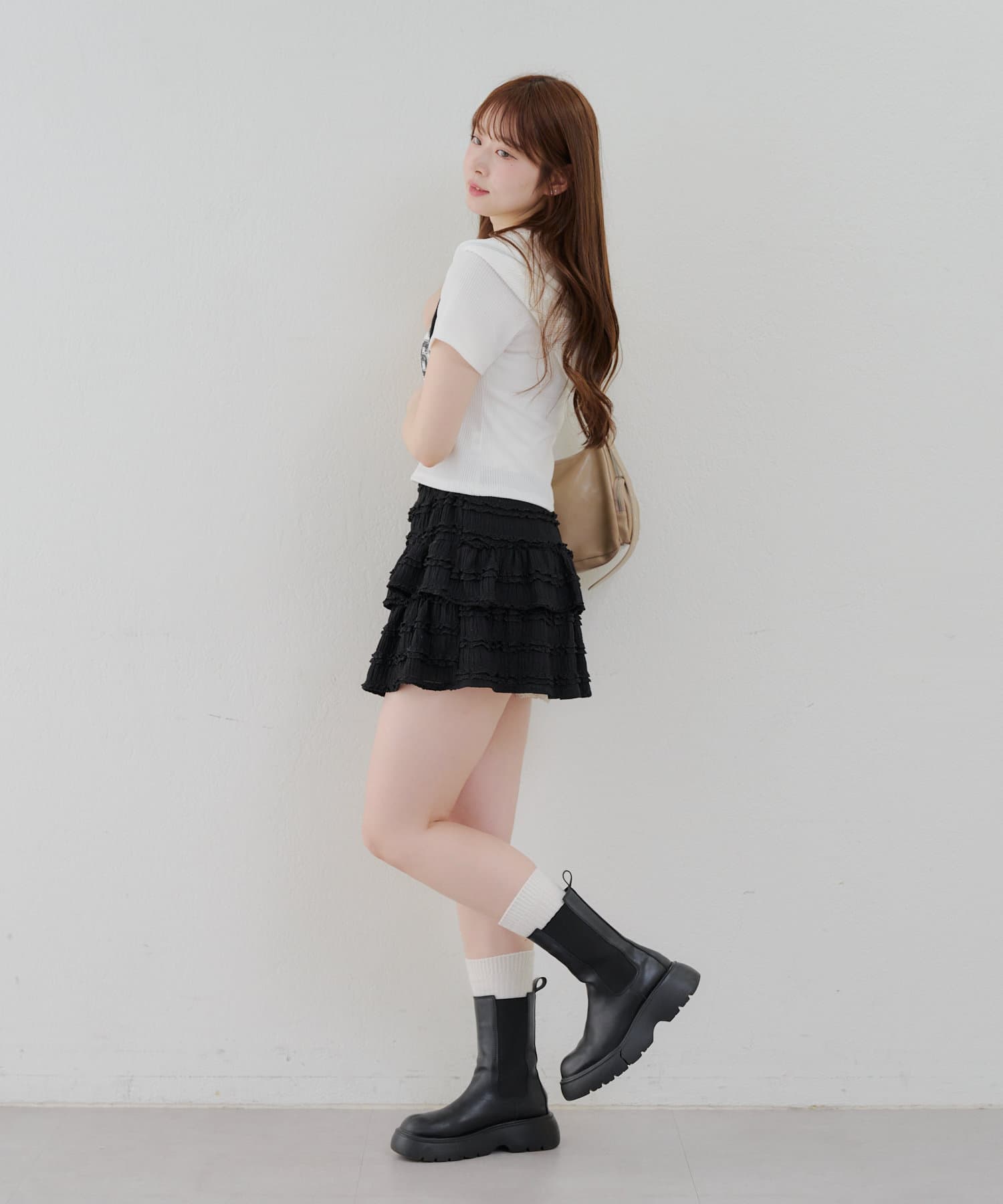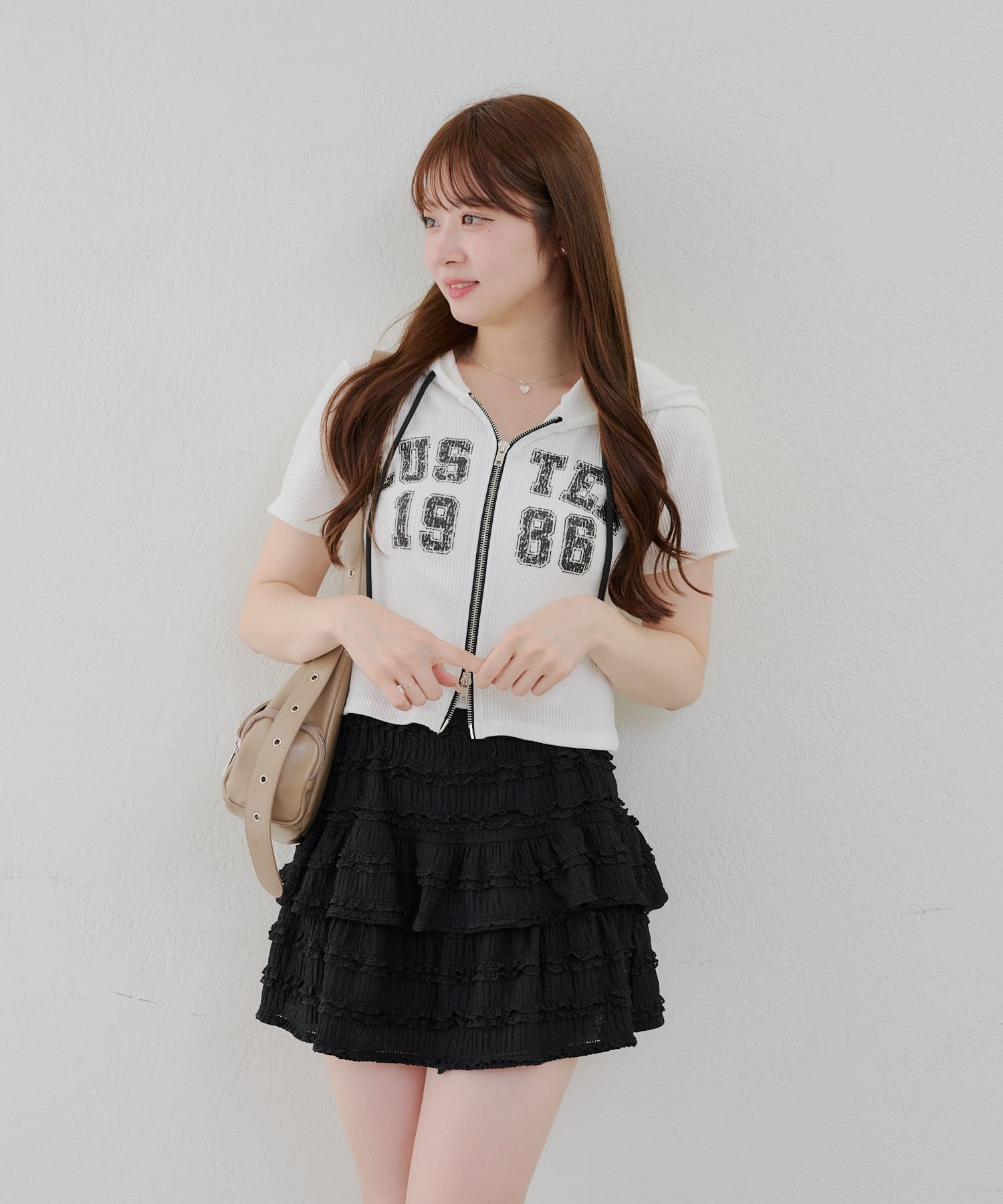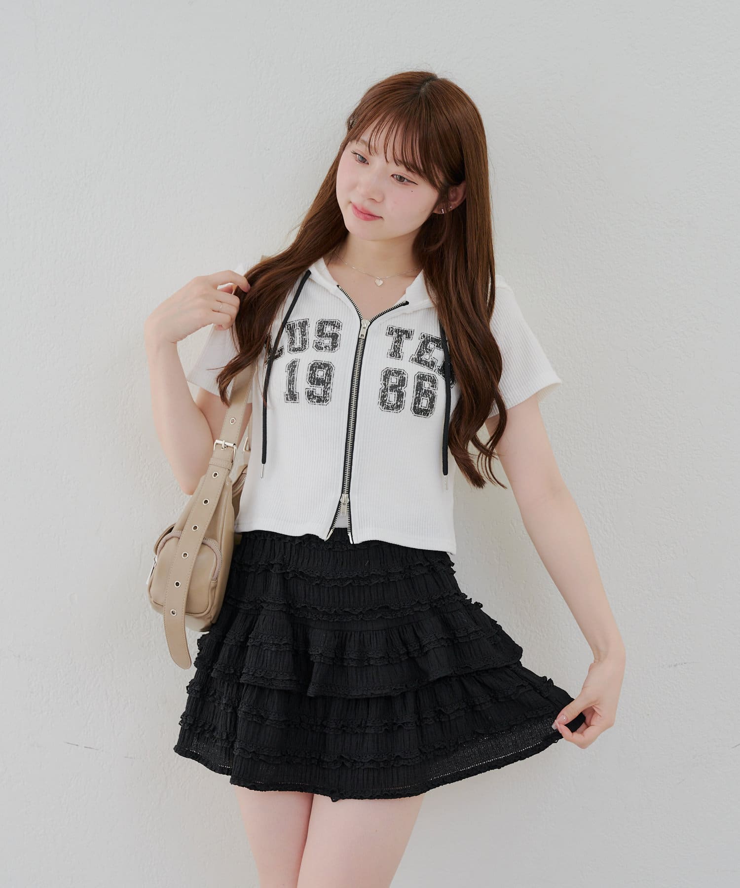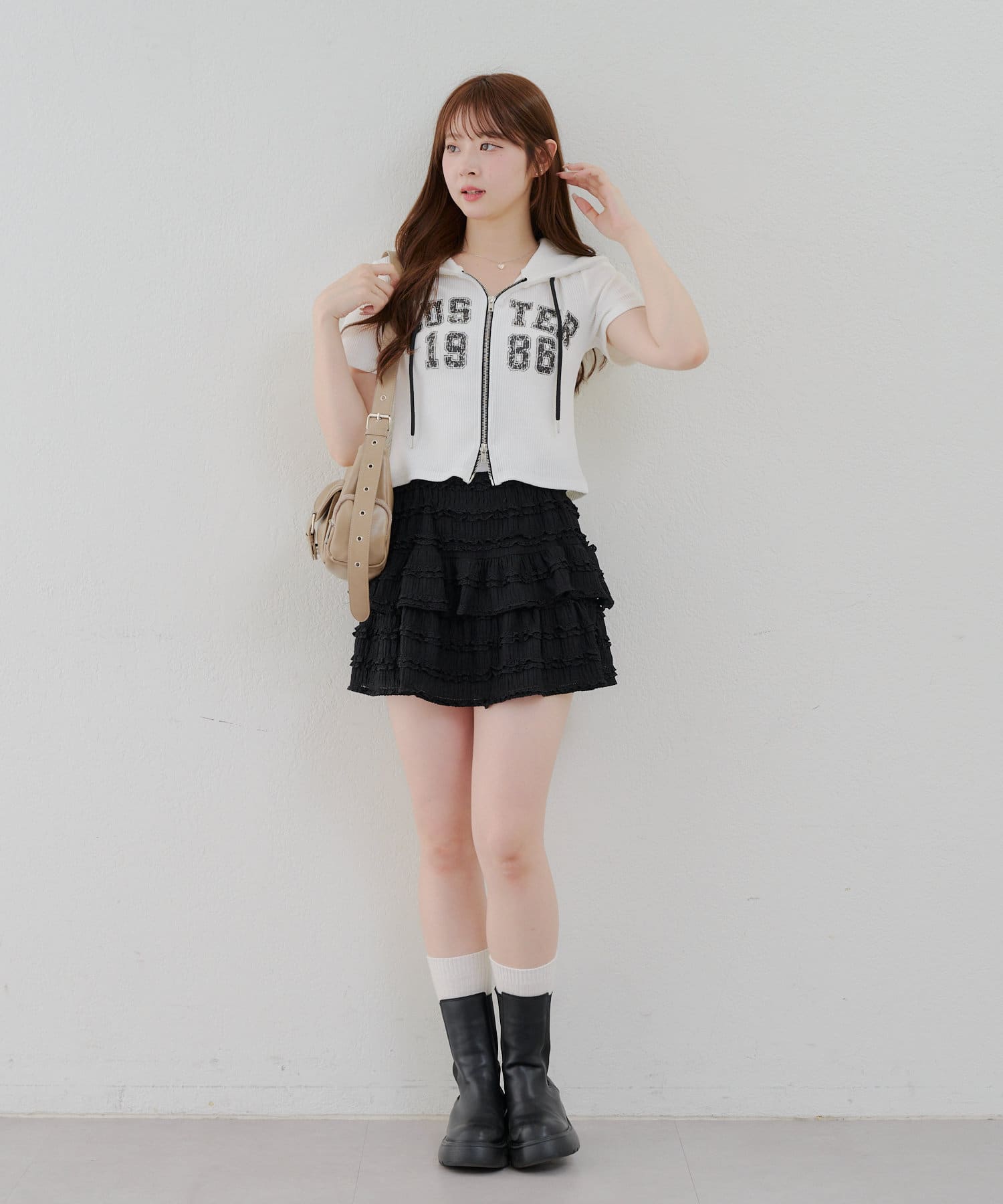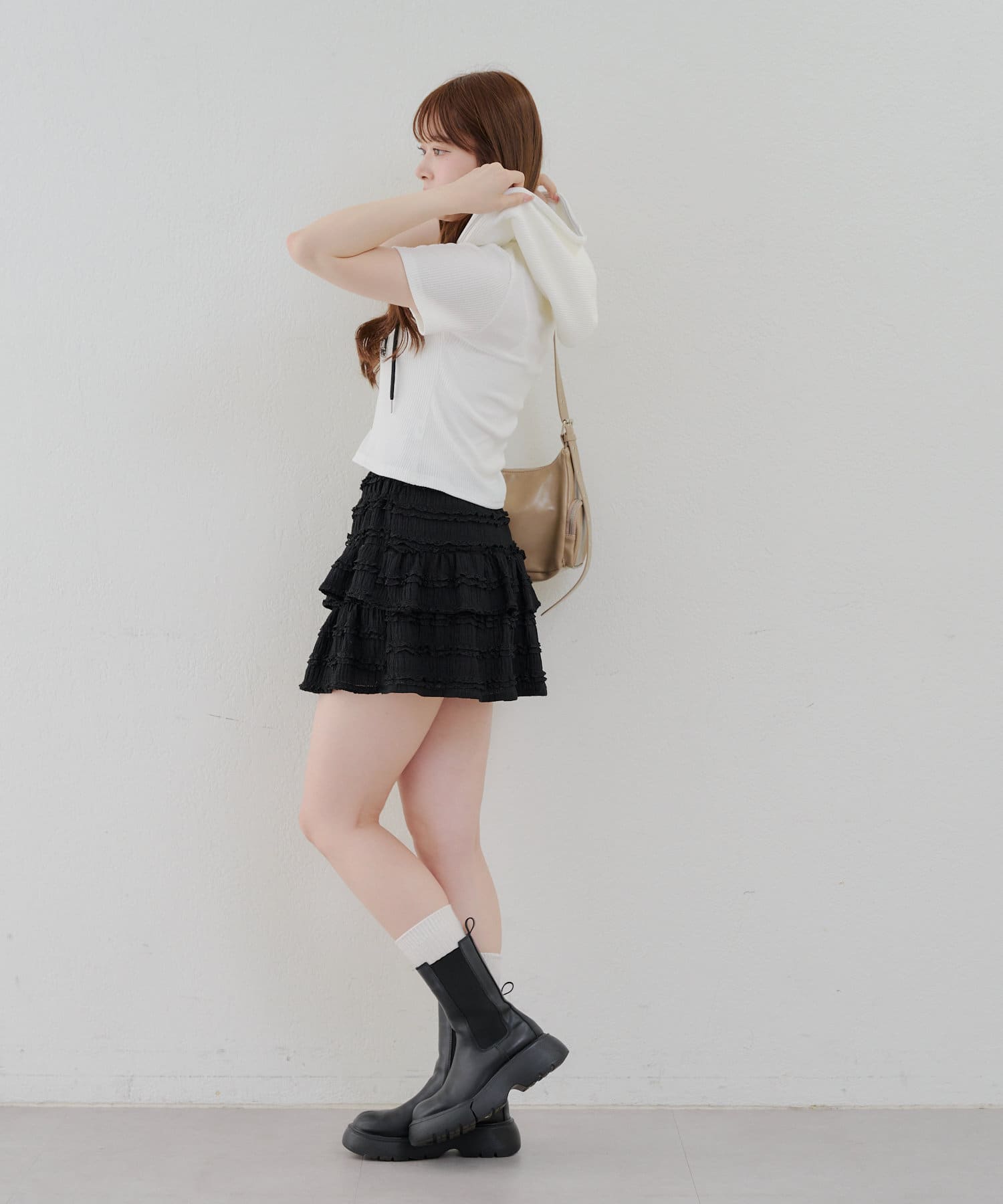 ・トレンドのティアードスカートなどのミニボトム合わせでカジュアルガーリーなコーディネートも◎