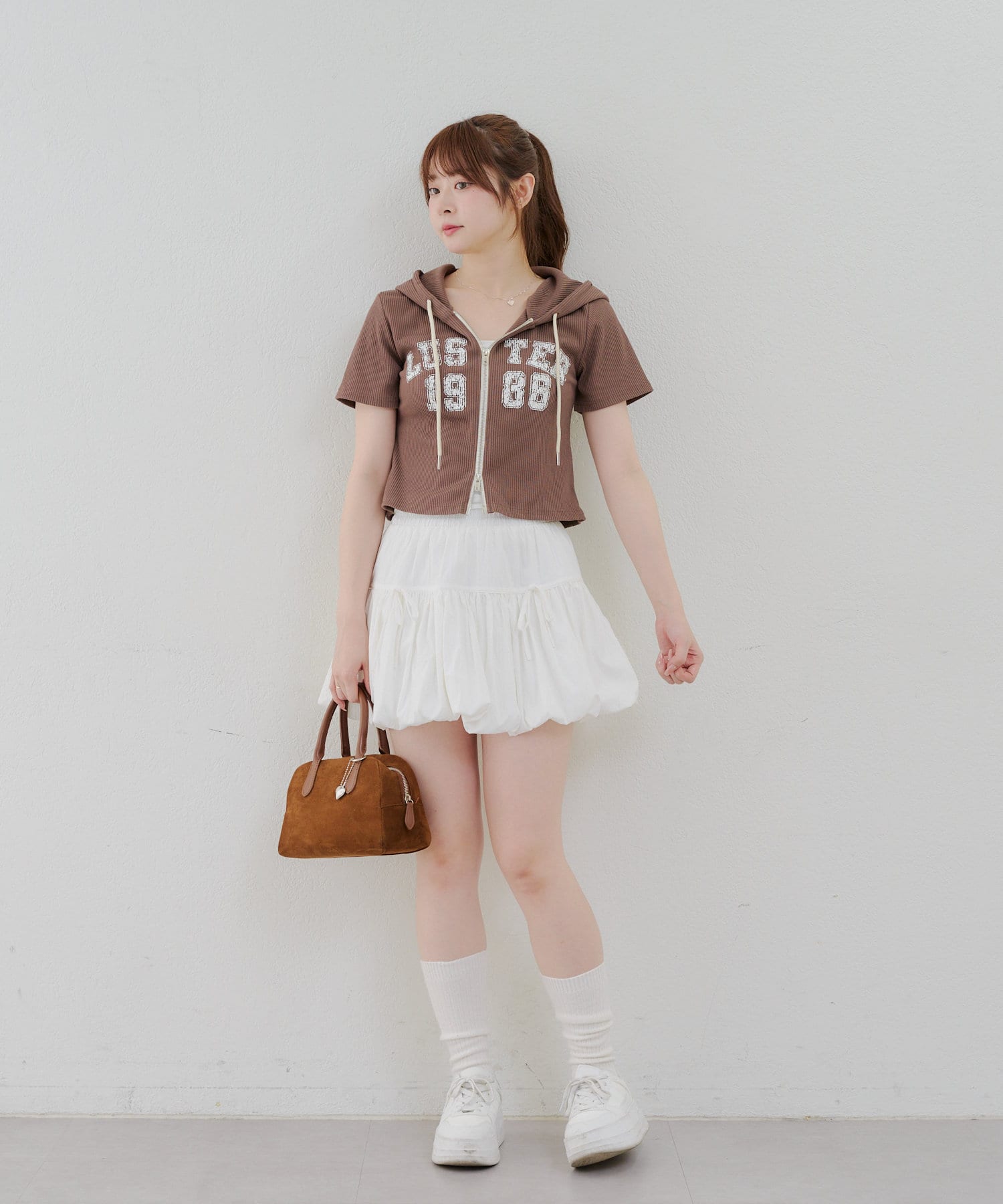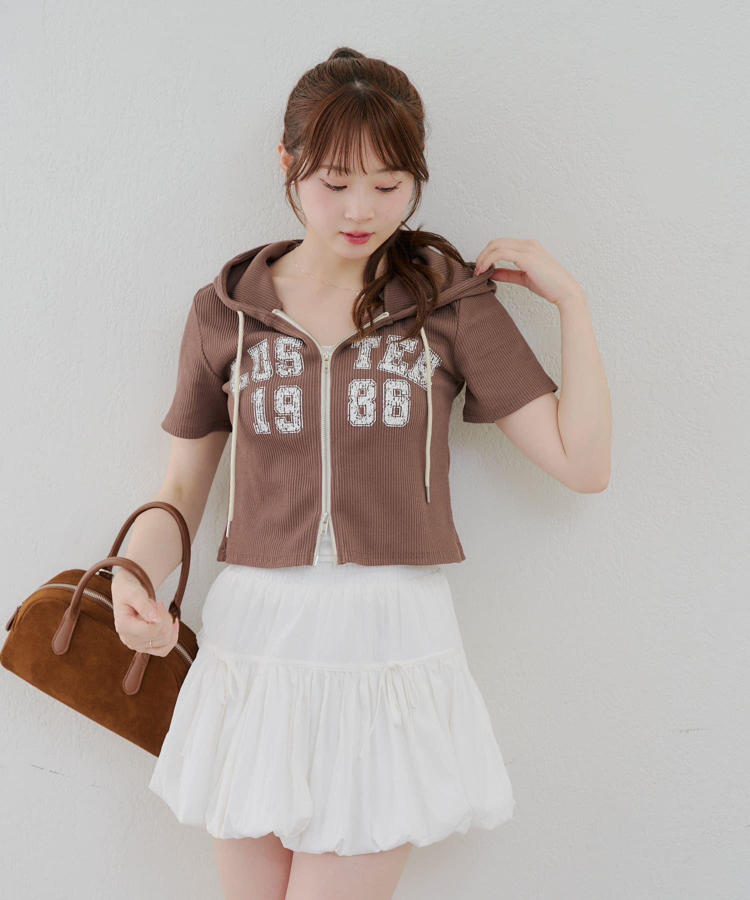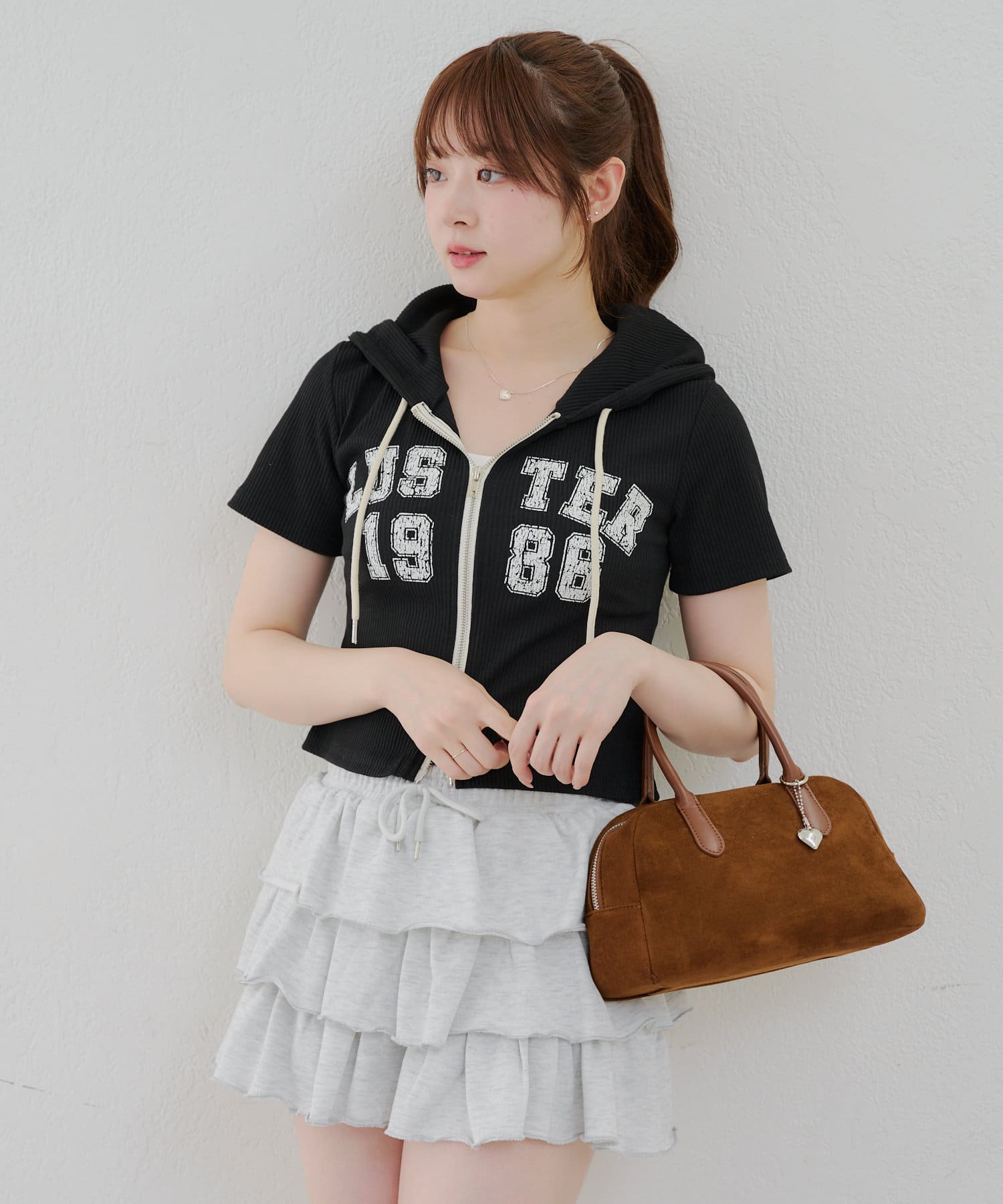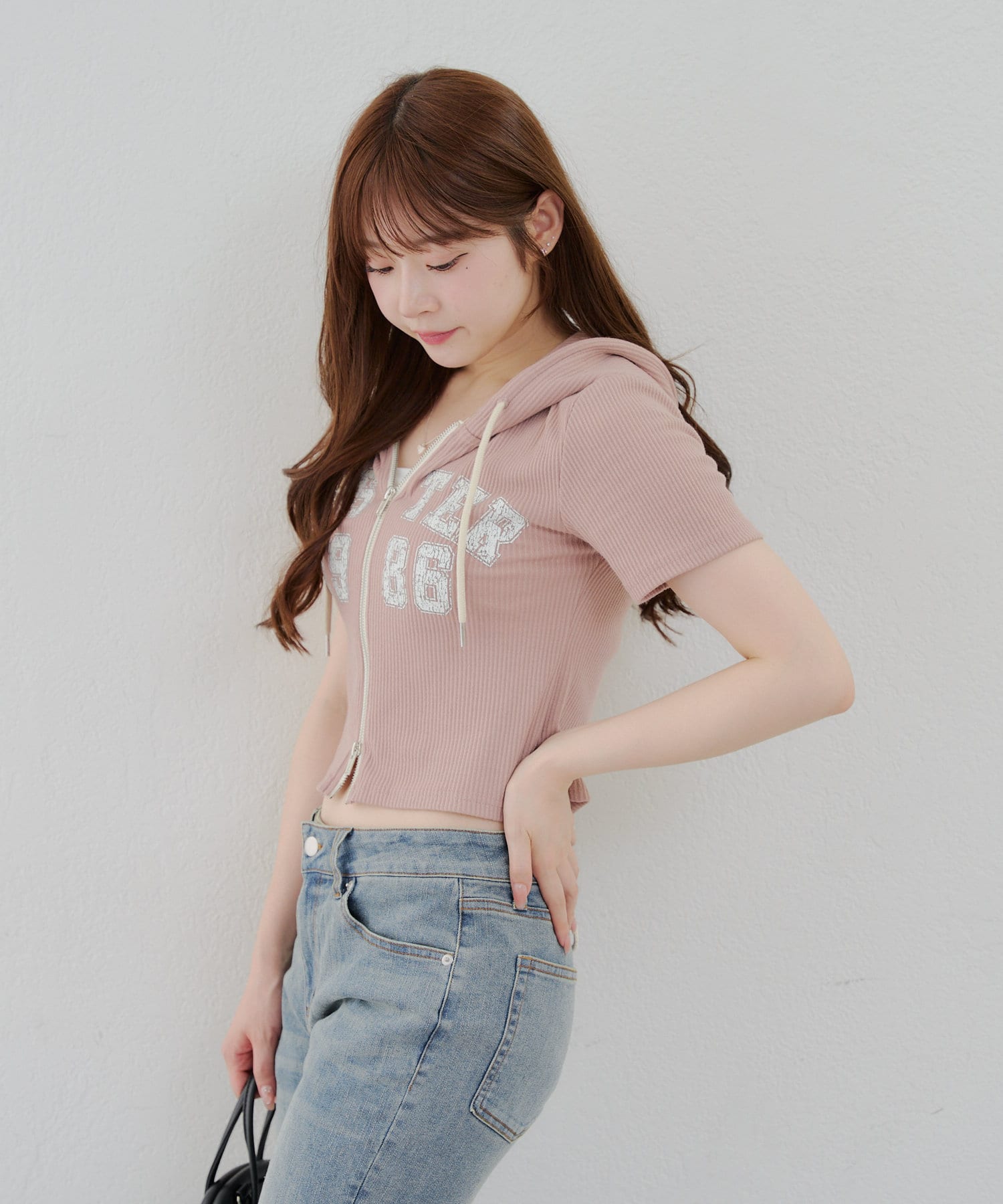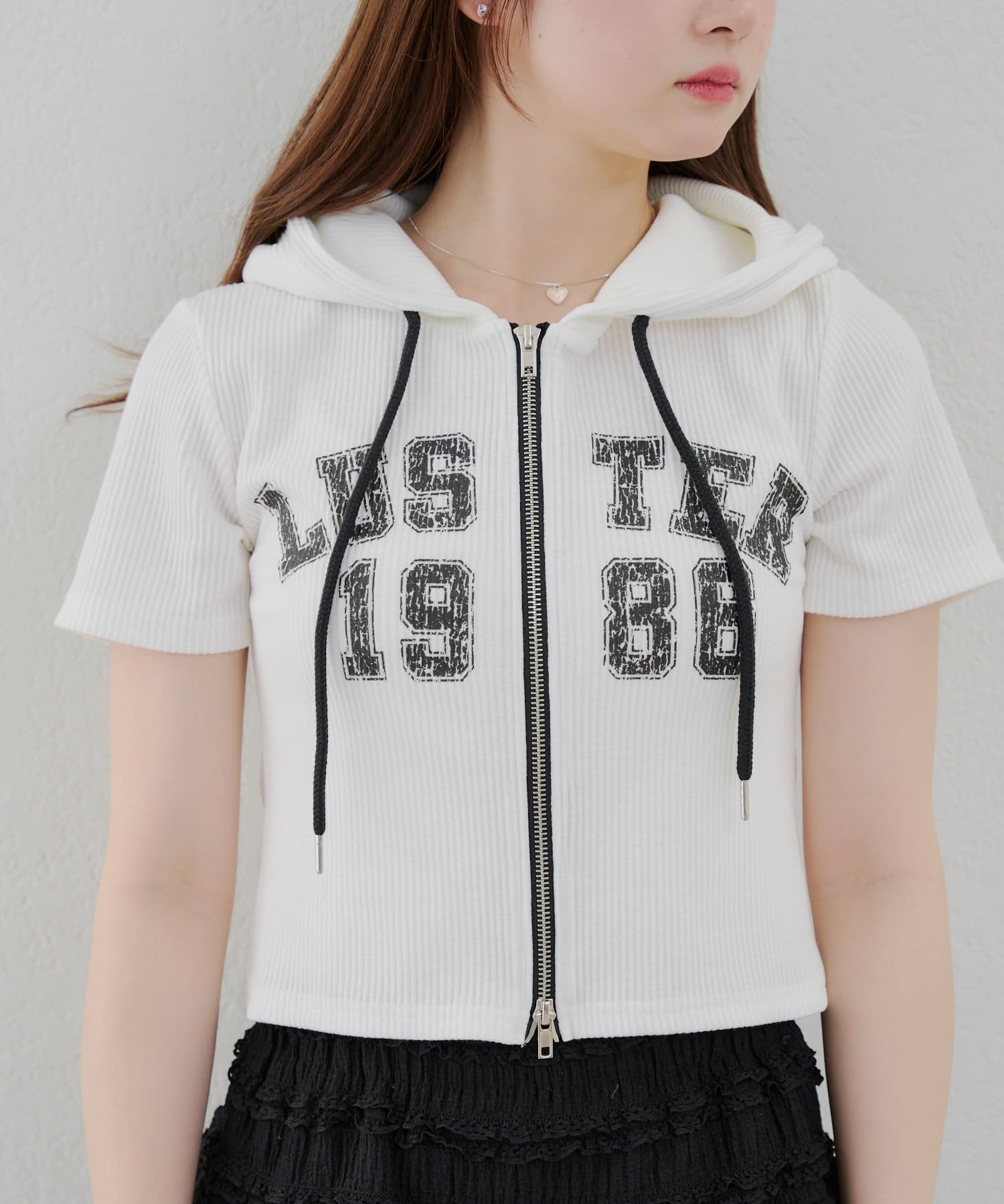 ・プリントロゴとフロントZIPがトレンドライクなパーカートップス。