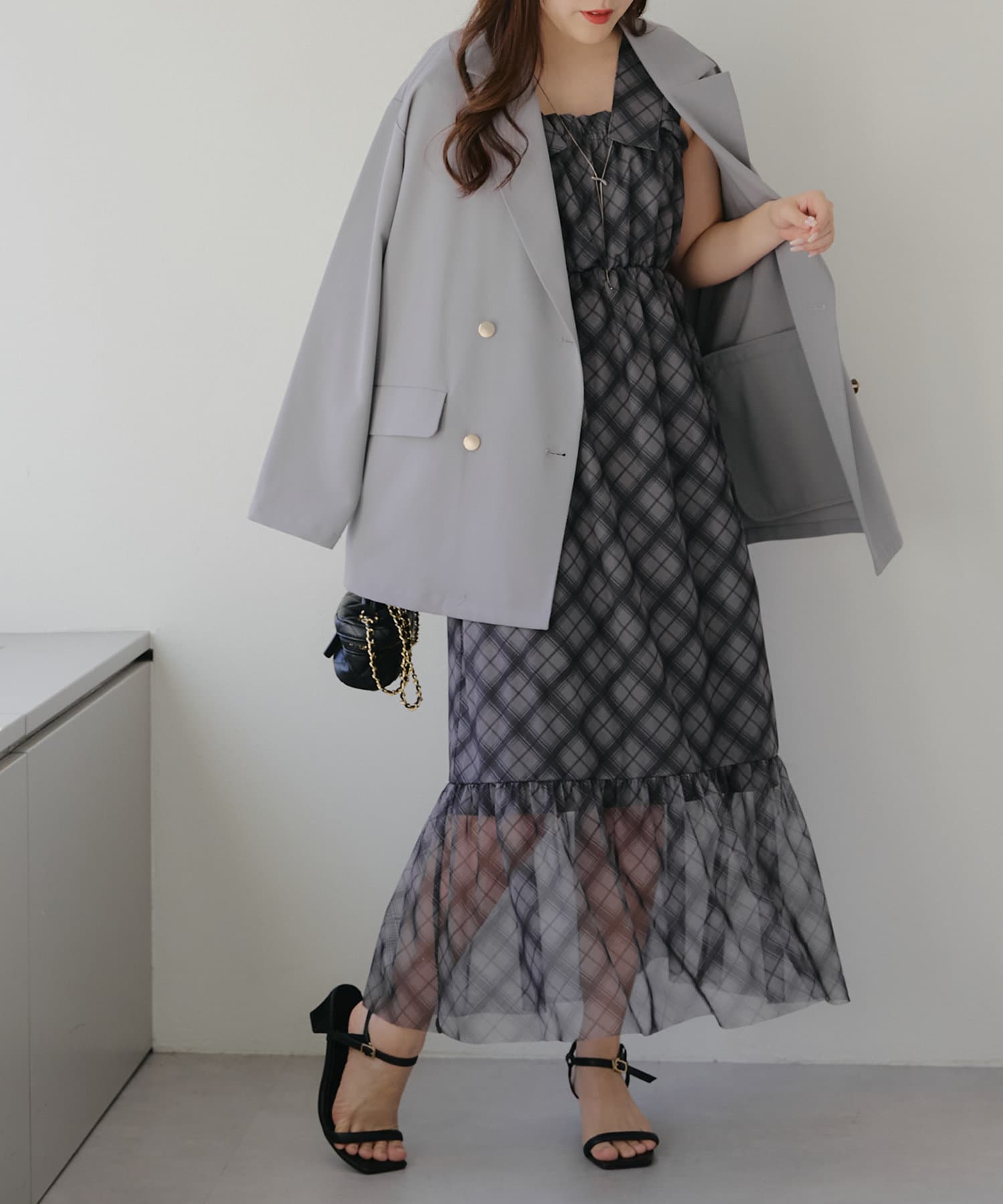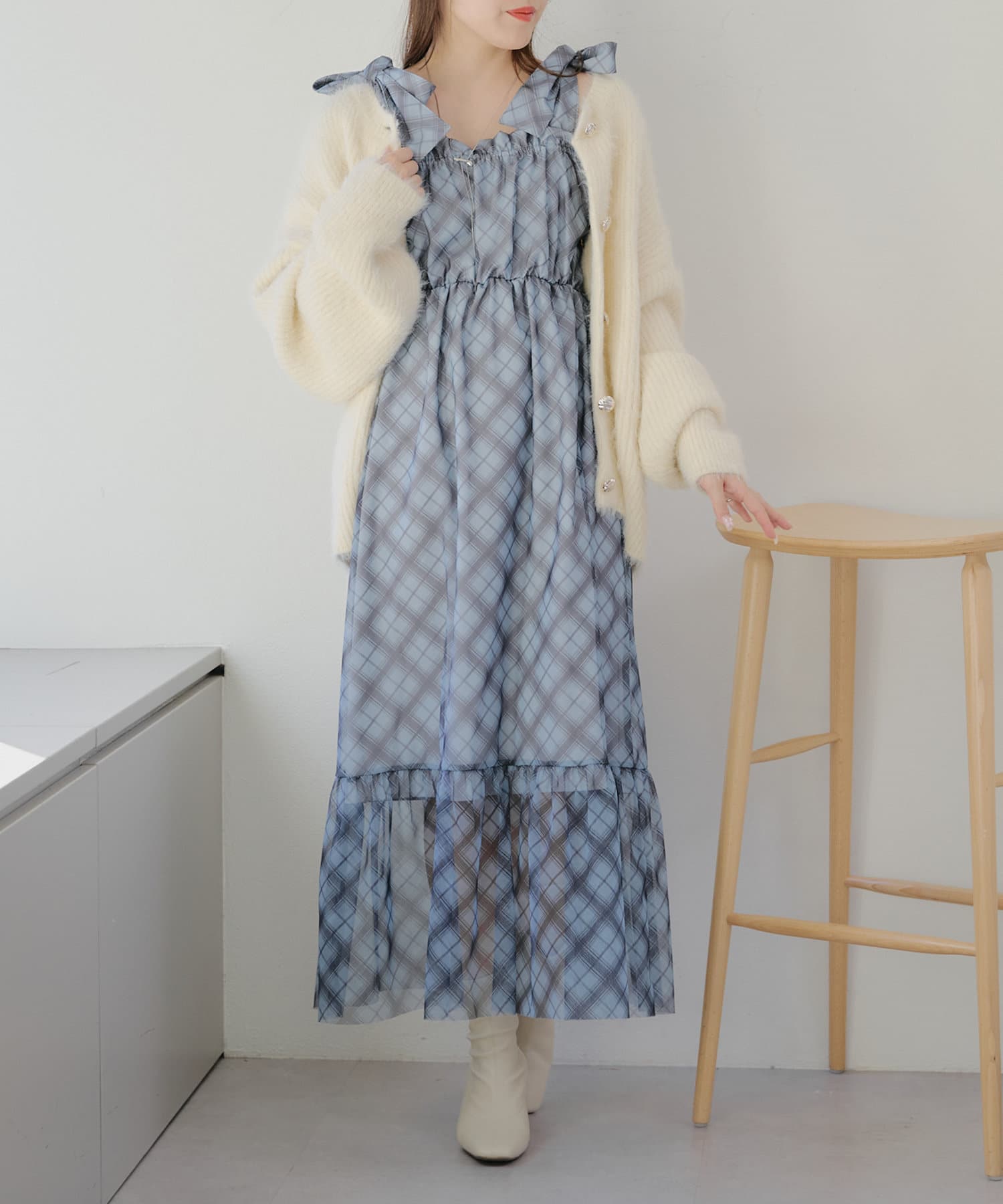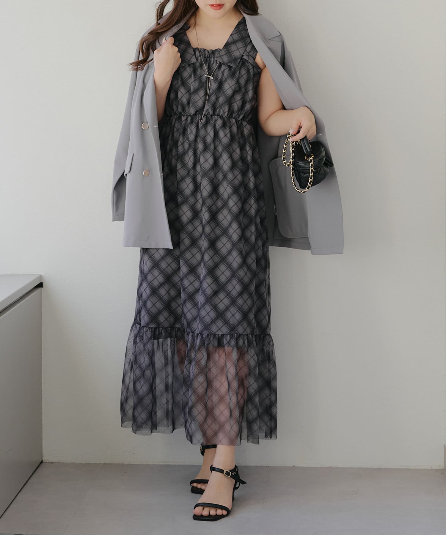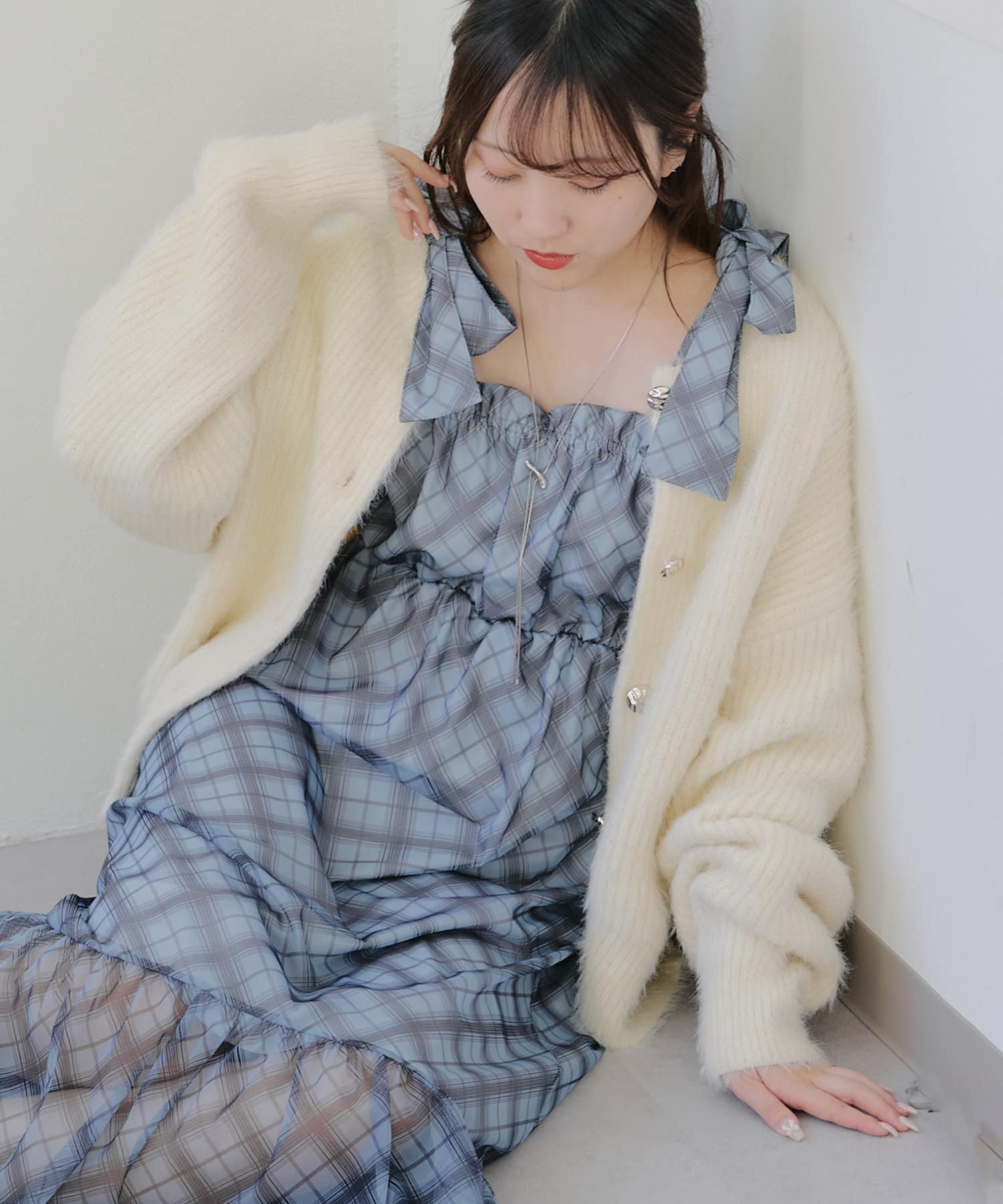 暖かい季節にはキャミソールを中に着て一枚で着こなすのがおすすめです。