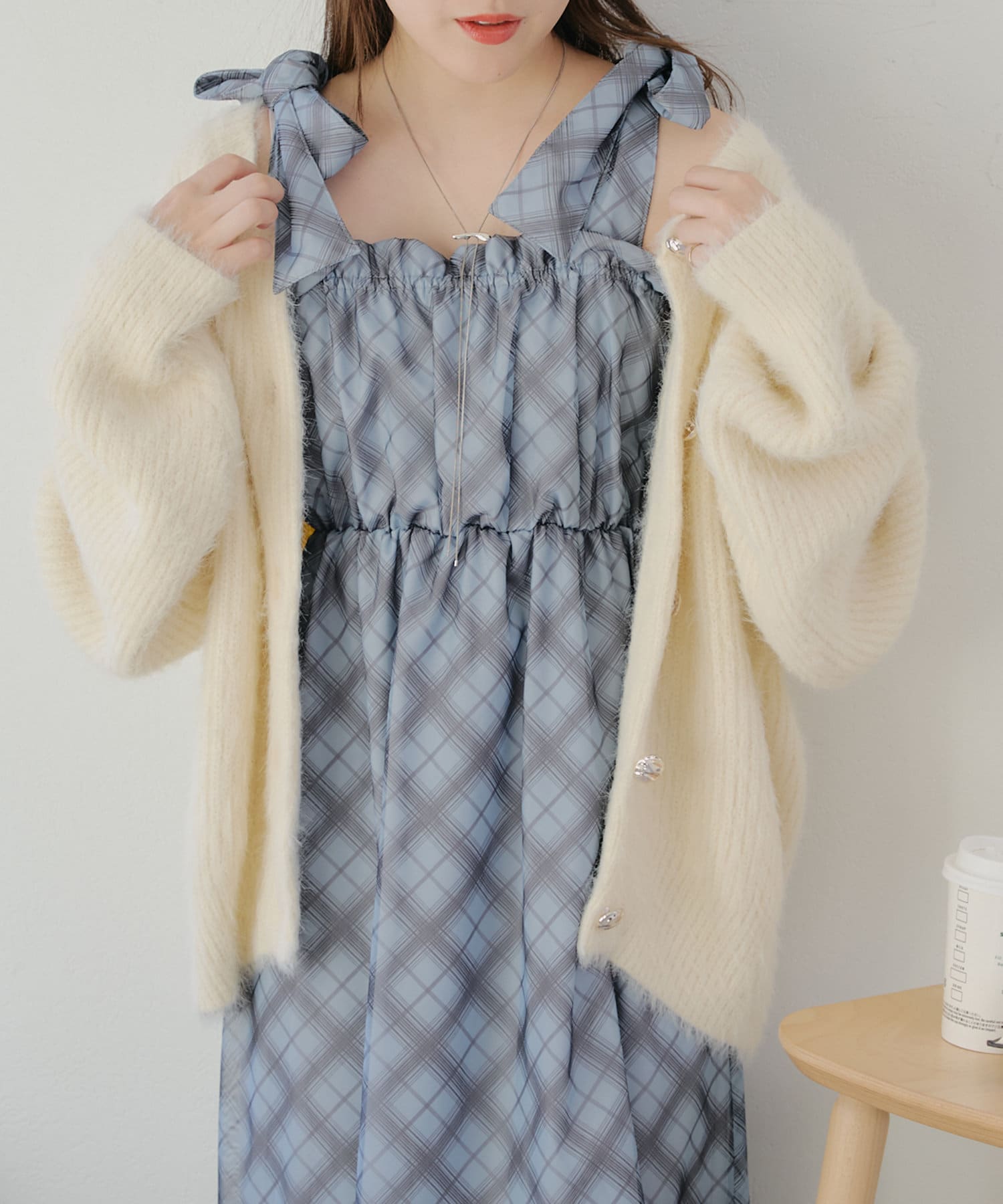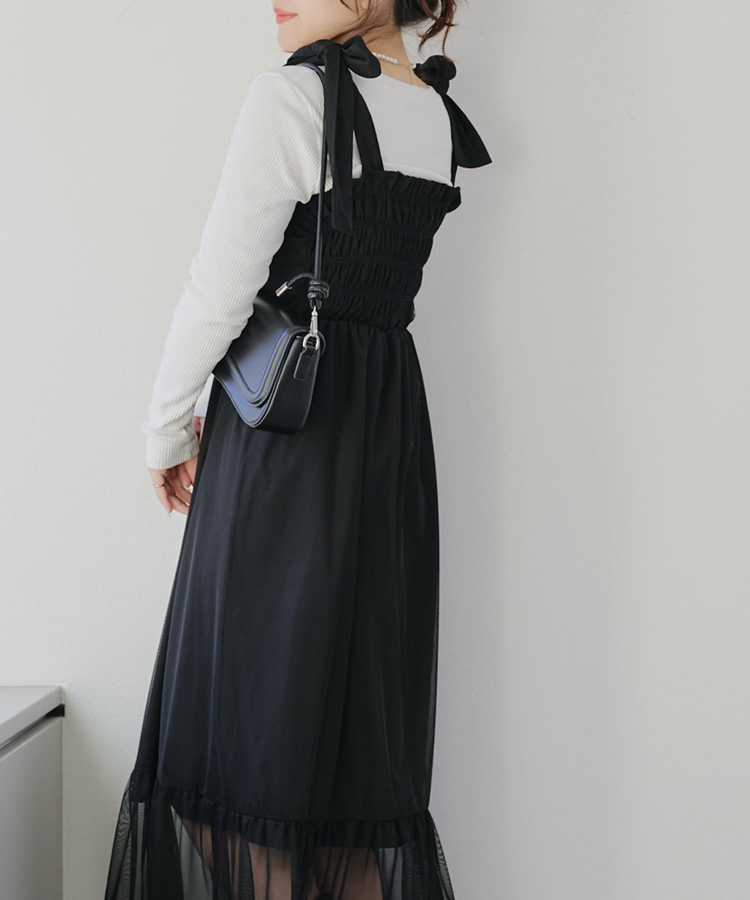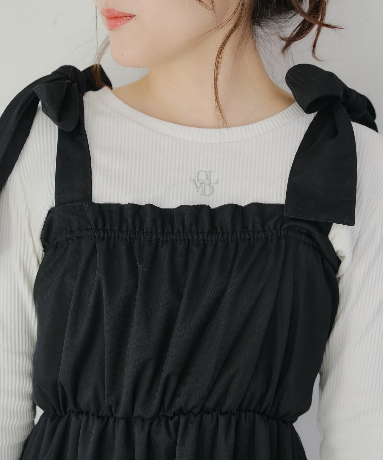 肩紐のリボンはほどけるのでお好みの丈感で調節可能です。