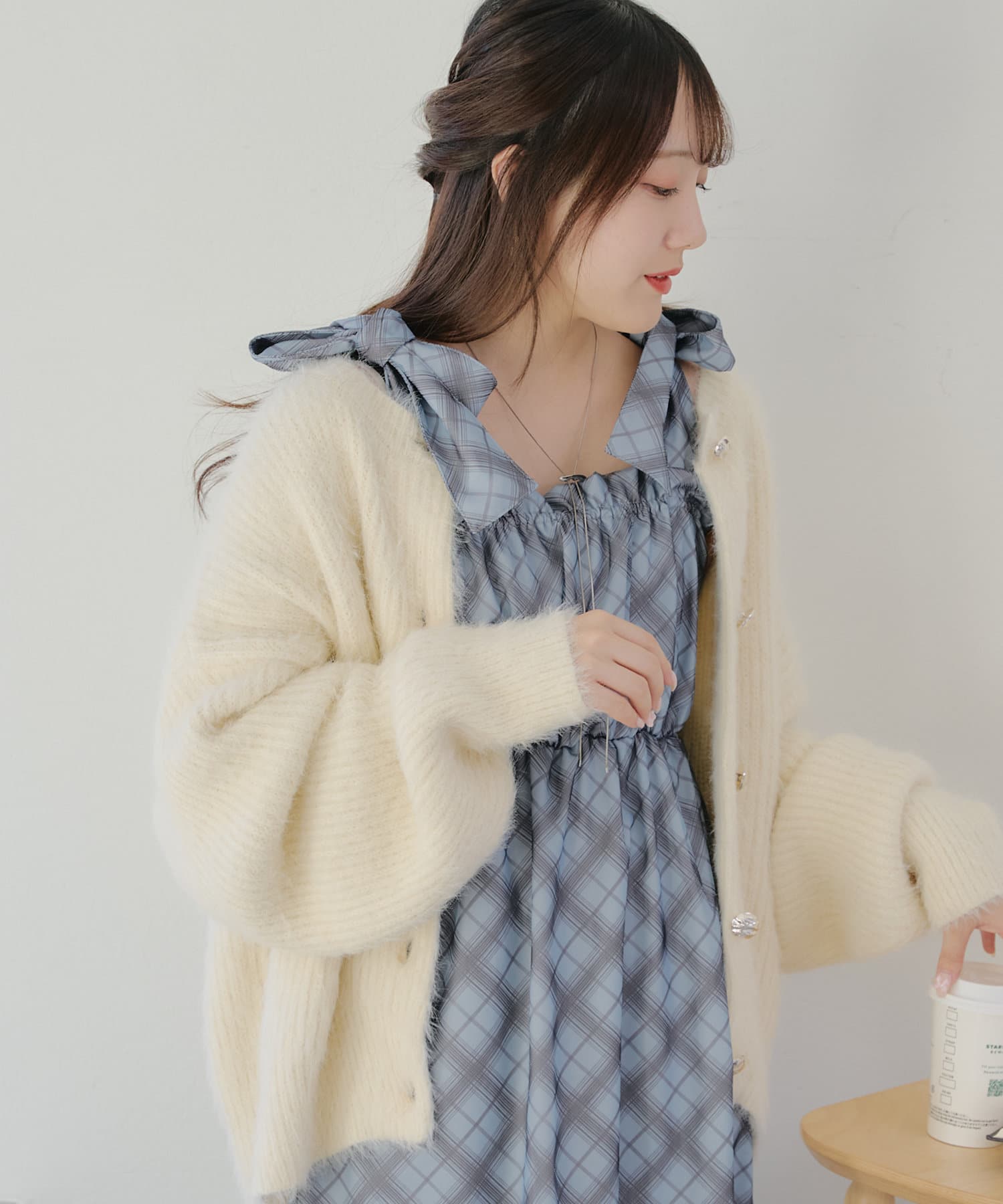 カーディガンやレザージャケットなど、羽織るものによって雰囲気を変えて着用していただけます。