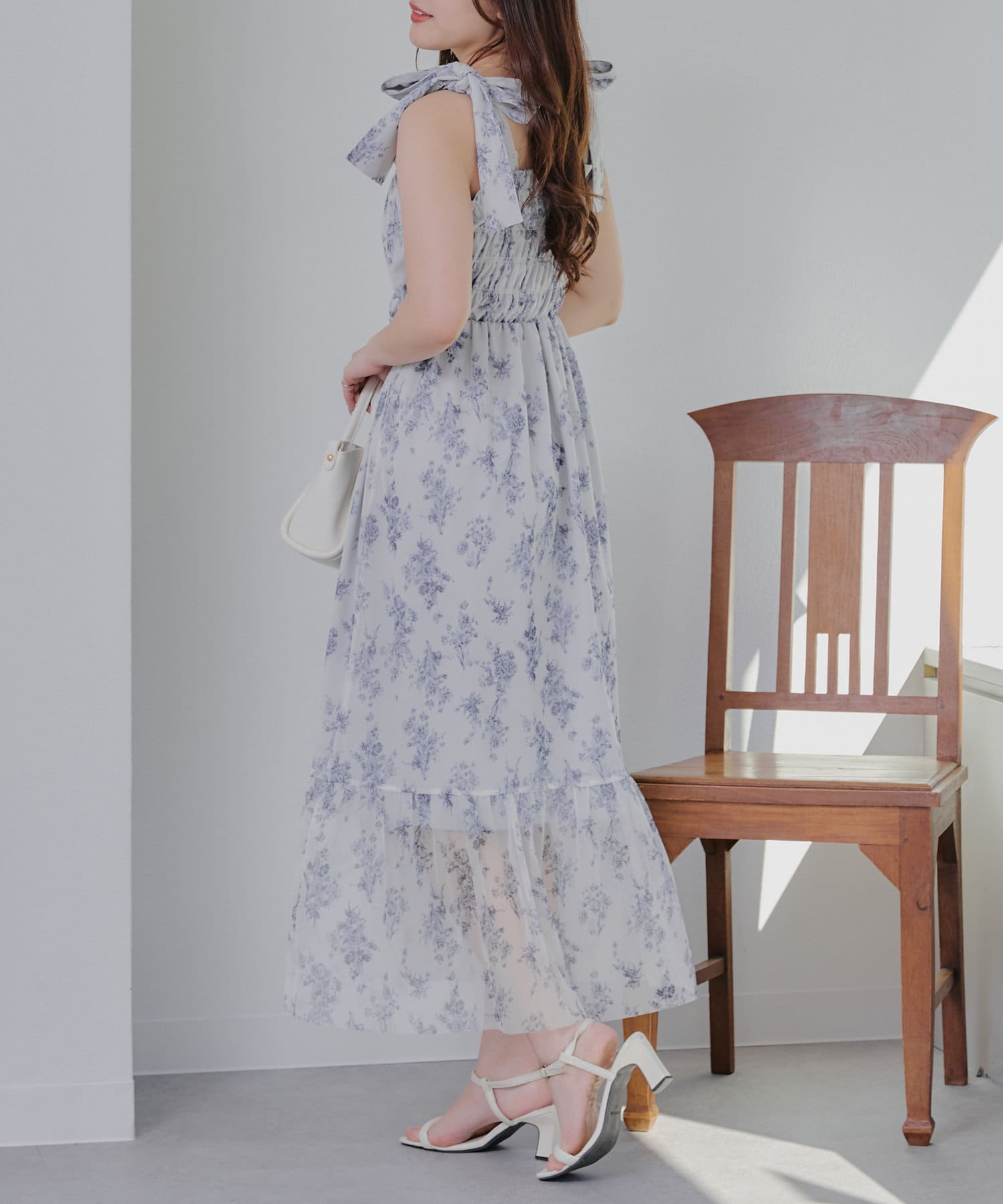 歩く度に肩で揺れる、大人レディなロングワンピース。