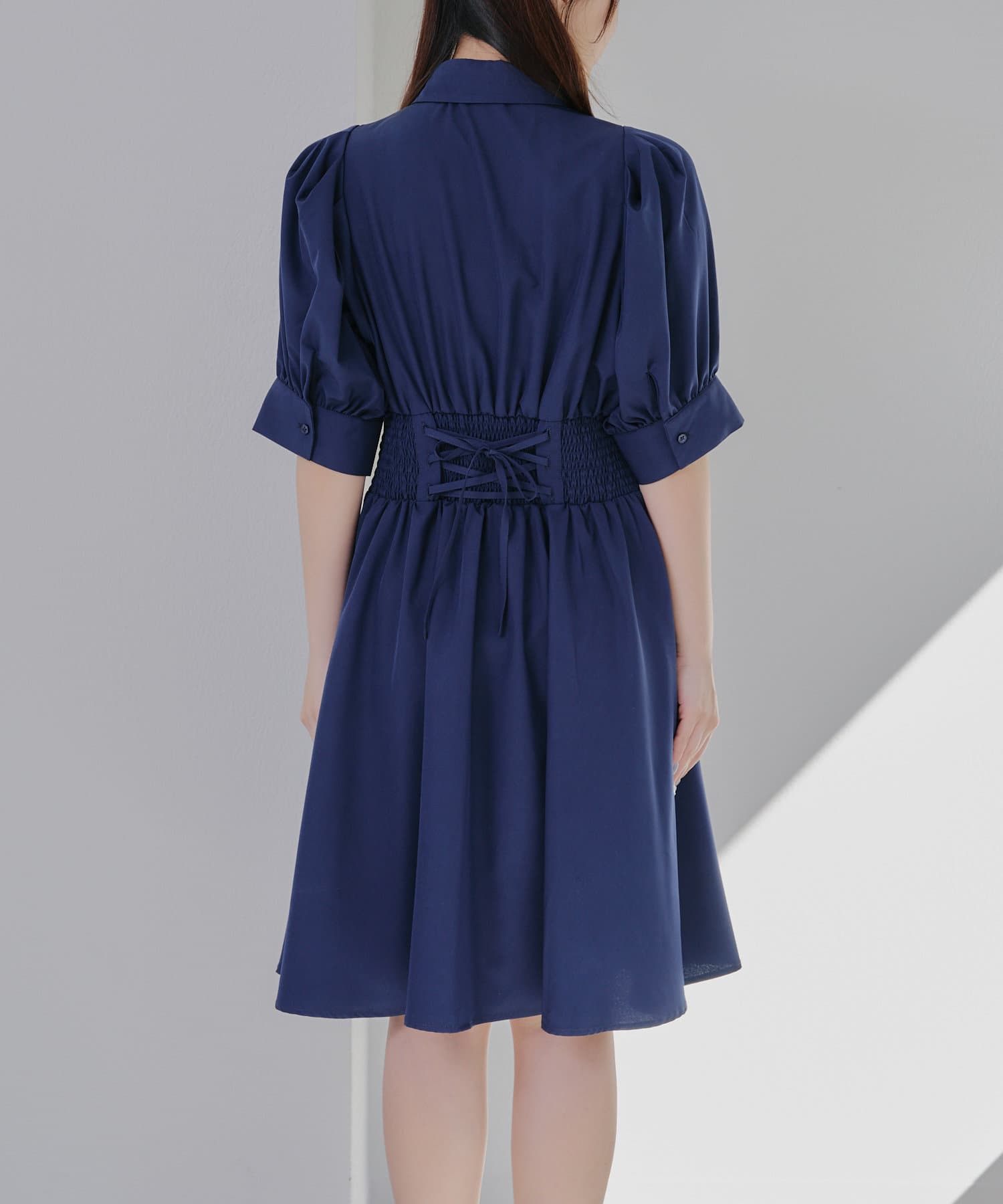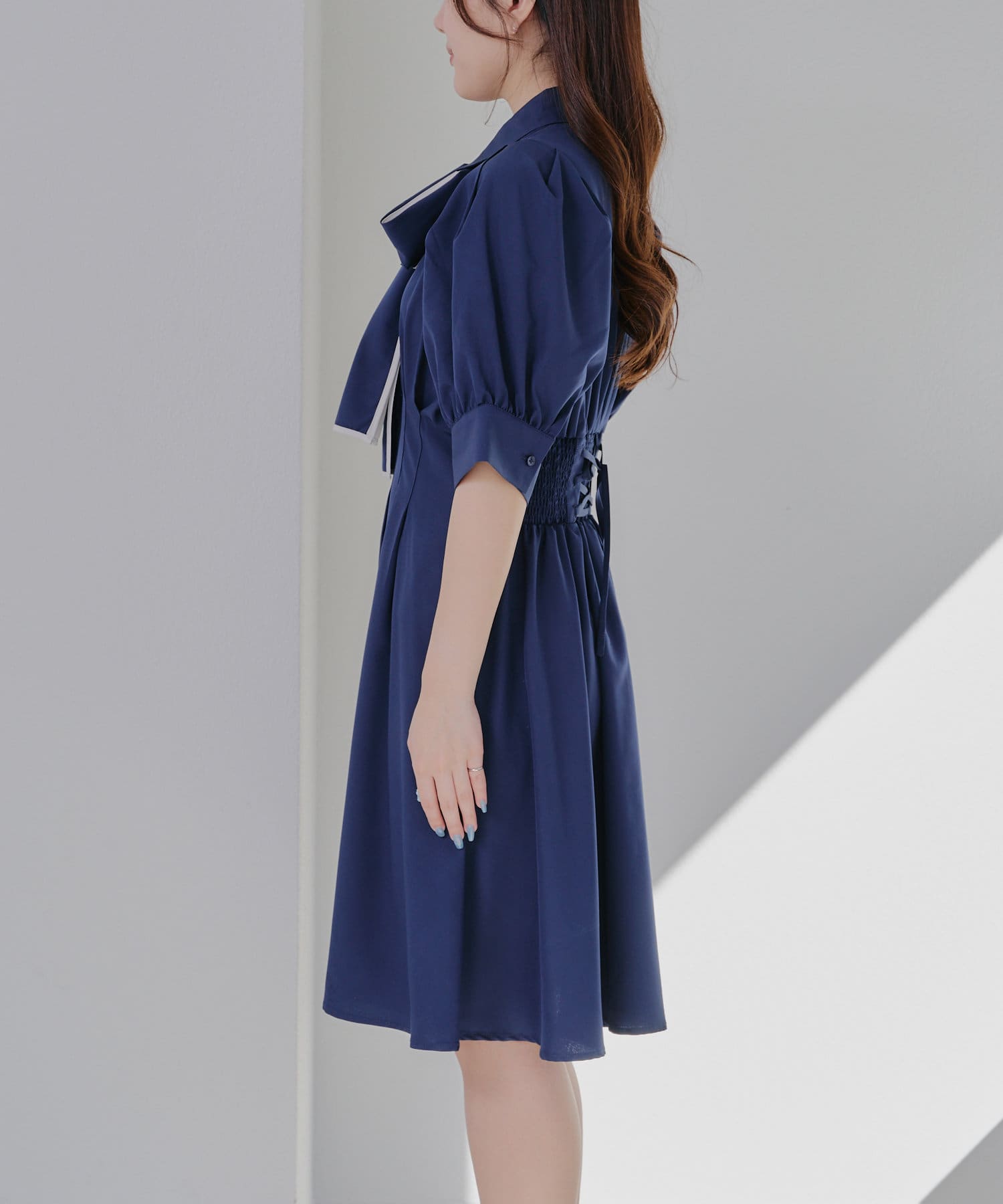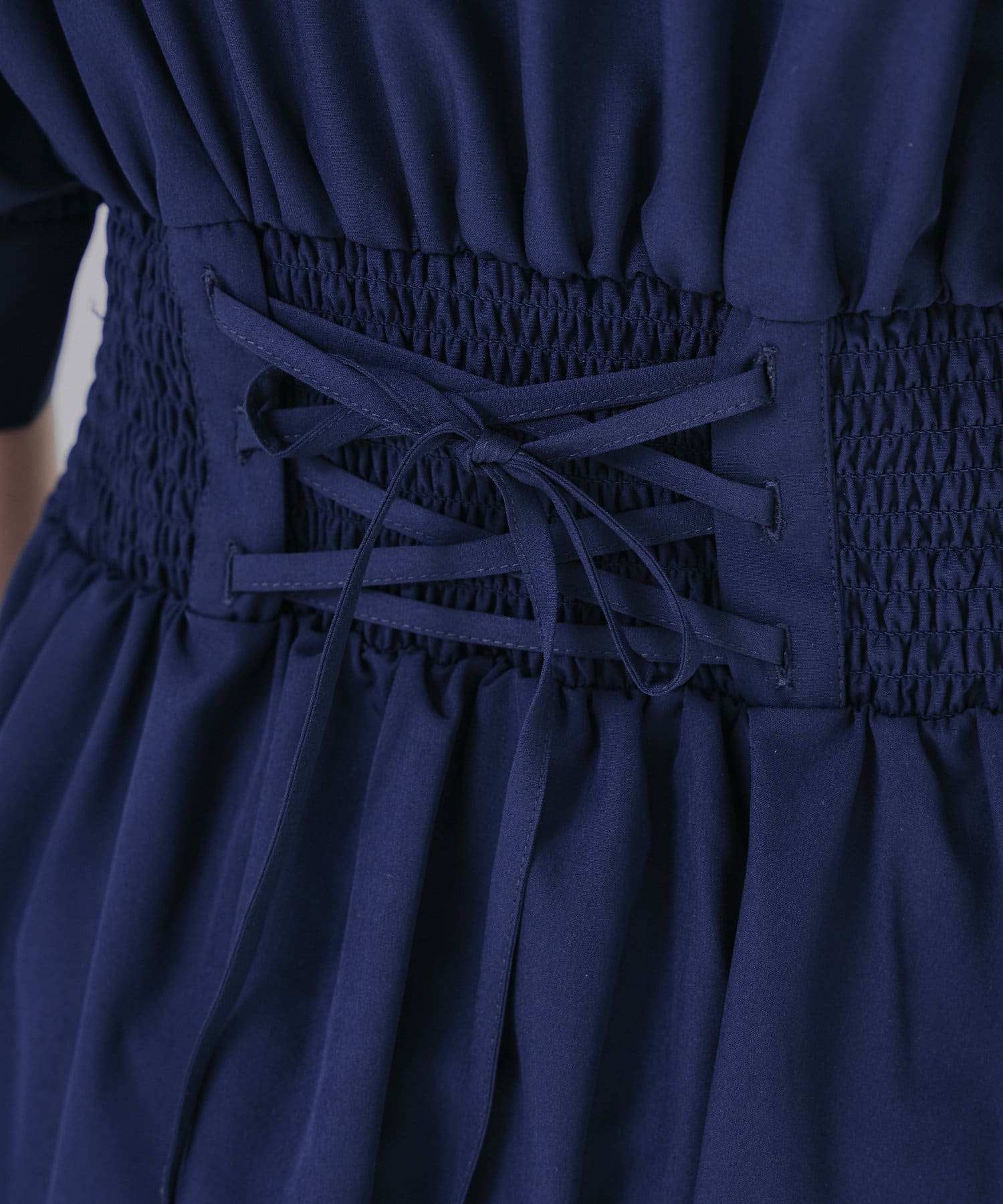 【2サイズ展開】後ろレースアップボウタイワンピース