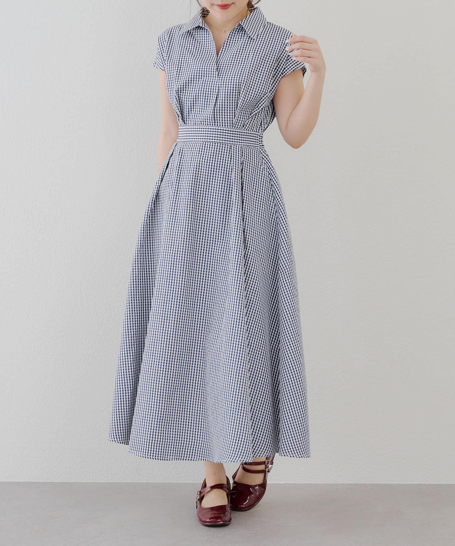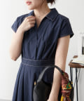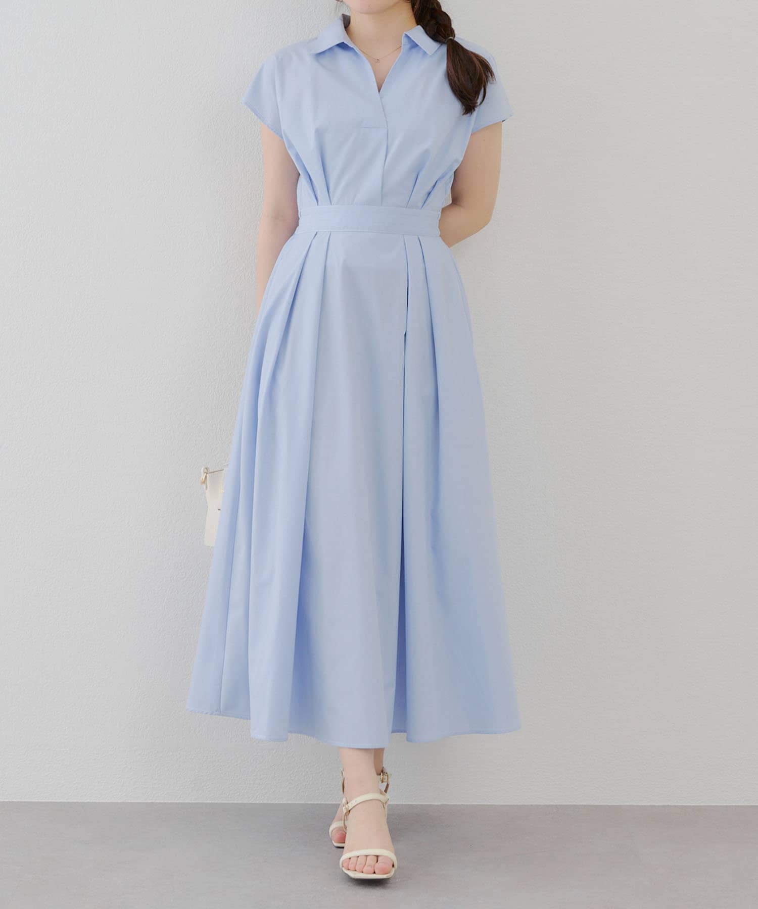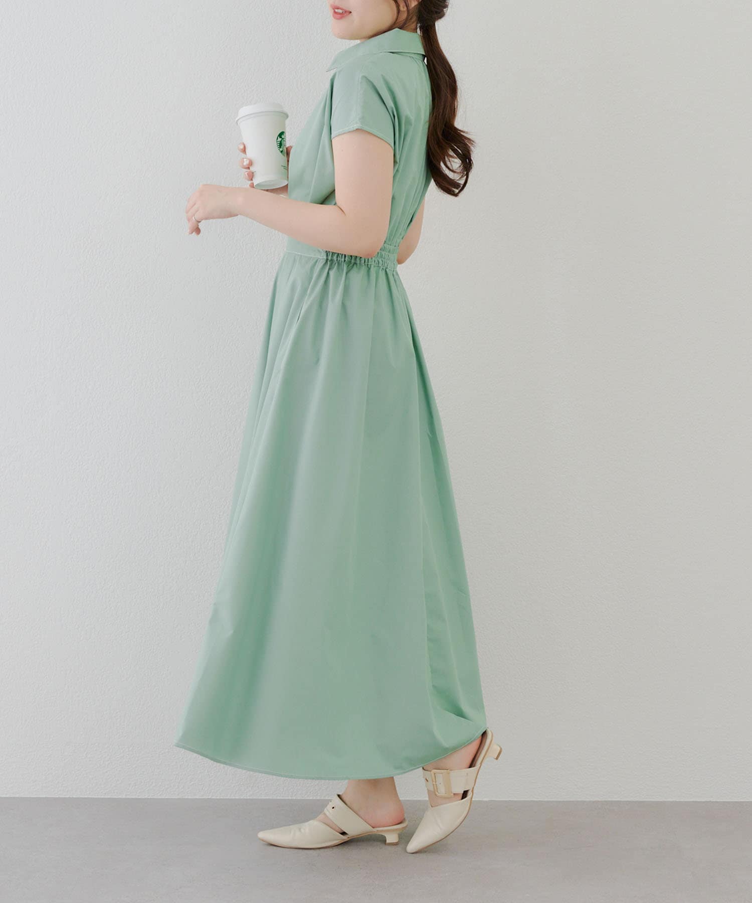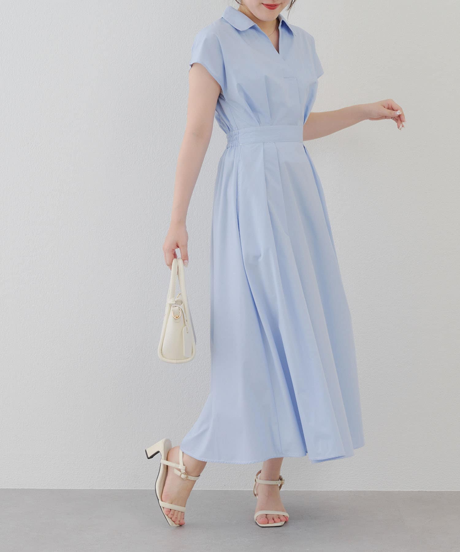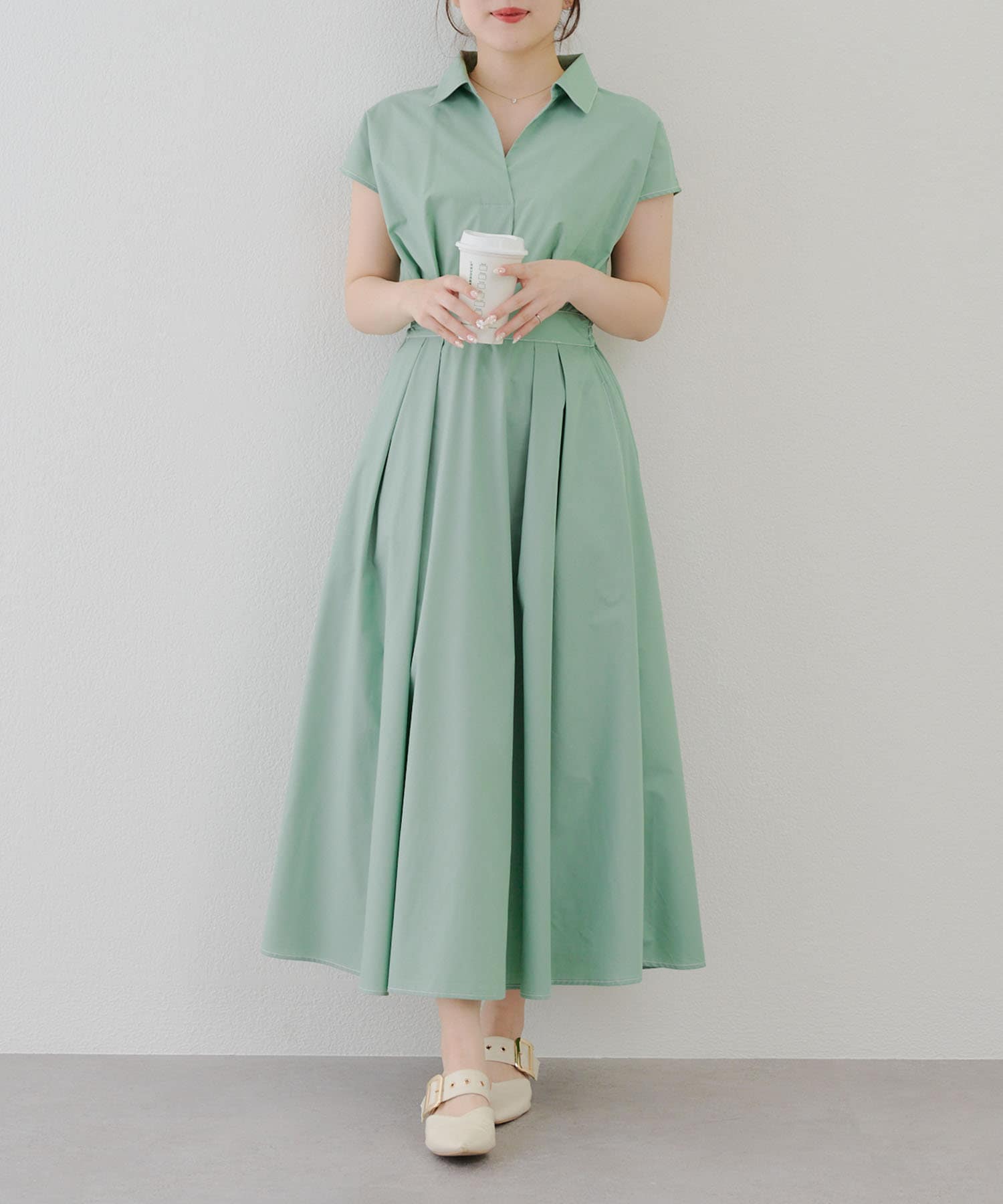 ・スキッパー襟が大人っぽい印象のロング丈ワンピース