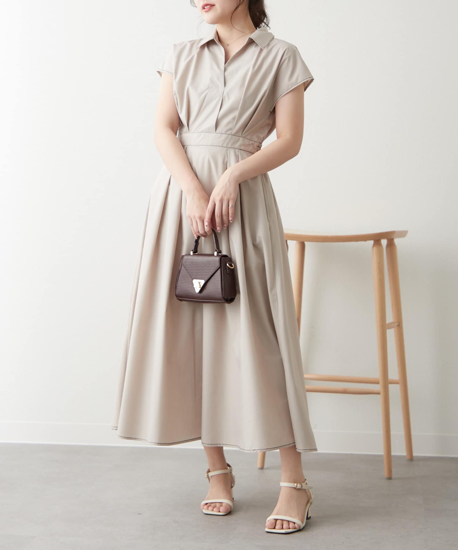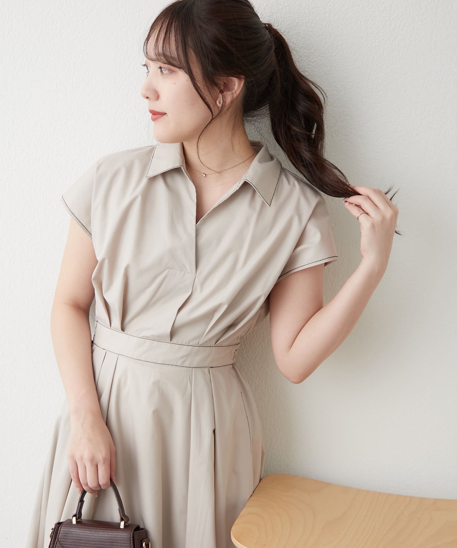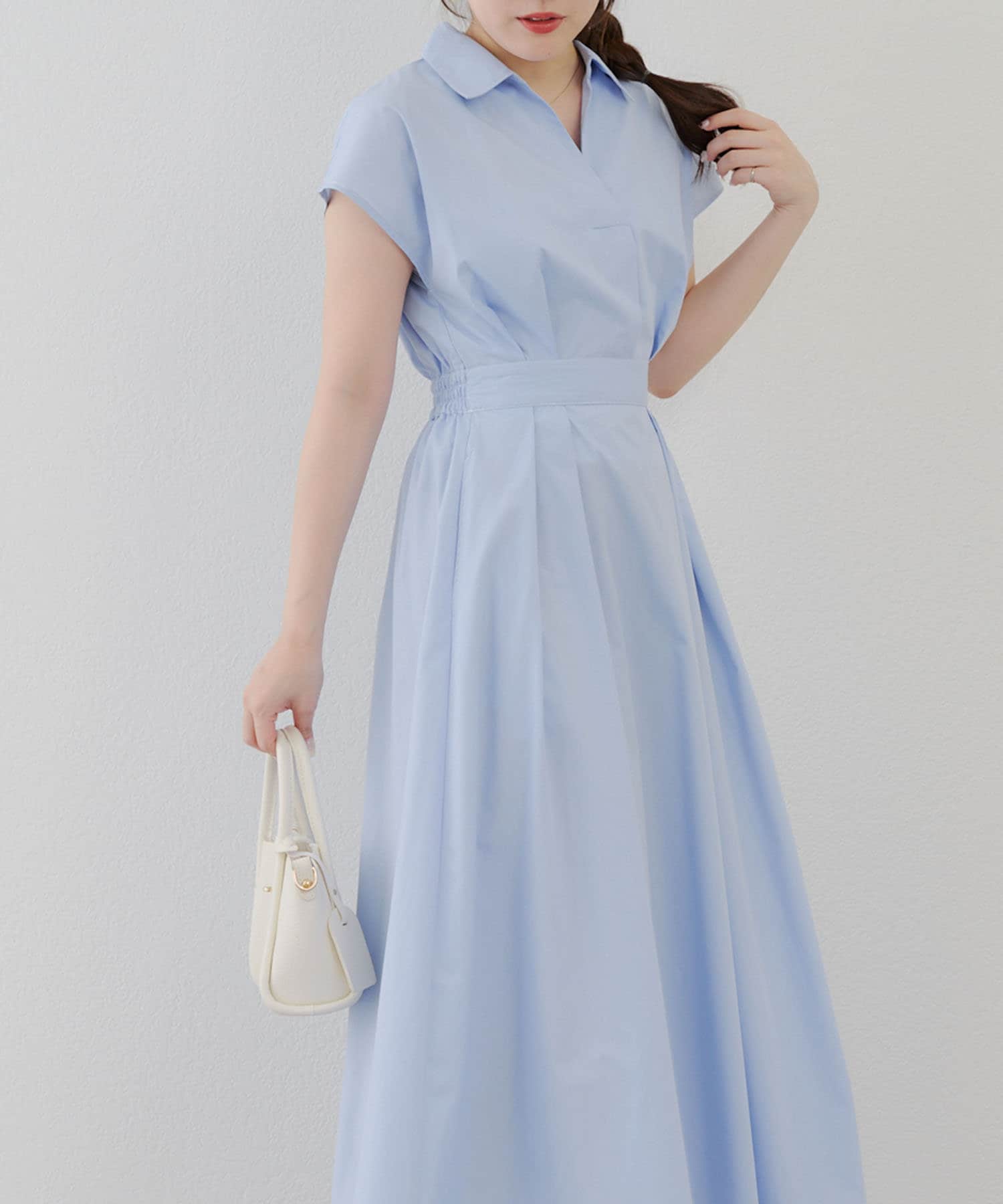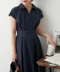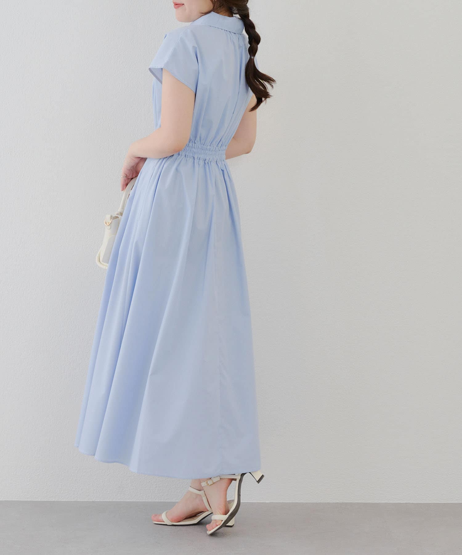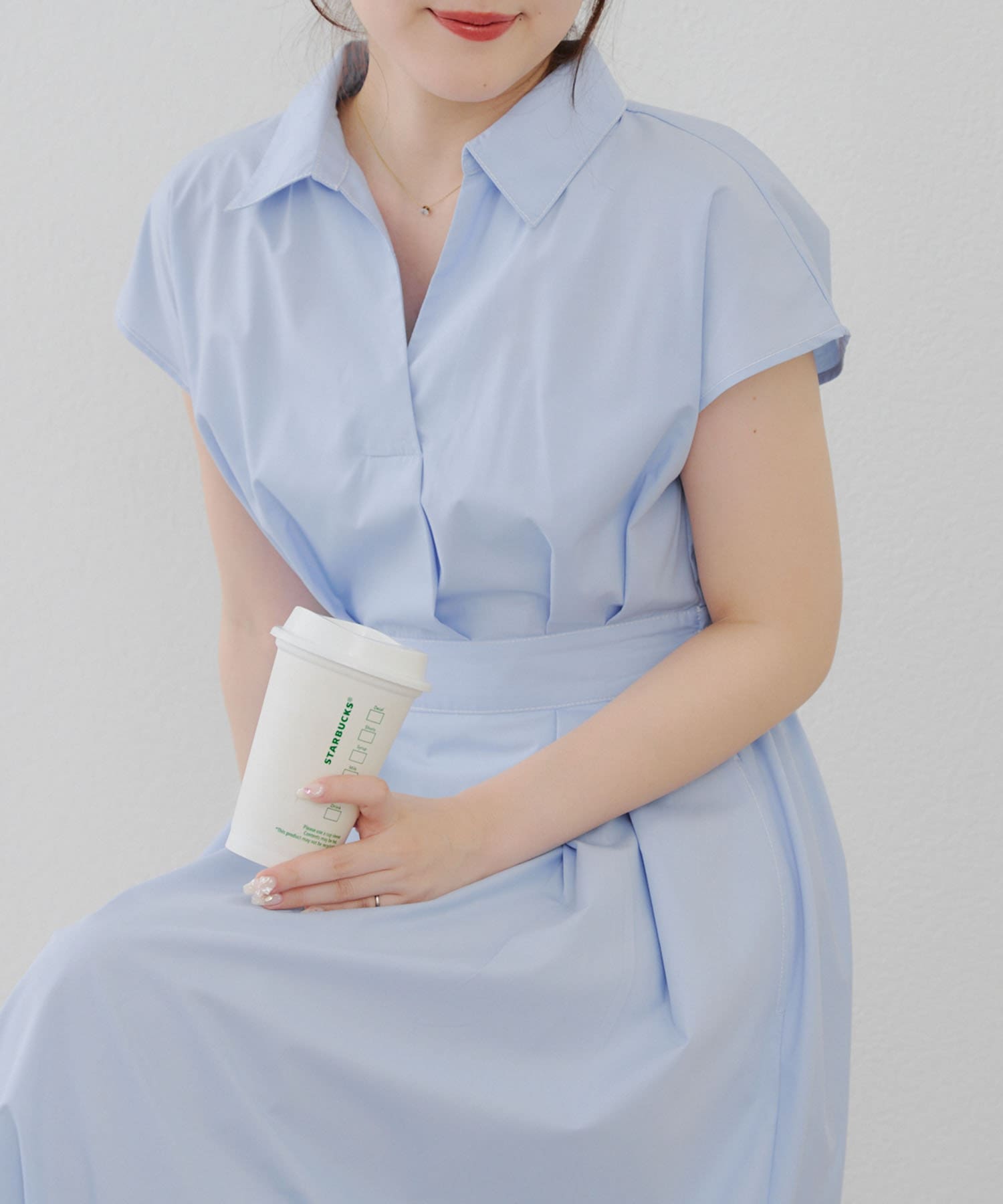 ・スキッパー襟が大人っぽい印象のロング丈ワンピース