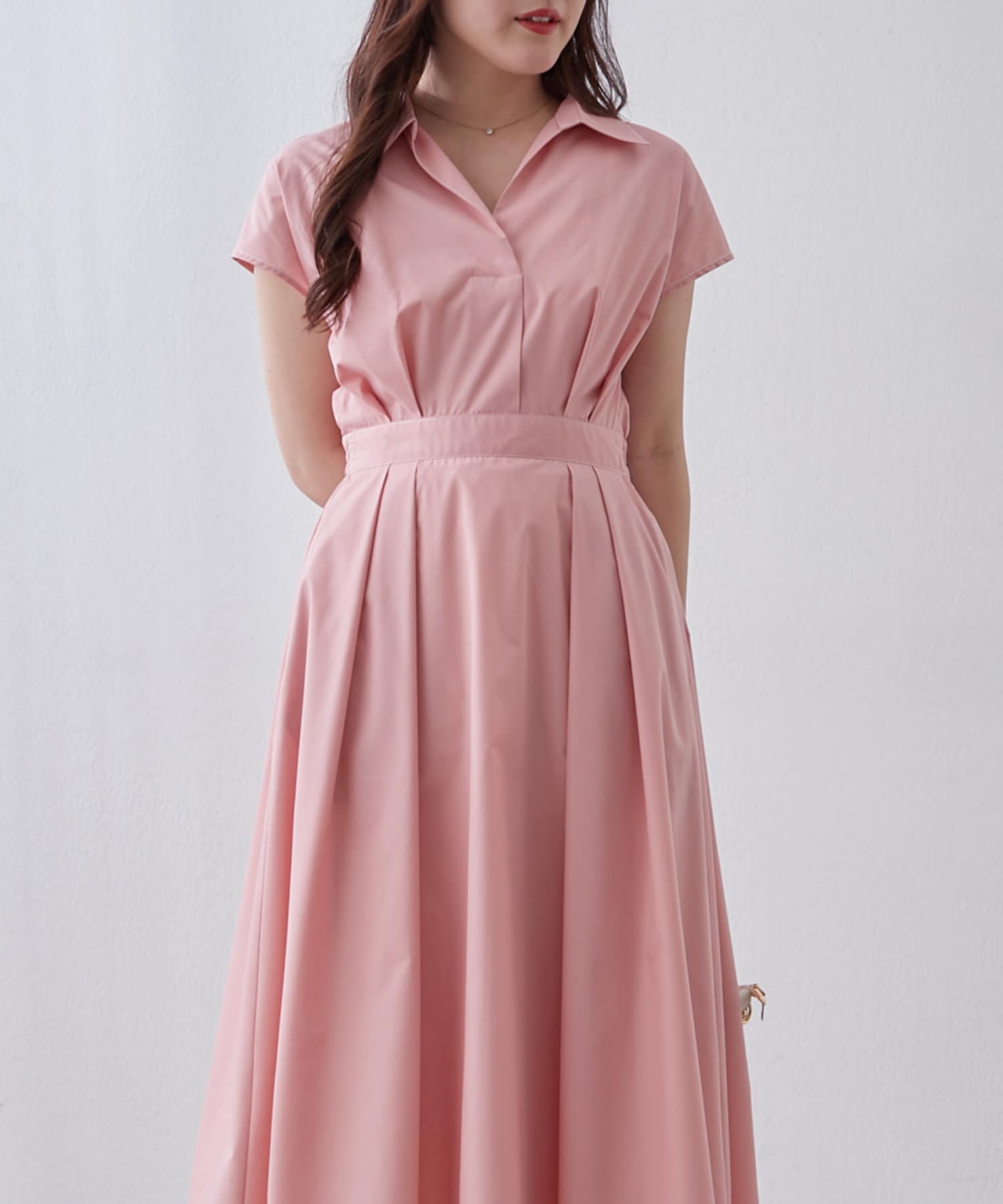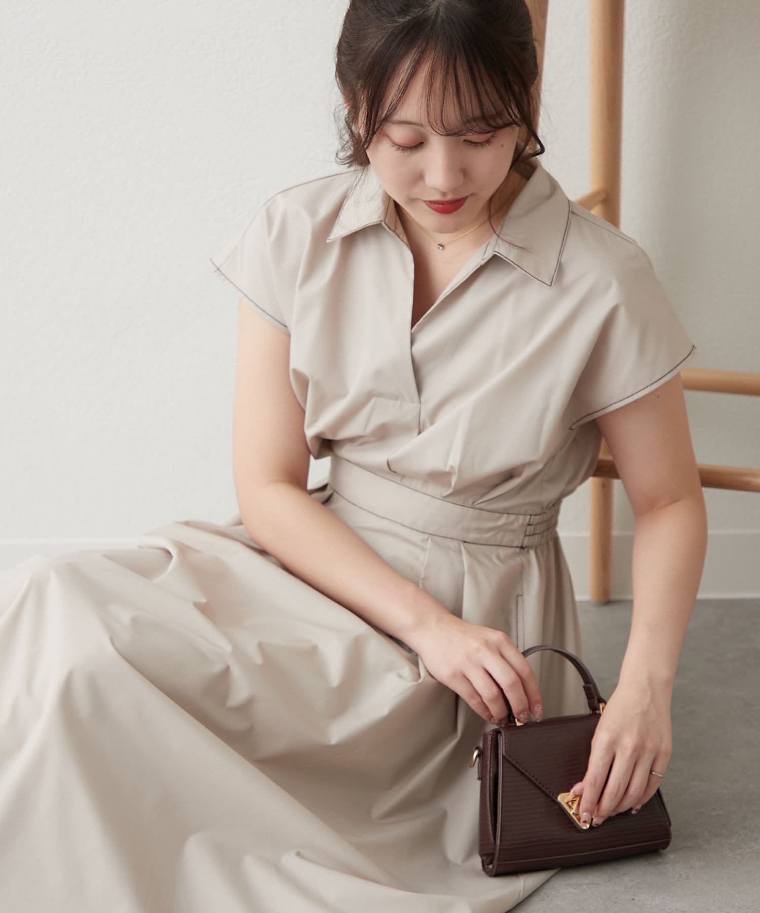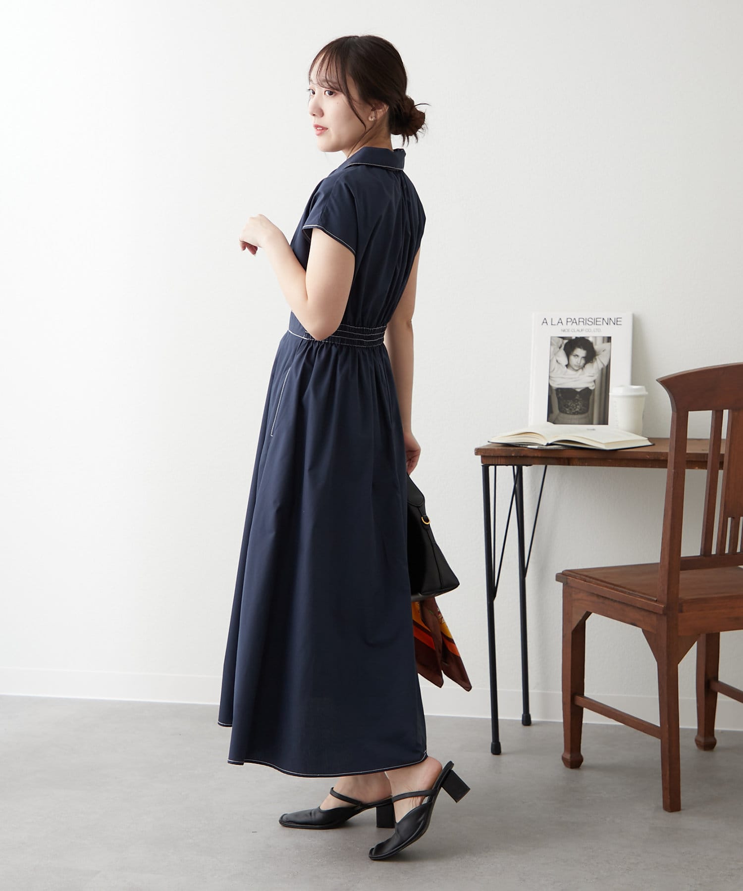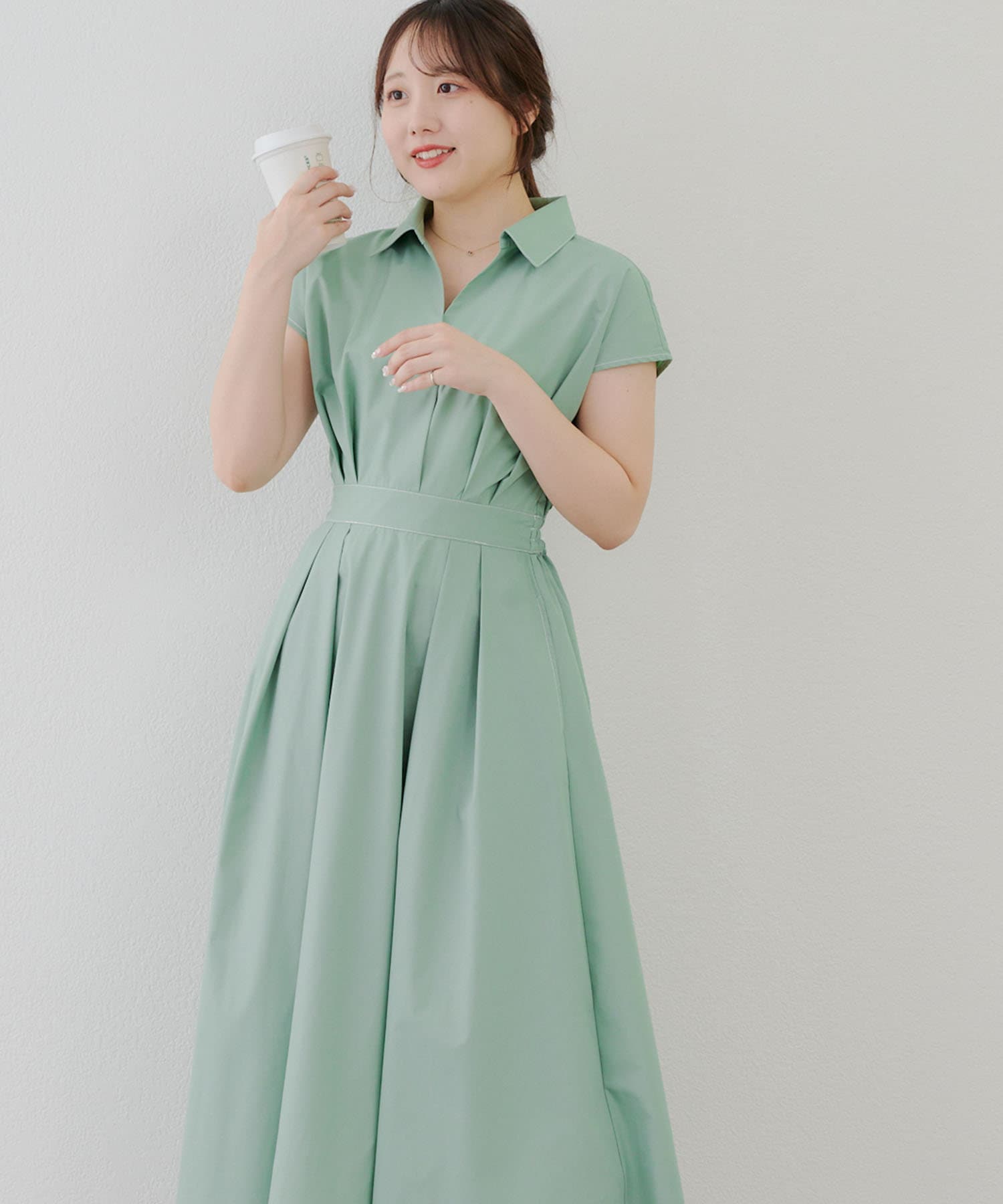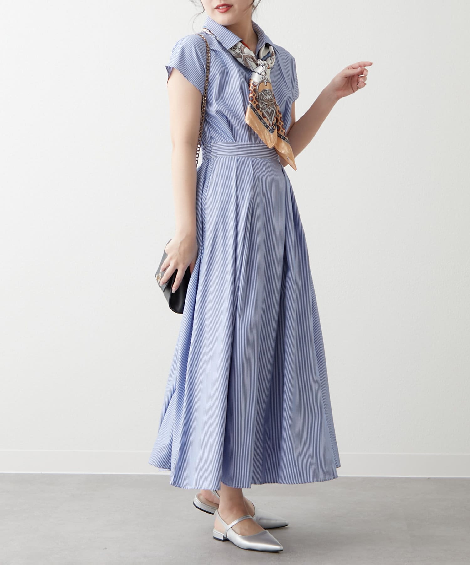 ・スキッパー襟が大人っぽい印象のロング丈ワンピース