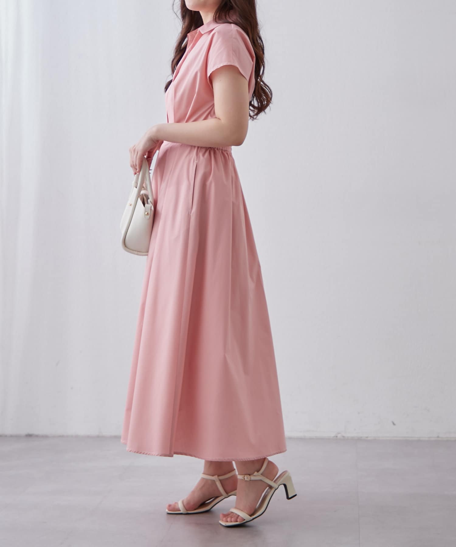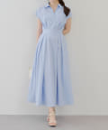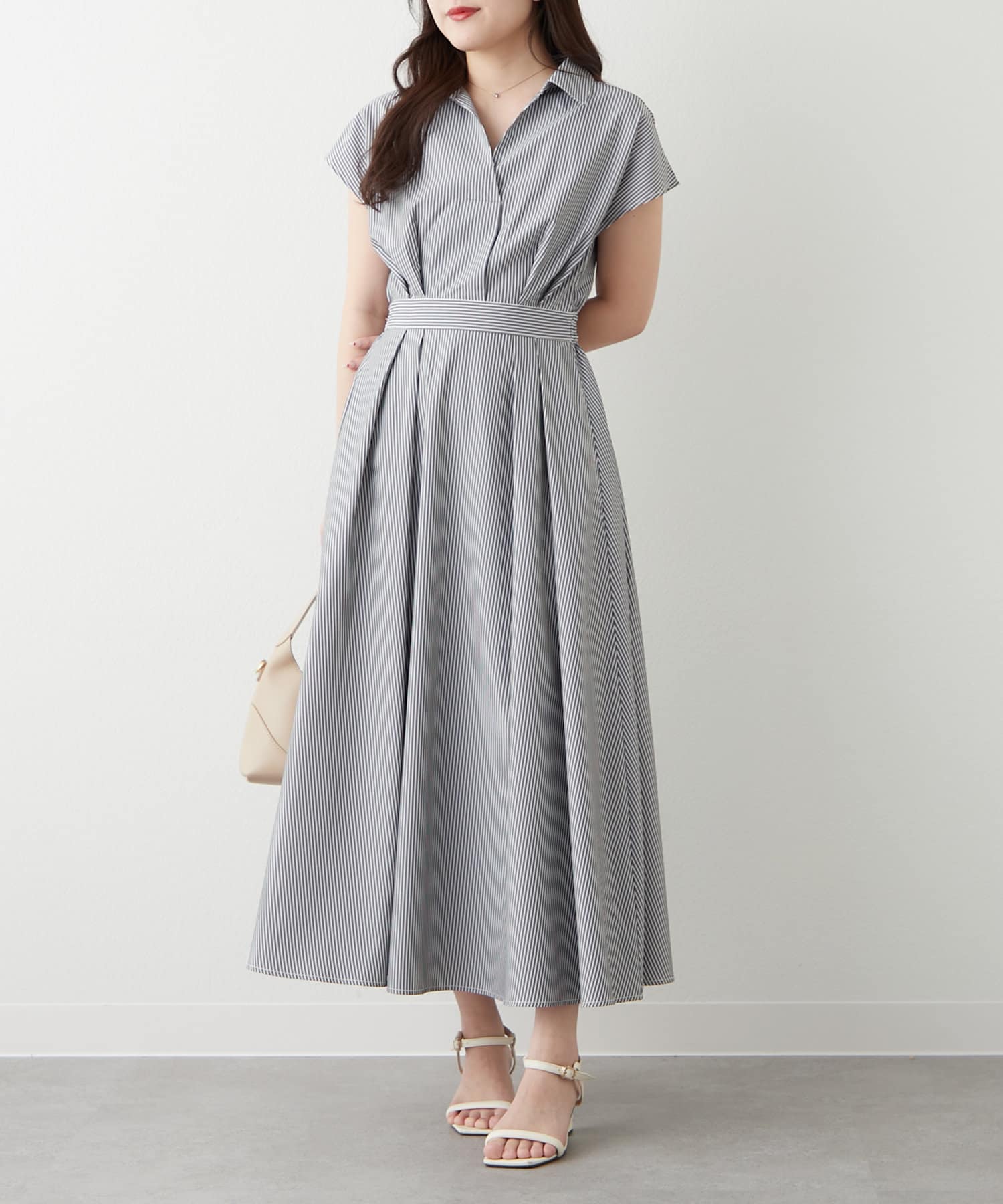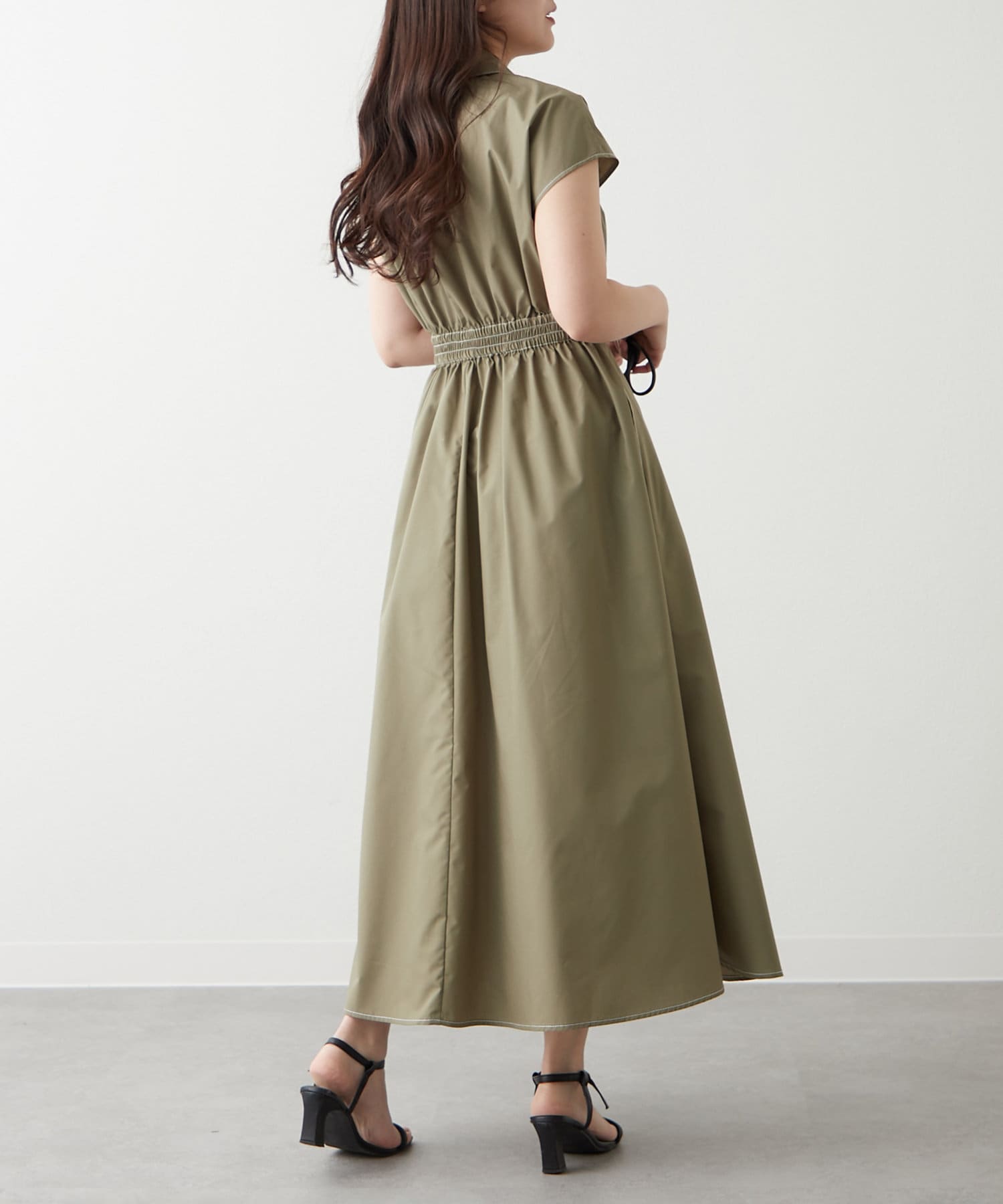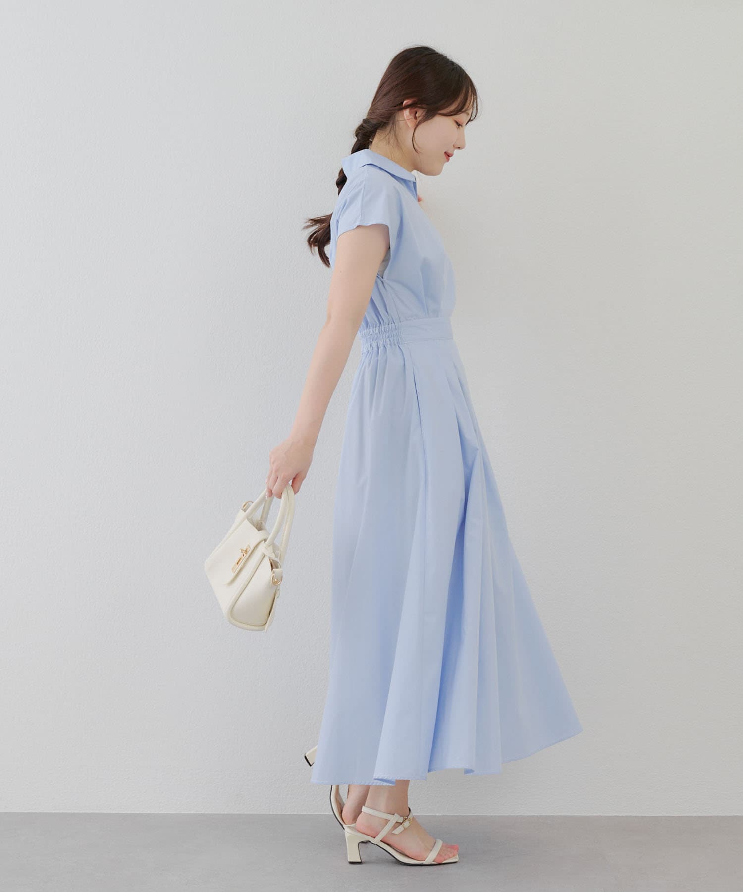 ・スキッパー襟が大人っぽい印象のロング丈ワンピース