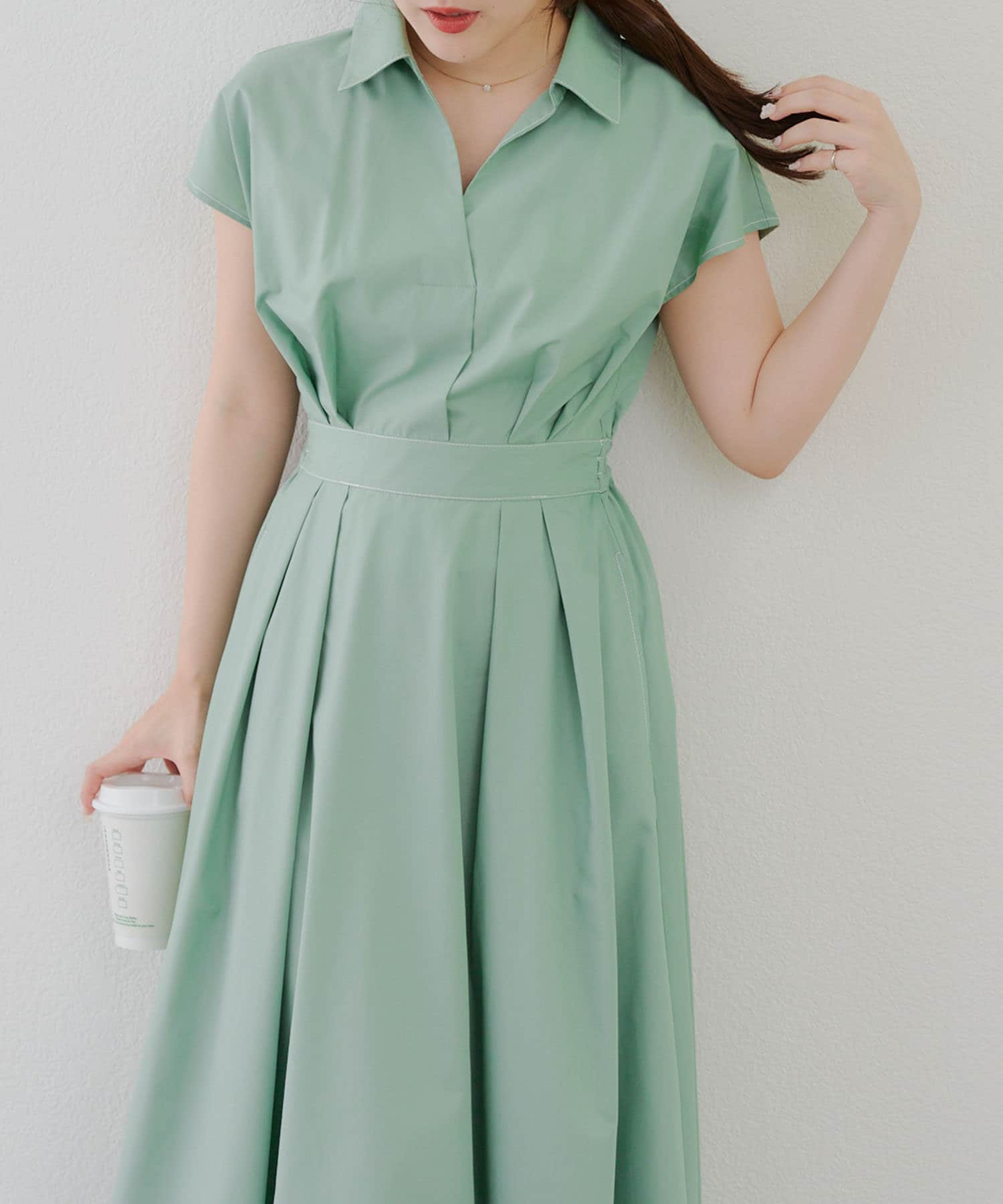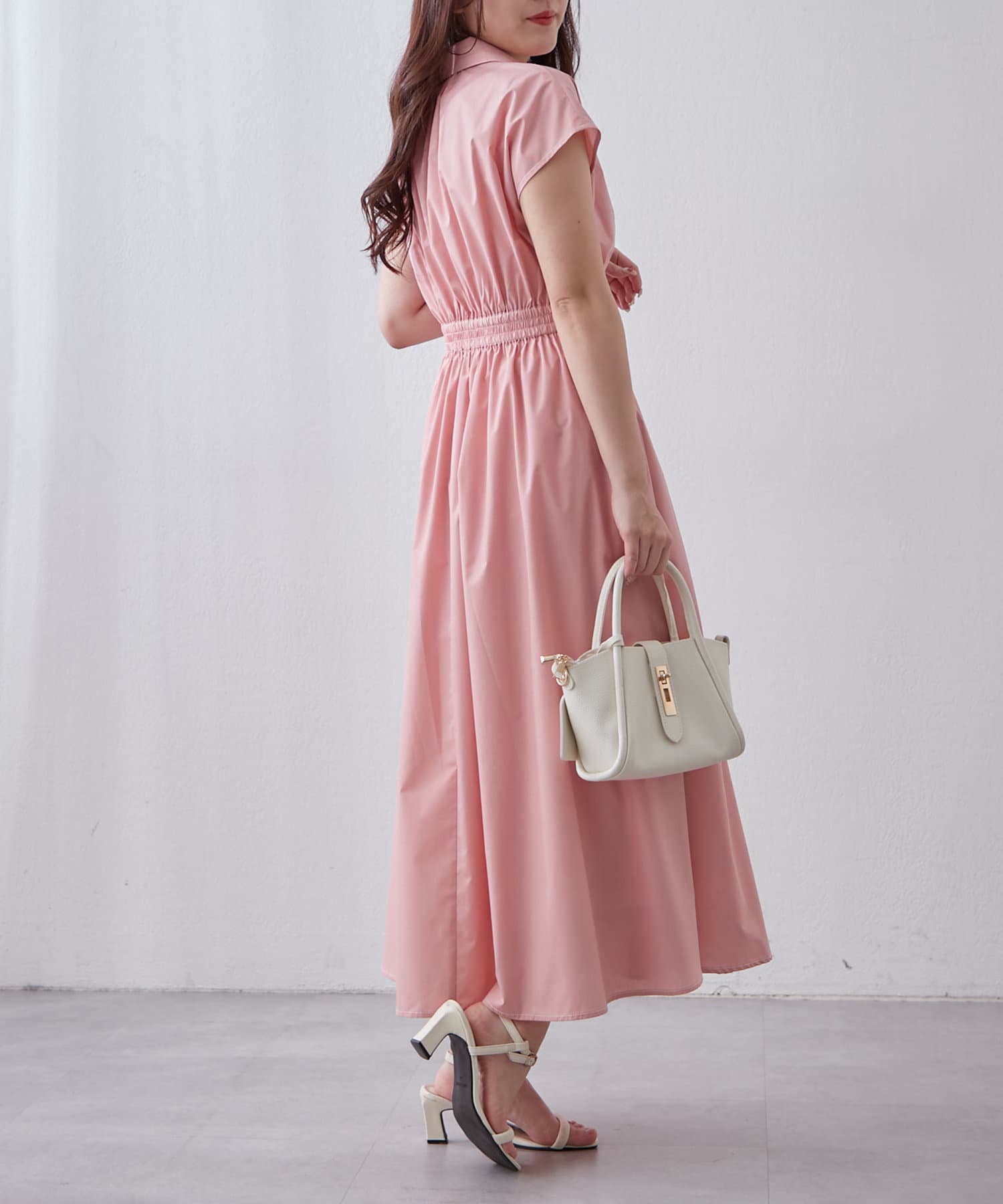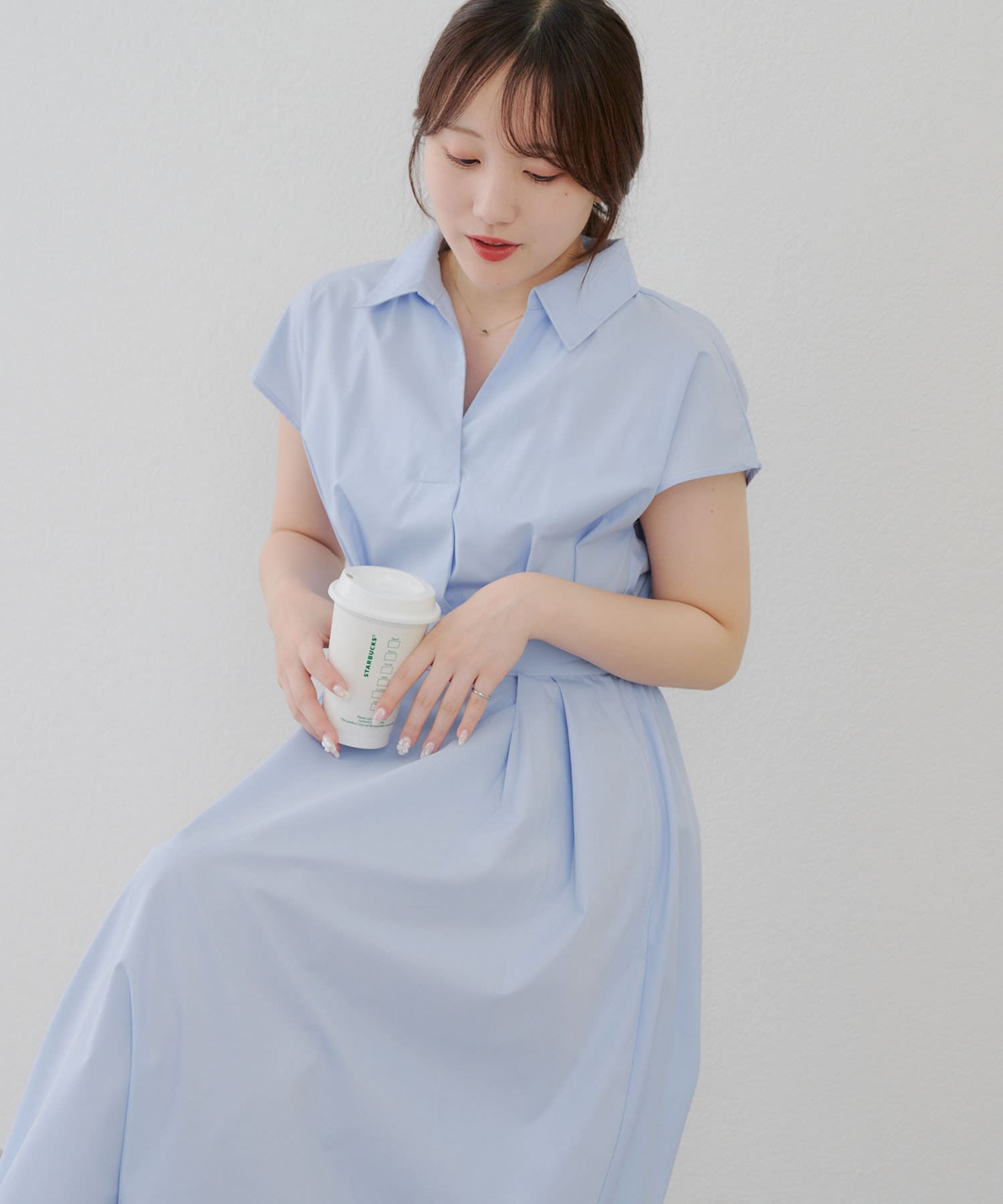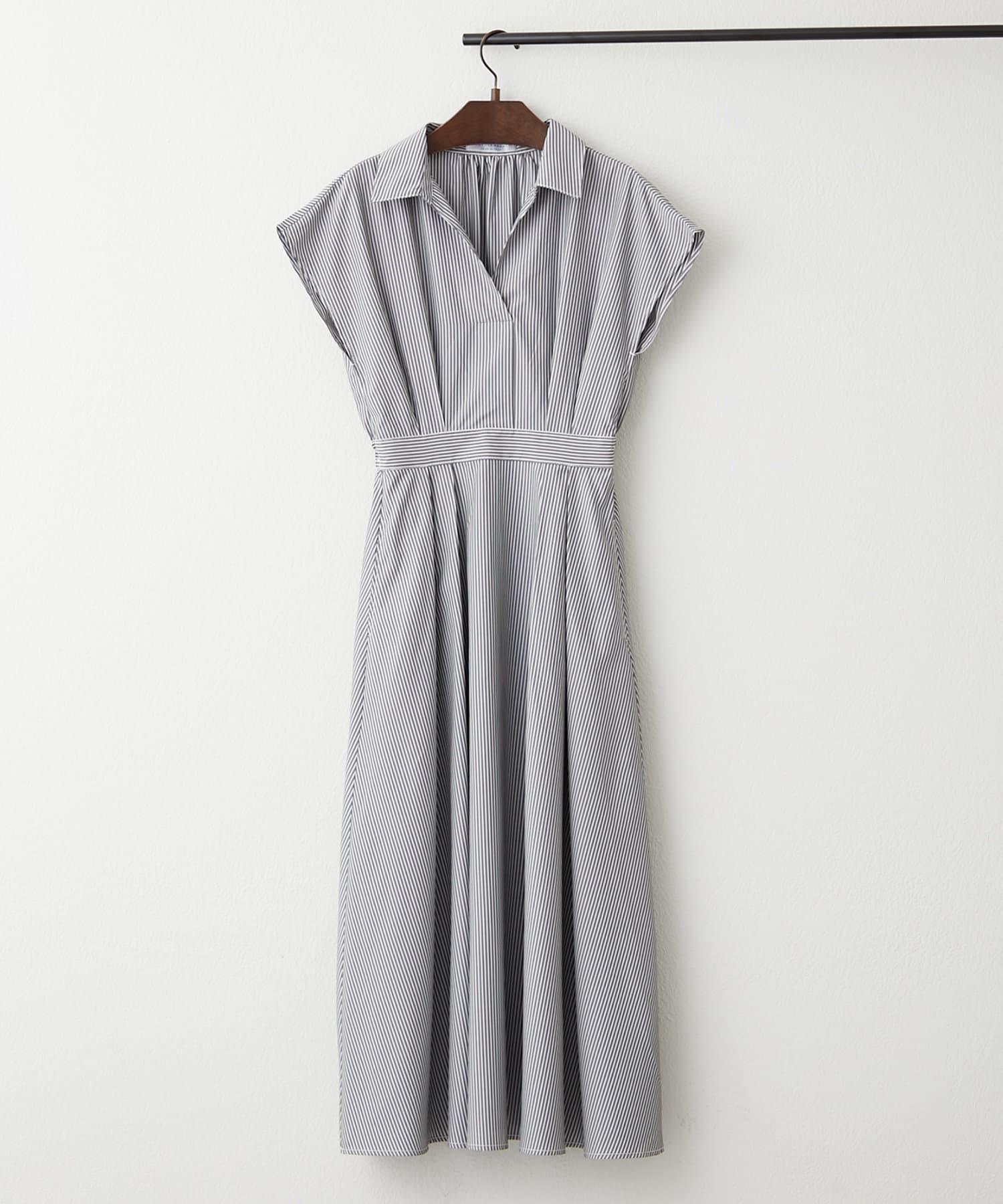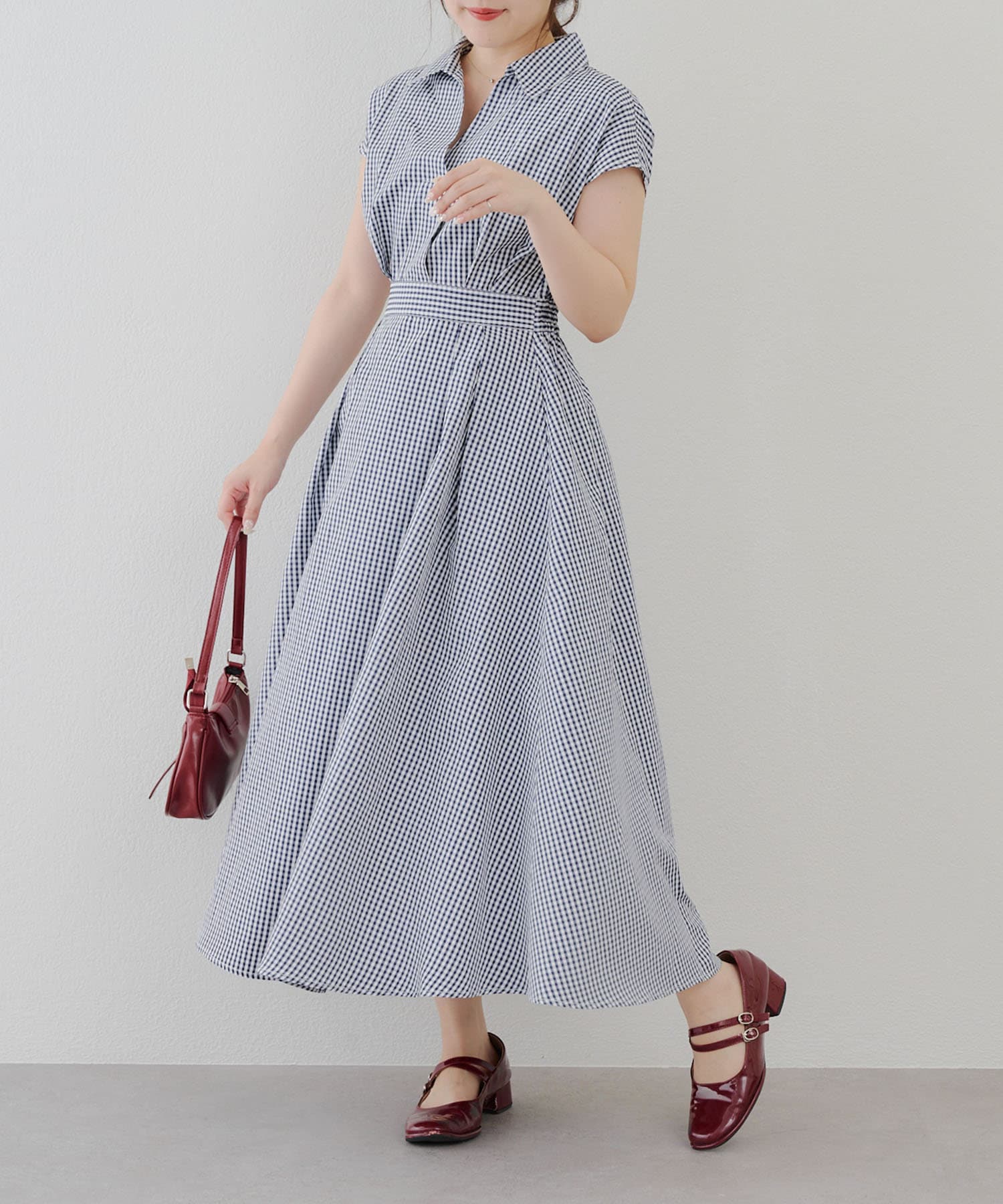 ・スキッパー襟が大人っぽい印象のロング丈ワンピース